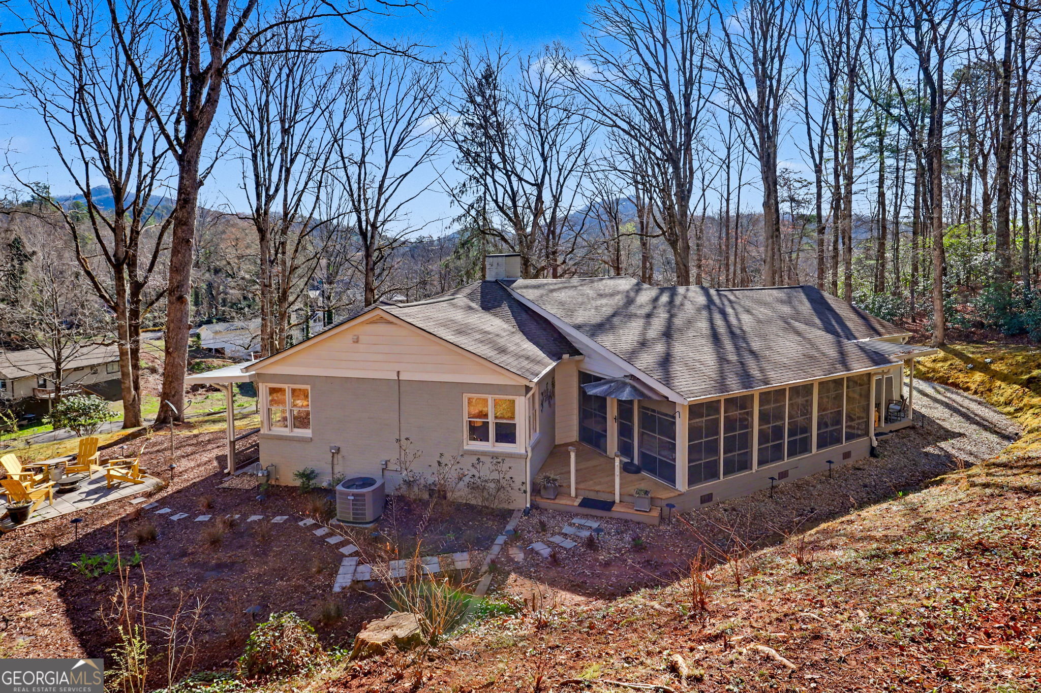 Tucked just 1,000 +/- feet off North Main Street, this beautifully renovated all-brick home with a one-car garage offers the rare combination of privacy, walkability, and modern upgrades in the heart of Clayton. Potential for Short-term rental, investment property, second home or primary residence. Selling Mostly furnished with the exception of some items. Located at a cool 2,000 +/- foot elevation and only a 5-minute walk to downtown, this property sits on a spacious 0.86 +/- acre lot and has been extensively renovated from 2019-2021, blending timeless construction with thoughtful modern improvements. The home features 3 bedrooms and 2 bathrooms, along with a bright 430 sq ft enclosed sun porch perfect for enjoying mountain mornings or cool evenings year-round. Inside, refinished hardwood floors, updated lighting, and custom finishes create a warm and inviting space throughout. The modern kitchen includes custom cabinetry, newer appliances, and beautiful nickel-gap wood walls, giving the home a stylish yet comfortable feel. A functional laundry and pantry area with custom cabinetry adds extra storage and convenience. Outdoor living shines with a covered cooking porch, new patio area, and thoughtfully designed landscaping with railroad-tie terracing, rock drains, flower beds, and landscape lighting. The home is being offered mostly furnished, with the exception of some items, making this an excellent opportunity for buyers seeking a full-time residence, second home, short-term rental or mountain getaway. Parcel Note: Property being conveyed consists of TRACT 1 (0.86 +/- acre) as shown on the new survey. This sale includes only a portion of Rabun County Tax Parcel C005 013. Final legal description to be recorded at closing. Survey: New survey available for review. Survey to be recorded at closing. Call to schedule your showing today!