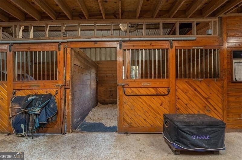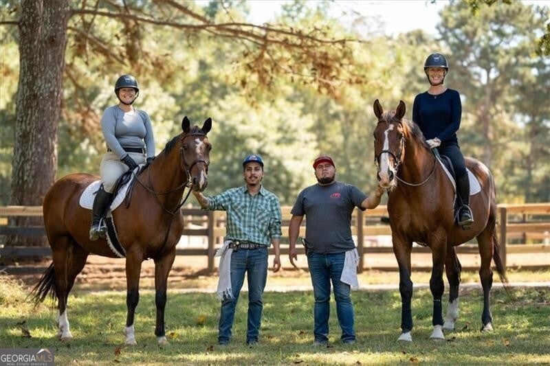 Welcome to Wisteria Farm, a premier 24-acre commercial training and boarding facility designed for serious equestrians, competitive riders, and professional trainers. Purpose-built with top-tier amenities and an exceptional layout, this operational horse farm offers the ideal combination of function, comfort, and world-class infrastructure. At the heart of the property are three meticulously maintained barns featuring 29 matted stalls, automatic waterers, hot and cold wash racks, dedicated tack, feed, and laundry rooms, and a 750-bale hayloft with additional flat storage for equipment and supply management. The barns are supported by a professional fly spray system, a welcoming lounge with TV, and a convenient on-site restroom, ensuring comfort for clients, riders, and staff. Training facilities are truly exceptional. The 180' x 70' lighted indoor arena is equipped with timed sprinklers and potential geothermal HVAC, ensuring year-round rideability and an ideal training environment. The expansive 200' x 300' outdoor arena features premium M-10 footing lighting, arena lights, perimeter and center sprinkler systems, integrated shade trees, a sound system, and a viewing deck perfect for lessons, clinics, or shows. Additional training amenities include an 80-foot round pen, a derby hill with three permanent jumps, and bridle paths that wind throughout the property. For housing or staffing needs, the property includes a renovated two-bedroom cottage, well suited for trainers, grooms, or working students. With its exceptional design, thoughtful amenities, and proven functionality, Wisteria Farm stands as one of the region's premier equestrian facilities ideal for boarding, training programs, competition prep, or expansion into larger commercial operations: Think pet boarding facility, animal rescue farm, rehabilitation facility, recreational farm for those with special needs: the options are endless! Custom-built 5,200 sq ft home on full basement built in 2015 + lake on the 5.7 adjoining acres is also available for purchase. GAMLS listing ID is 10704020. The parcel as recorded under 3055 Spring Hill Drive totals 29.28 acres. Neighboring property boasts additional 20 acres & could possibly also be purchased.