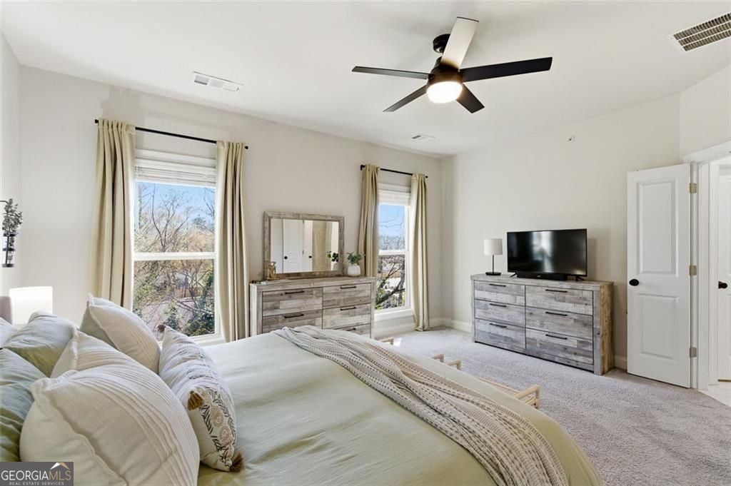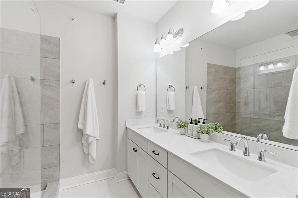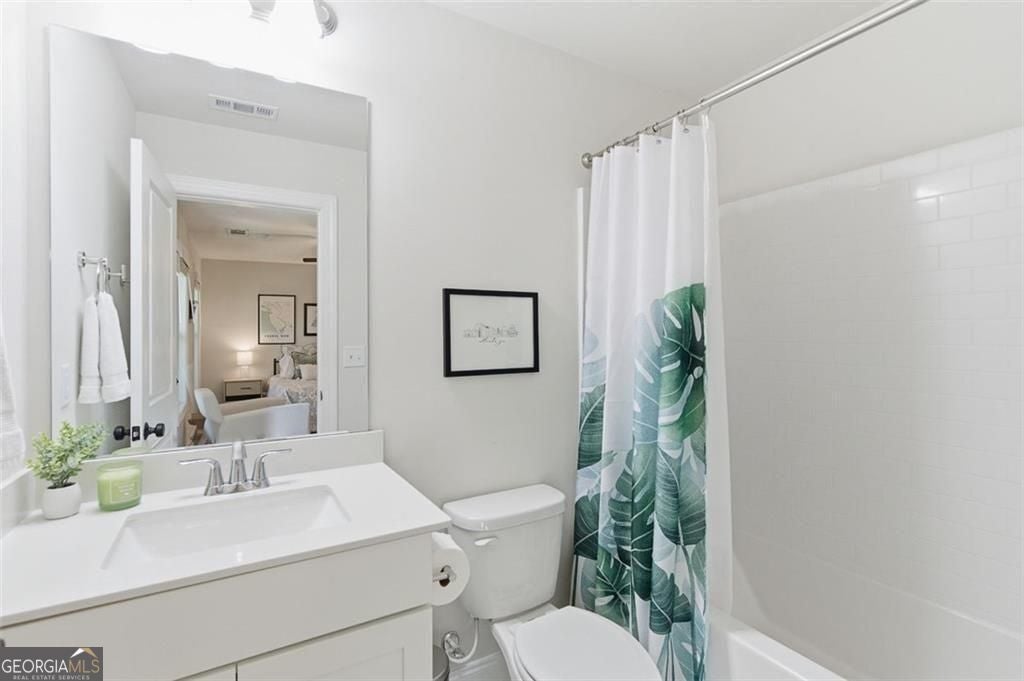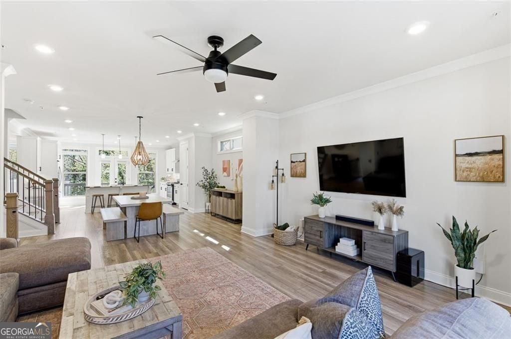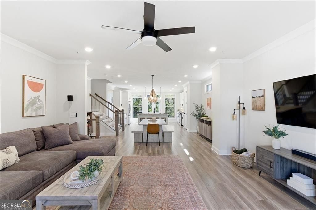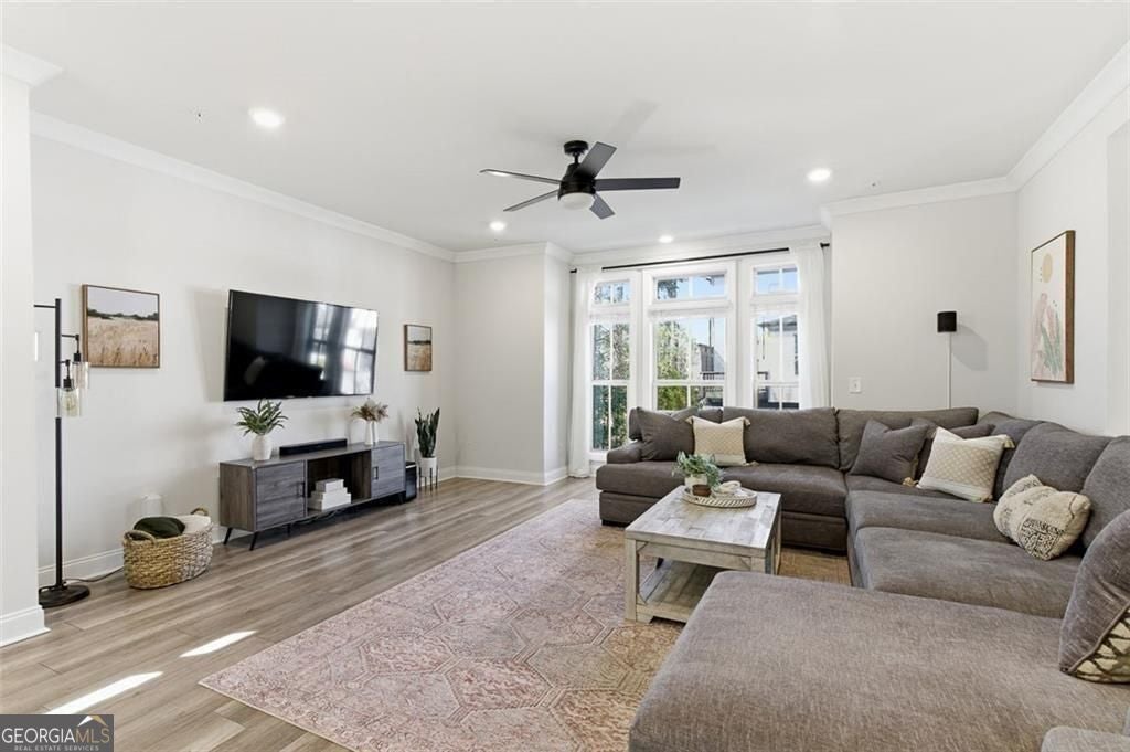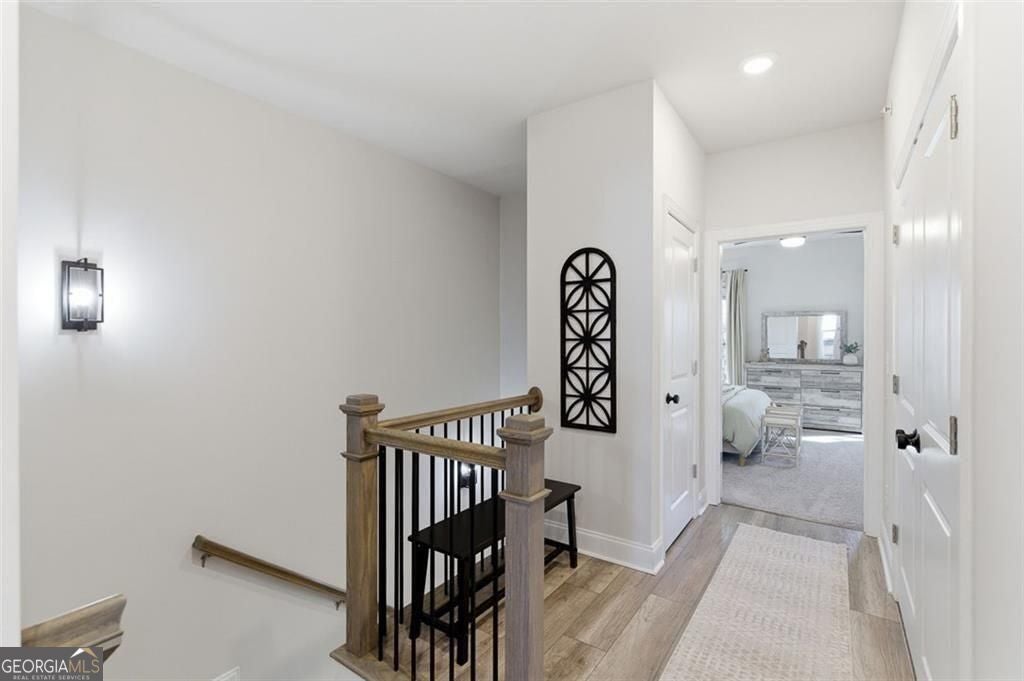This 4 bd 3.5 ba, 2,496 sqft end-unit townhome features an expansive main level where the family room, dining area, and kitchen are fully integrated. Because it's a corner unit, the entire floor is notably bright. The kitchen is finished with a large central island, quartz countertops, and stainless steel appliances. The top-floor Owner's Suite includes a large walk-in closet and a bathroom designed with a dual vanity and a frameless, tiled walk-in shower. On the lower terrace level, there is a front-entry 2-car garage and a versatile space suited for a home office or guest bedroom, complete with its own full bath. For outdoor space, the home includes an deck and covered outdoor space with turf. The neighborhood itself features a central park with a fire pit and professional landscaping, with direct access to the Silver Comet Trail and surrounding path systems. You are just 1 mile away from Stillfire Brewery (just opened), less than 2 miles from The Battery and a short drive from Smyrna Market Village.