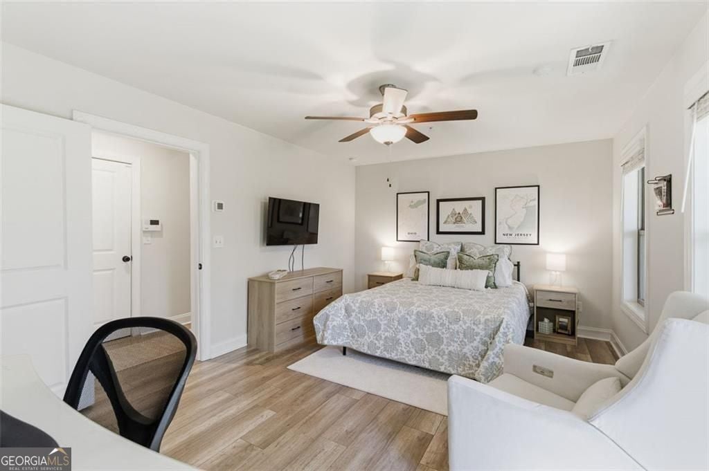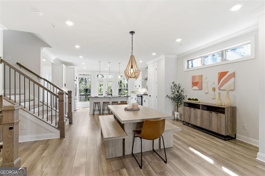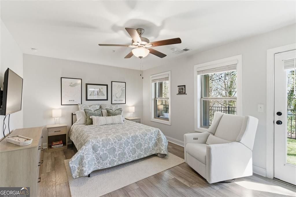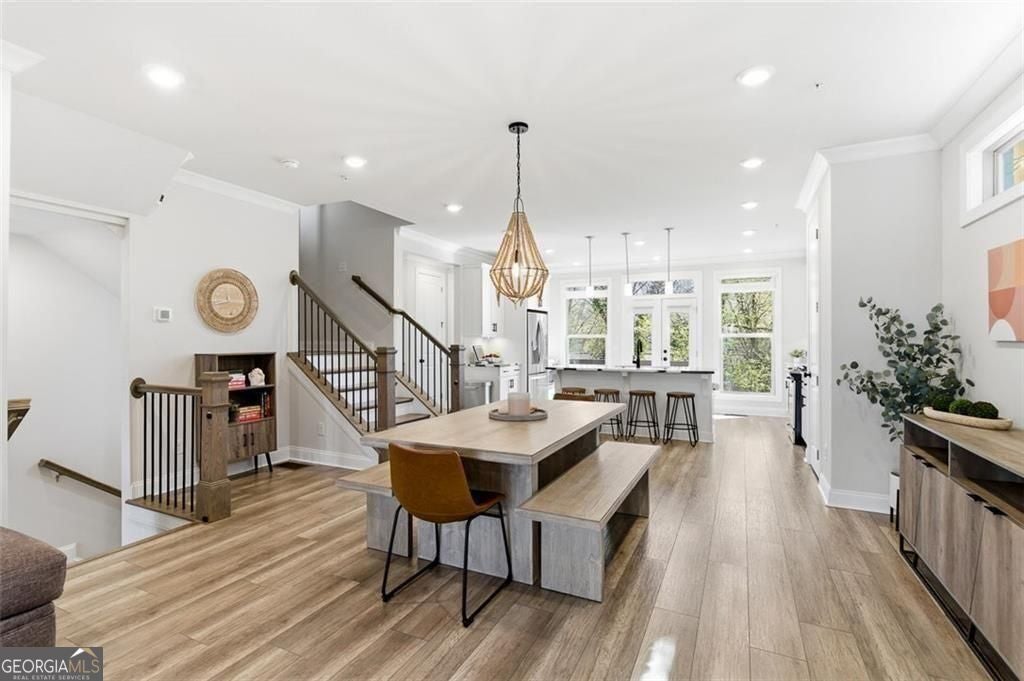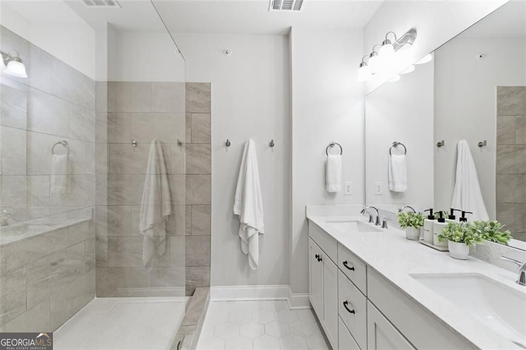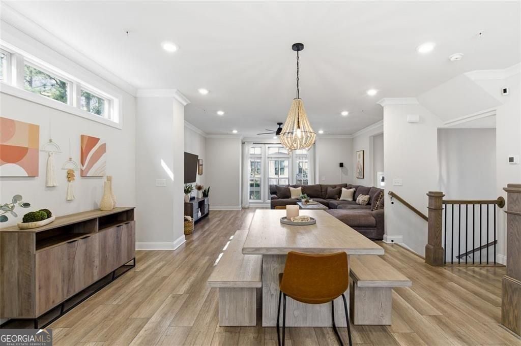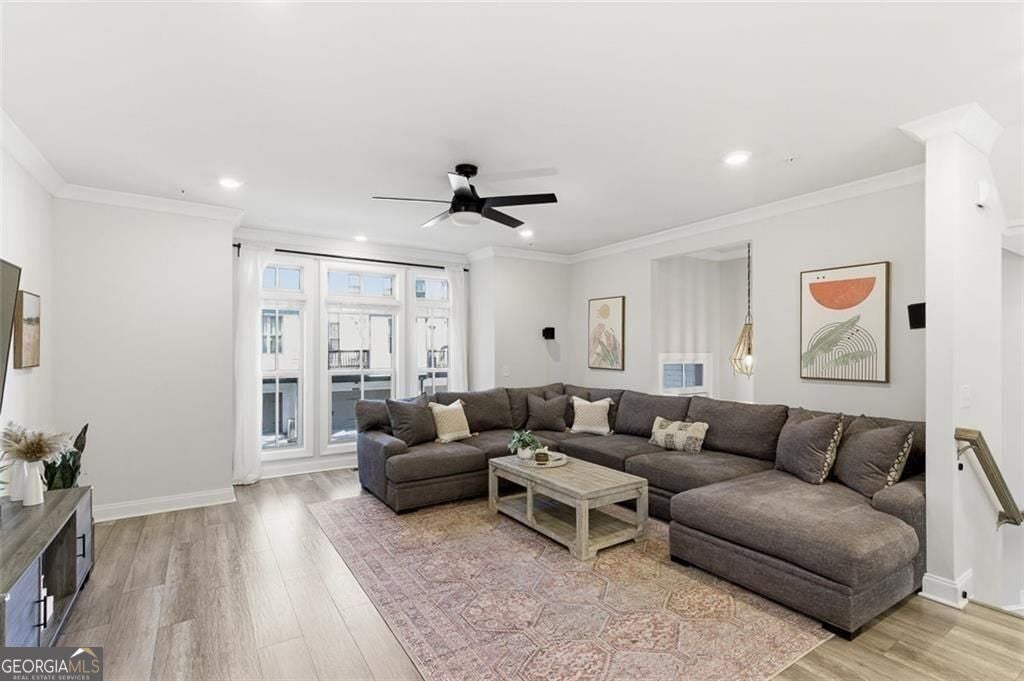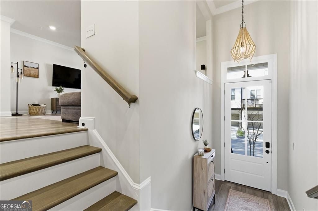 This 4 bd 3.5 ba, 2,496 sqft end-unit townhome features an expansive main level where the family room, dining area, and kitchen are fully integrated. Because it's a corner unit, the entire floor is notably bright. The kitchen is finished with a large central island, quartz countertops, and stainless steel appliances. The top-floor Owner's Suite includes a large walk-in closet and a bathroom designed with a dual vanity and a frameless, tiled walk-in shower. On the lower terrace level, there is a front-entry 2-car garage and a versatile space suited for a home office or guest bedroom, complete with its own full bath. For outdoor space, the home includes an deck and covered outdoor space with turf. The neighborhood itself features a central park with a fire pit and professional landscaping, with direct access to the Silver Comet Trail and surrounding path systems. You are just 1 mile away from Stillfire Brewery (just opened), less than 2 miles from The Battery and a short drive from Smyrna Market Village.