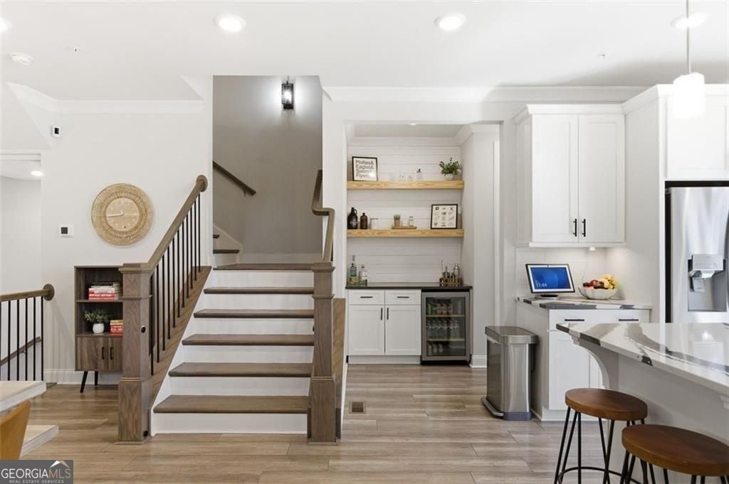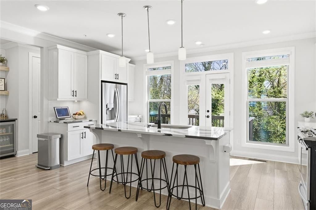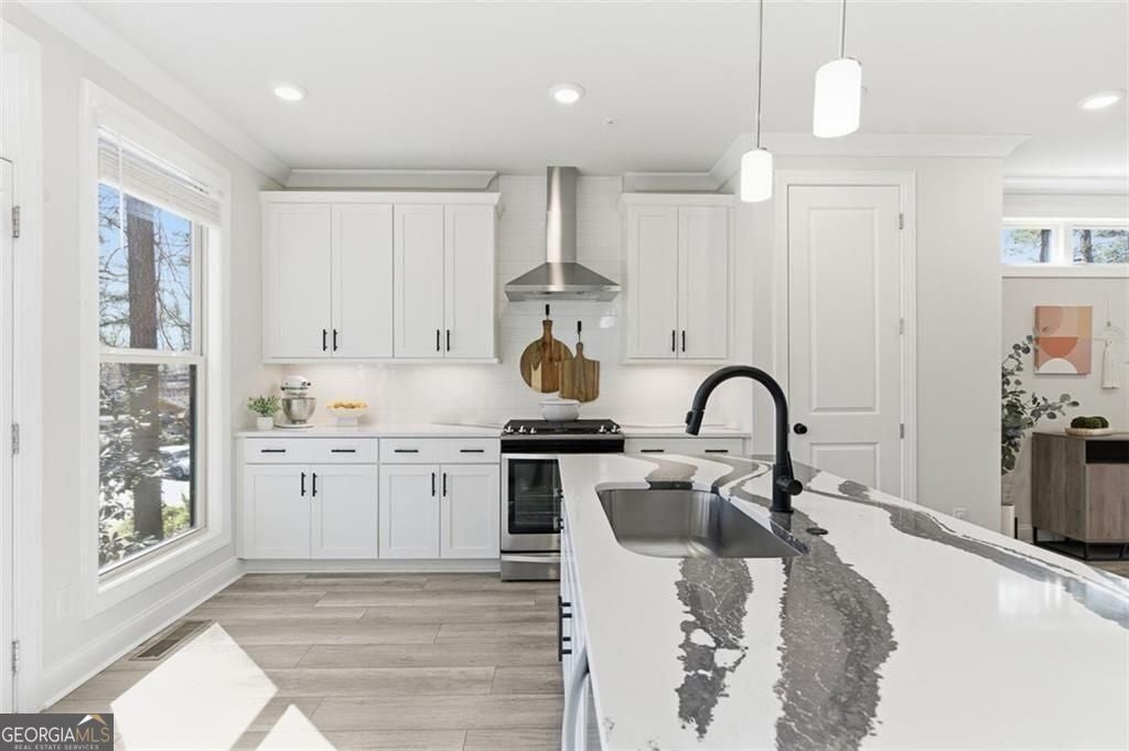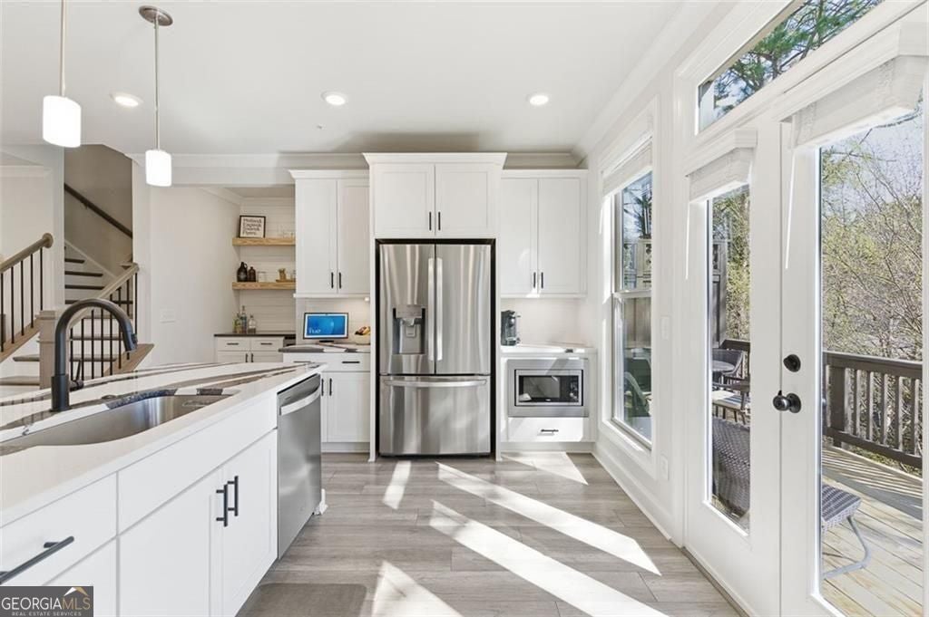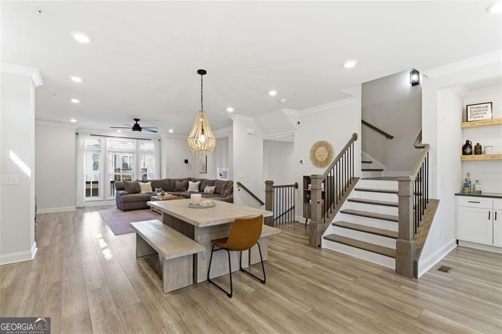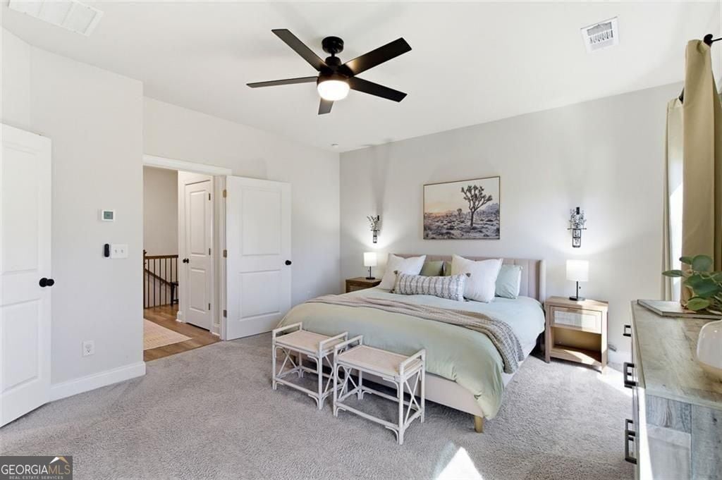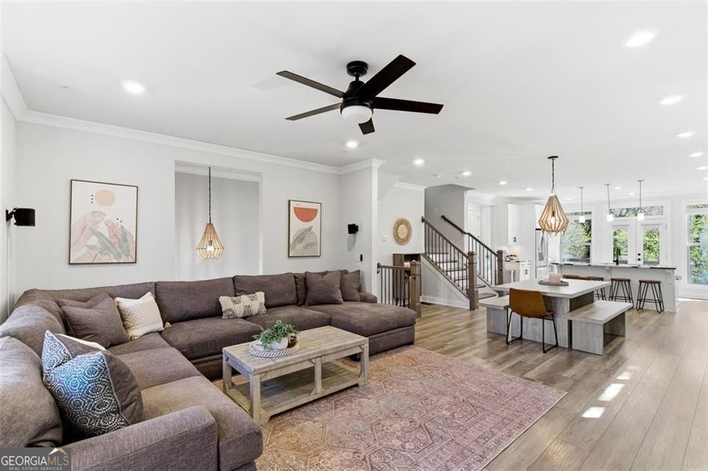 This 4 bd 3.5 ba, 2,496 sqft end-unit townhome features an expansive main level where the family room, dining area, and kitchen are fully integrated. Because it's a corner unit, the entire floor is notably bright. The kitchen is finished with a large central island, quartz countertops, and stainless steel appliances. The top-floor Owner's Suite includes a large walk-in closet and a bathroom designed with a dual vanity and a frameless, tiled walk-in shower. On the lower terrace level, there is a front-entry 2-car garage and a versatile space suited for a home office or guest bedroom, complete with its own full bath. For outdoor space, the home includes an deck and covered outdoor space with turf. The neighborhood itself features a central park with a fire pit and professional landscaping, with direct access to the Silver Comet Trail and surrounding path systems. You are just 1 mile away from Stillfire Brewery (just opened), less than 2 miles from The Battery and a short drive from Smyrna Market Village.