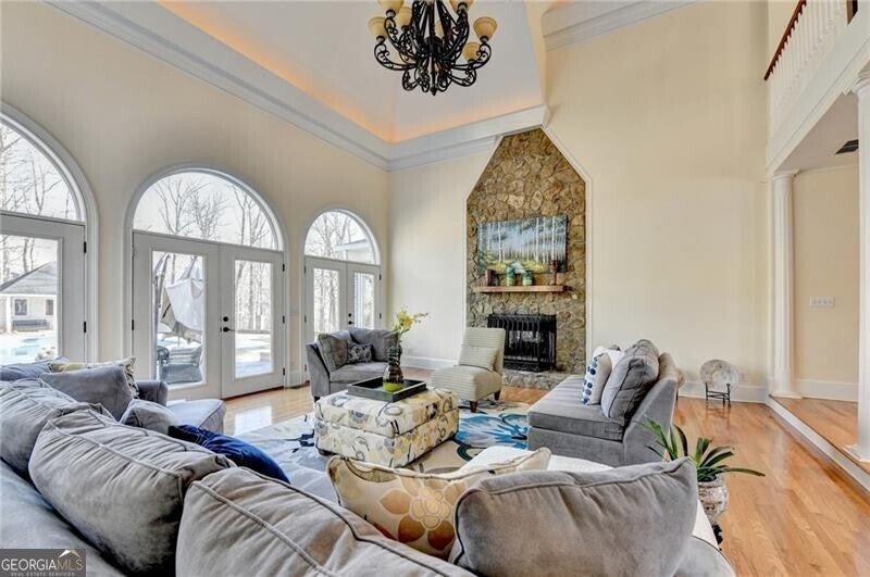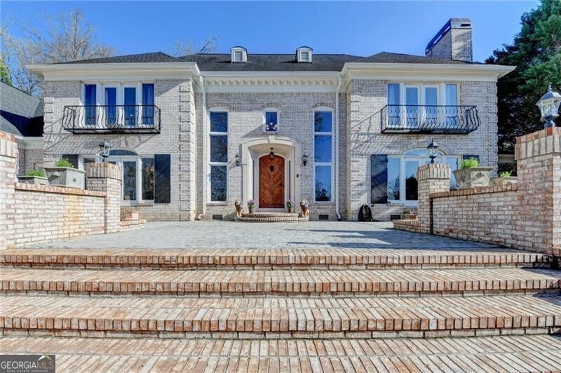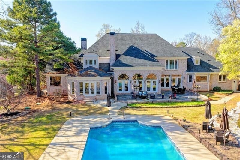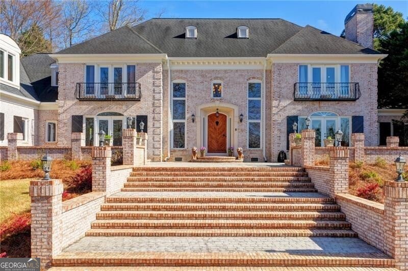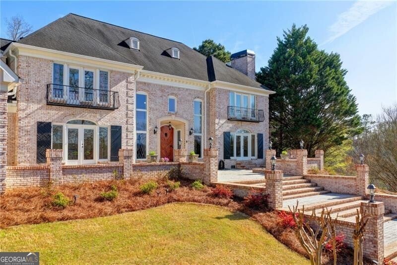 Spectacular French Country Estate on Two Private Acres in Chateau Elan This stunning all-brick French Country estate is perfectly situated on approximately two private acres within the prestigious gated community of Chateau Elan Winery & Resort. Nestled on a wooded knoll with a circular driveway and elegant courtyard entry, this remarkable home offers exceptional privacy, timeless architecture, and a floor plan designed for both everyday living and grand entertaining. Upon entering, you are welcomed by an impressive foyer highlighted by dual sweeping curved staircases and beautiful custom hardwood flooring throughout the main level. The home is filled with natural light, showcasing expansive windows that overlook the lush grounds and poolside setting. The state-of-the-art gourmet kitchen has been beautifully updated and features granite countertops, newer cabinetry, and premium appliances including double ovens, two dishwashers, a warming drawer, and a Sub-Zero refrigerator. The adjoining breakfast room with stone fireplace and wall of windows opens to a large terrace, creating the perfect indoor-outdoor flow for entertaining. The elegant main level also features a grand salon with breathtaking views of the backyard oasis, a sunken living room, a formal dining room, and a gentleman's study. The luxurious primary suite on the main level offers a private retreat complete with a sitting area, spa-inspired bath, step-in shower, and custom closets. Upstairs, you will find spacious secondary bedrooms, each with a private bath and ample space for family or guests. The finished terrace level is designed for recreation and relaxation and includes a theater/media room, recreation room, exercise room, hobby room, home office, and a stunning brick wine cellar. Step outside to your private outdoor paradise featuring a beautiful 20 x 40 heated gunite pool, expansive decking, and professionally landscaped grounds. The pool house includes HVAC and a full bathroom, making it perfect for guests, entertaining, or a private office. Additional highlights include four fireplaces, custom lighting fixtures, extensive upgrades, and a unique open floor plan ideal for entertaining. As a resident of Chateau Elan, you will enjoy access to world-class amenities including four championship golf courses, the Stan Smith Tennis Center, equestrian facilities, luxury spa, fitness center, swimming pools, restaurants, a 275-room resort hotel, conference center, and miles of walking, jogging, and biking trails. This extraordinary estate offers luxury resort living combined with the privacy of a beautiful two-acre homesite.