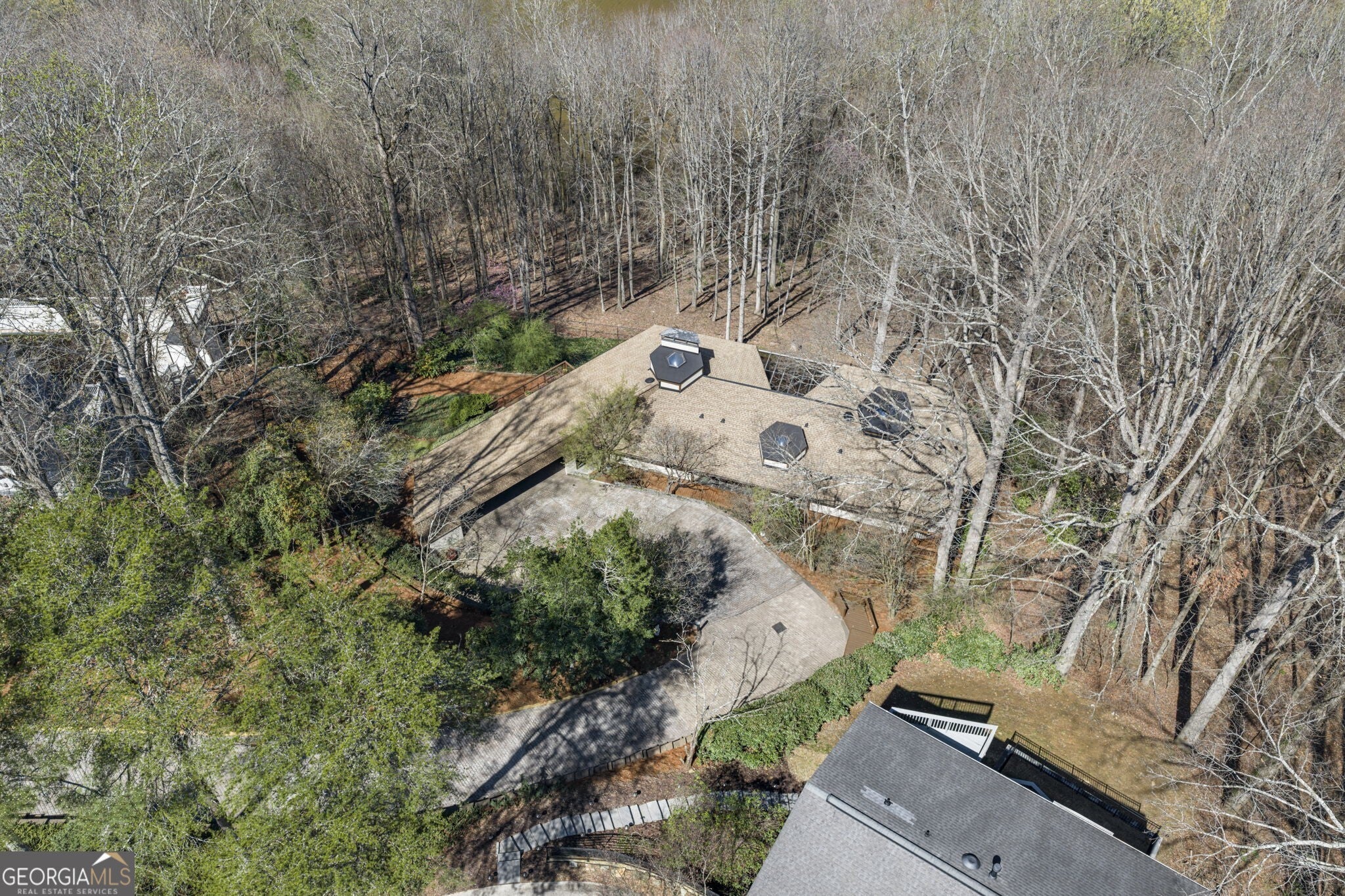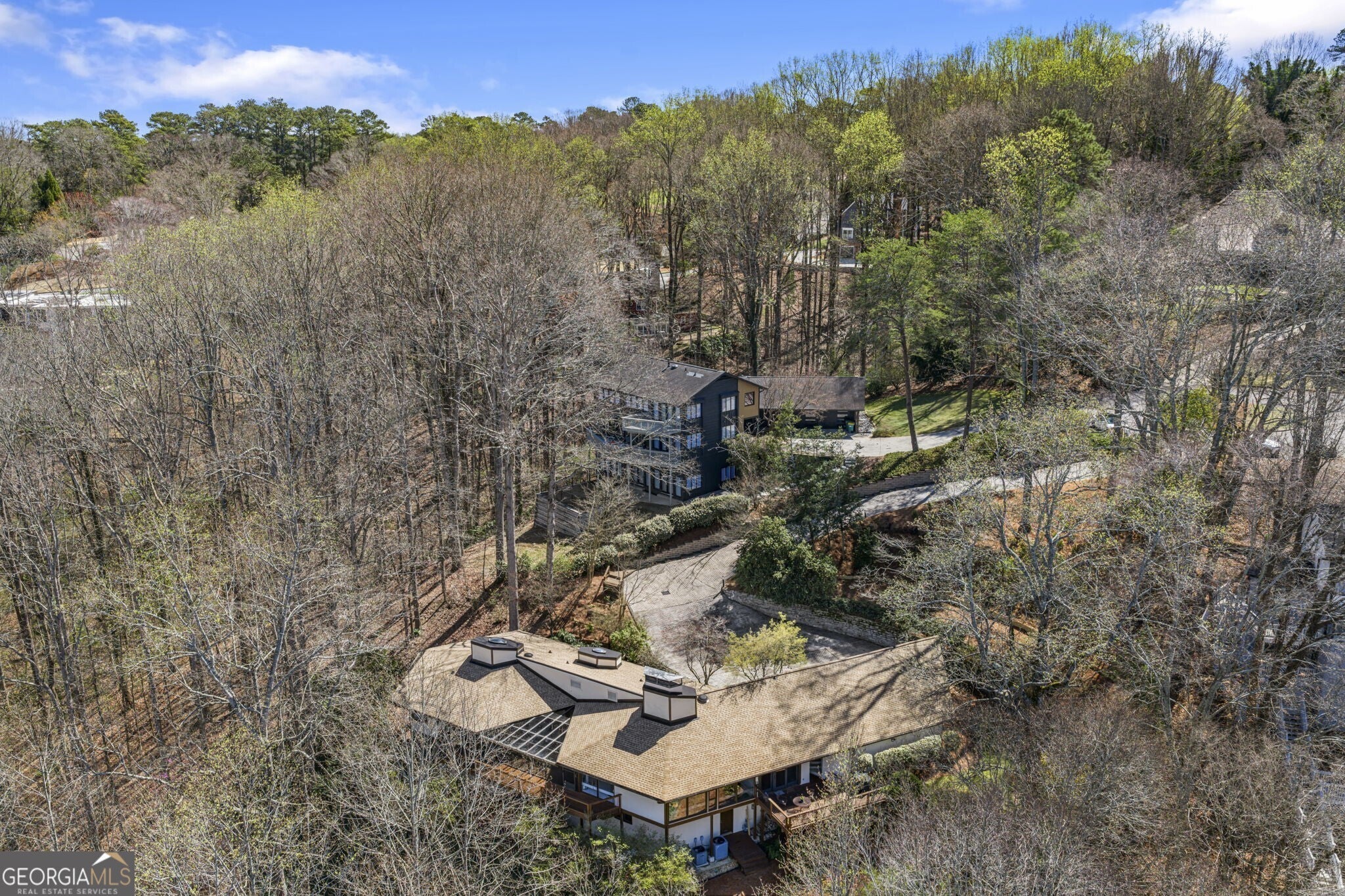 Set on over 2 secluded acres with views to the Chattahoochee River, this is a unique property with presence, land, and timeless design - offering exceptional privacy. Rare East Asian-inspired architecture with dramatic interior proportions, including a striking two-story atrium/foyer that floods the home with natural light. Thoughtful floor plan with generous living and entertaining spaces, great flow, and flexible rooms for office, studio, or guest use. Spacious primary suite upstairs with peaceful views and a true retreat feel. Terrace level offers excellent bonus space with a bar and a sauna - ideal for relaxing or entertaining. Beautifully maintained and move-in ready, with classic finishes that have been carefully preserved. Mature landscaping and a room to expand outdoor living and create garden spaces.