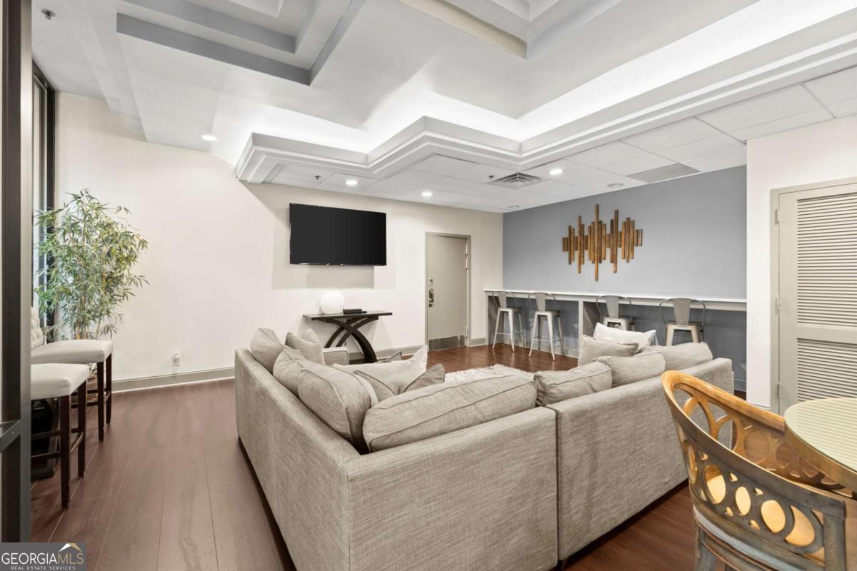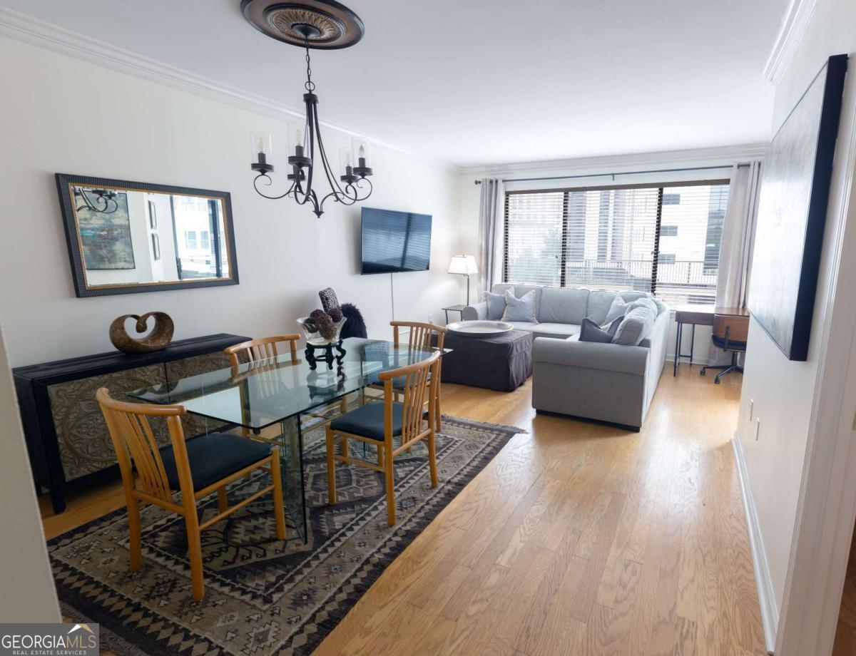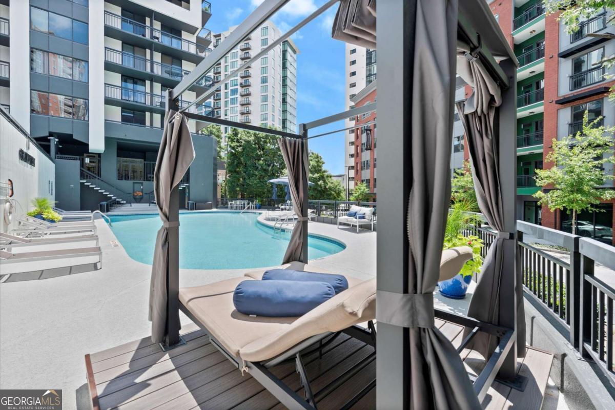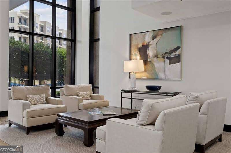 Beautifully furnished in the heart of Buckhead! "Turnkey" ready w/ electric, water & maid w/ linen and towel service. Fully furnished condo featuring hardwood floors, Silestone and granite countertops, tumble marble and hardwood floors, Stainless steel appliances and a private balcony! Gated Parking-- 1 assigned parking in secured parking deck. Extra storage closet. The large sectional sofa converts into a queen bed, and the ottoman opens into a twin bed, providing two additional sleeping options. The Grandview offers sleek resort-style amenities: Cardio and Weight room, Onsite electric car charging stations, pool, hot tub and sauna, outdoor grilling area with 3 grills, 18-seat theater room, business center, club room and library. The building offers 24-hour concierge service, gated entrance, gated parking, and complimentary visitor parking. Water/Sewer is included with HOA. Conveniently located next to Marie Sims Park - perfect for an afternoon stroll or walking pets and adjacent to Path 400, 2 blocks from Lenox MARTA Gold Line, Lenox Mall, Phipps Plaza, the new Nobu Hotel, Lifetime Fitness, and myriad fine dining and shopping opportunities. Best location in Atlanta!