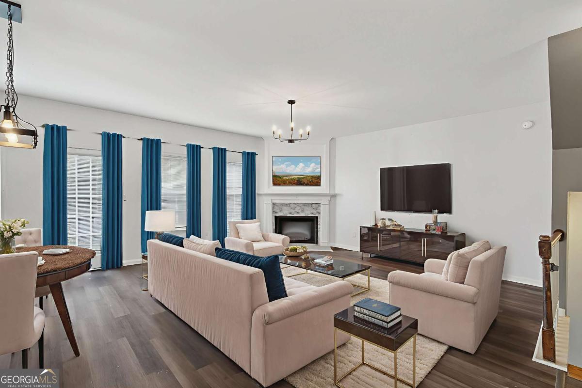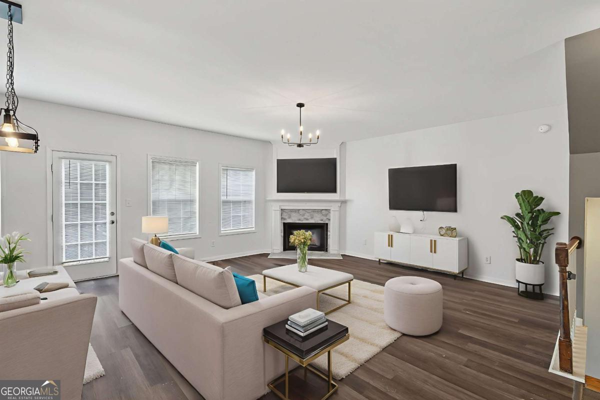 AS OF MARCH 28, 2026 THIS HOME IS STILL ACTIVE AND AVAILABLE FOR SHOWINGS. WOW WOW WOW such a fantastic and spacious town home in such an highly rated school of Peachtree Ridge. This beautiful home offers 3 levels with 4 bedrooms and 3.5 baths. Upon entering the property you will see the driveway and a front yard. Once you enter the home, you will see the soaring high ceiling of the main entrance. There is one full bedroom, the full bath and the washing room on the first floor. As you enter the second level, you will see the open concept of the huge kitchen with the huge island. The family room, the dining room, the kitchen, the breakfast area are all in one the wide open space. The home is well-designed for comfort and functionality. The kitchen features with newly renovated brand-new countertop, soft-close cabinetry, high-tech fridge. There is a lovely deck overlooking the neighbourhood for you and your family to relax, unwind and enjoy for your private outdoor retreat. The floors are just replaced with the glowing new high quality luxury vinyl planks. Three bedrooms and two baths are on the third level. This home has smart thermostats, smart dishwasher and a brand new smart stove that is compatible with Alexa device. HOA fee is 375 dollars a month which covers termite control, trash and water, roof and deck maintenance, exterior insurance, structure and ground maintenance. THE FRIDGE, CLOTH WASHER AND CLOTH DRYER WILL STAY THE HOME. NO RENTRAL RESTRICTIONS. Home is located near I85 and I316, only a few minutes to Sugarloaf Mills mall, not far from Gas South Arena. Home is ready to move in. Hurry before it is gone !!!