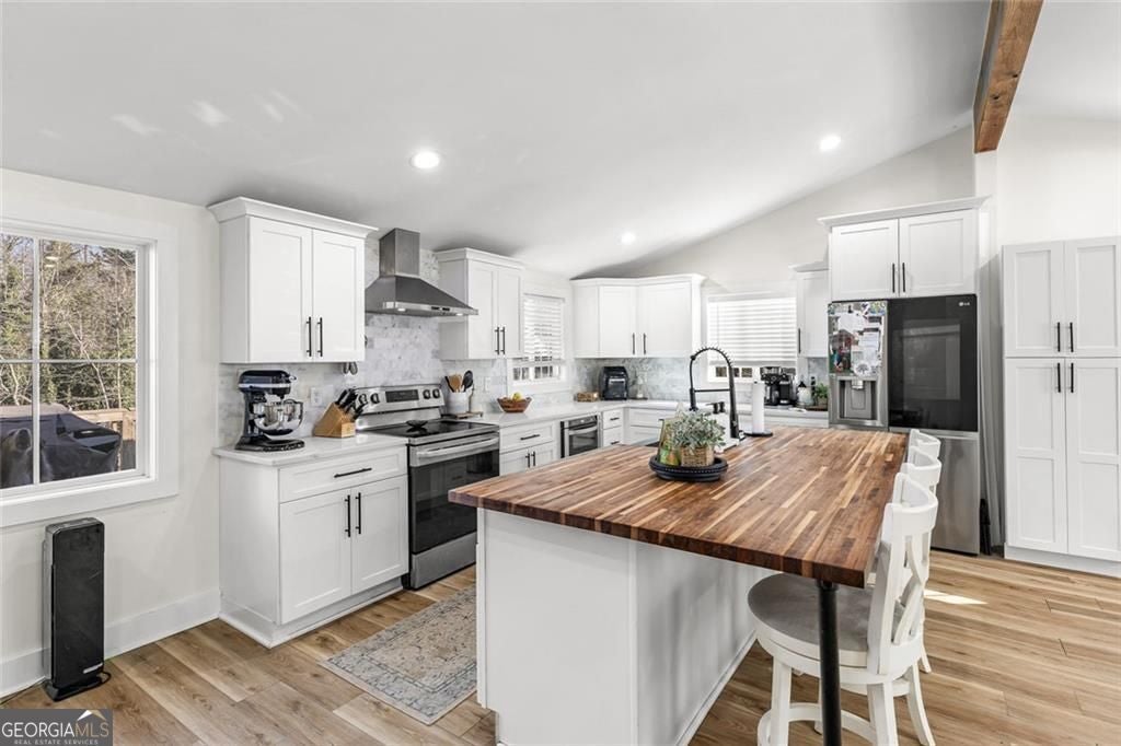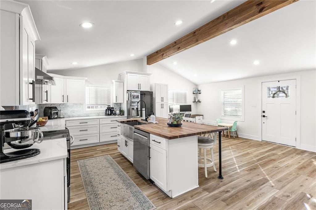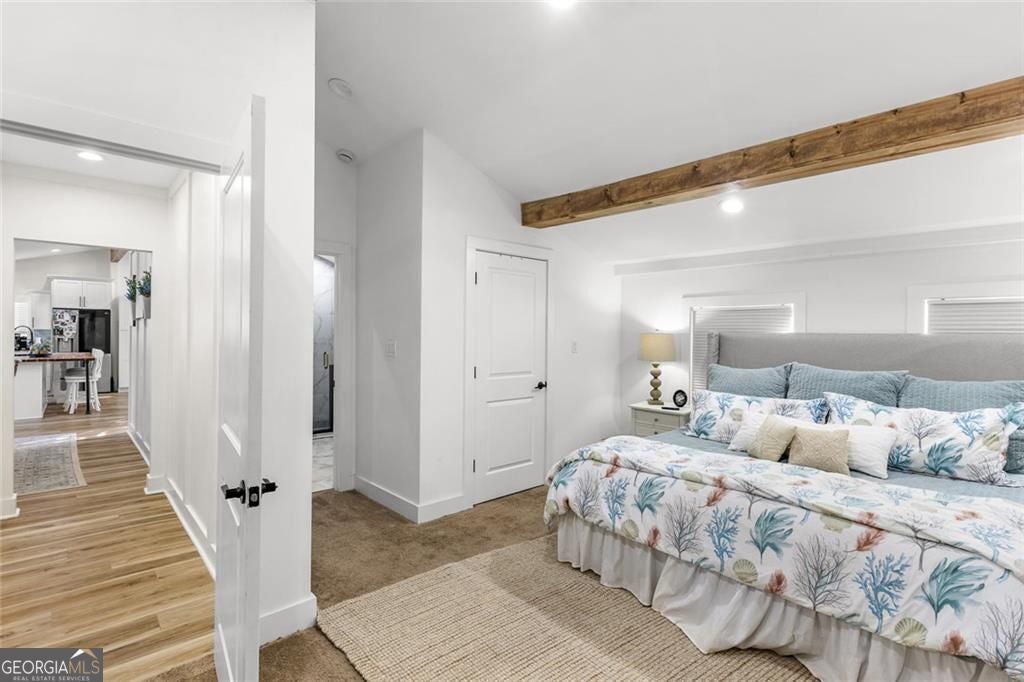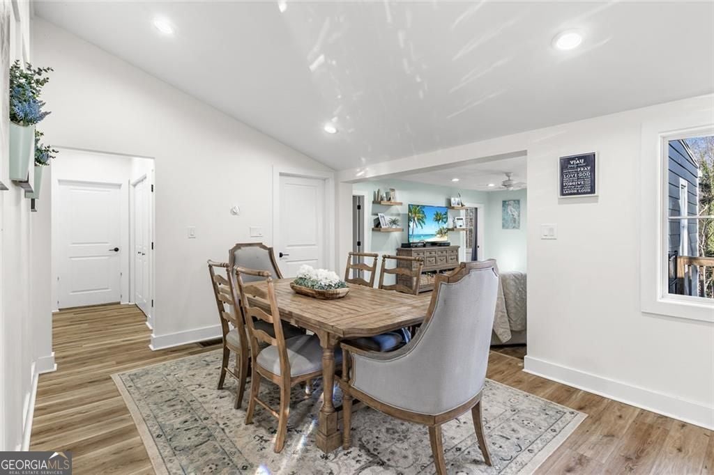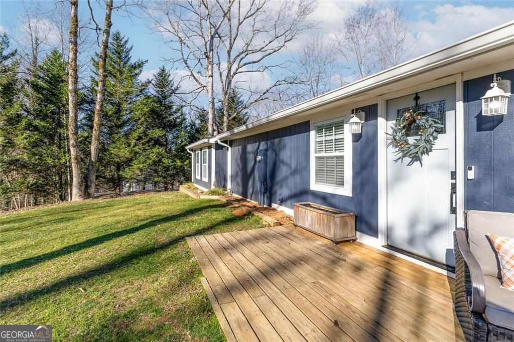 Lake Lanier living awaits! Nestled at 6120 Cardinal Drive in Gainesville, this fully renovated, move-in-ready home offers exceptional Lake Lanier access in a highly desirable, gated community. Residents enjoy access to a community dock with boat lift, making it easy to spend your days on the water and embrace the lake lifestyle year-round. With 1,800 square feet, the home features a bright open-concept layout highlighted by high ceilings with beautiful wooden beams, creating a warm and inviting atmosphere. Luxury vinyl plank (LVP) flooring runs throughout the home, adding both style and durability. The 3-bedroom, 2-bath floor plan provides a thoughtful separation of living and private spaces. The over-sized owner's suite serves as a true retreat with his + her closets featuring a large tiled shower, while the guest bathroom is also fully tiled, offering a cohesive, upscale finish. Renovated from top to bottom, upgrades include all major systems only 4 years old - paint, roof, new windows, new deck, new HVAC system, and new water heater, providing modern efficiency and peace of mind. Located within a gated swim and tennis community, this home perfectly blends modern upgrades, architectural character, and unbeatable Lake Lanier access-an ideal setting to create lasting memories.