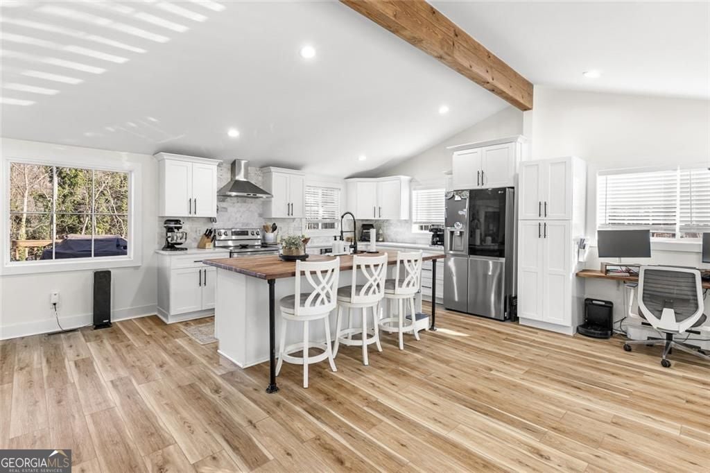 - Interior FeaturesBeamed Ceilings, High Ceilings, Vaulted Ceiling(s), Walk-In Closet(s)