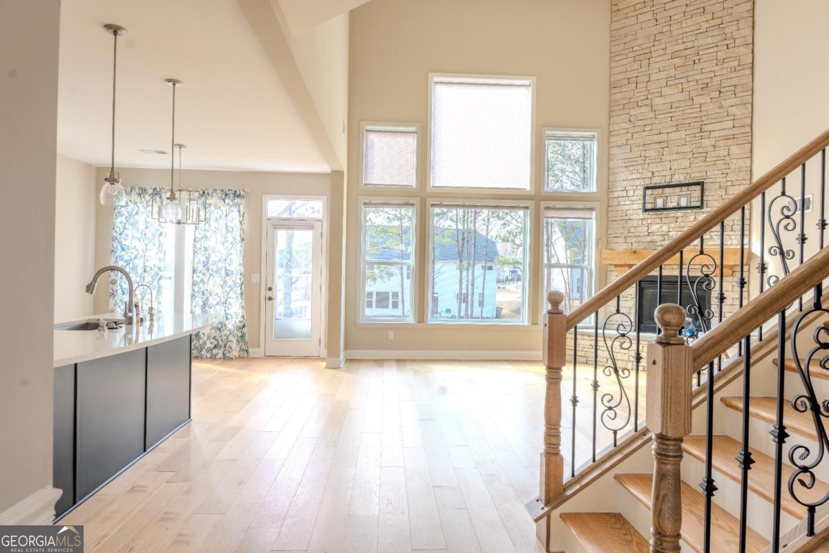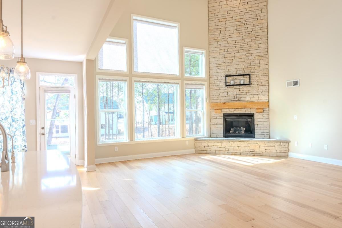Welcome to this beautifully maintained 5-bedroom, 3-bath Craftsman-style home located in the highly desirable River Rock community of Ball Ground. Built in 2021, this spacious two-story single-family residence offers a perfect blend of modern finishes, open-concept living, and functional design. The main level features a bright and airy family room with a gas fireplace, seamlessly connected to the dining area and kitchen-ideal for everyday living and entertaining. The kitchen boasts stone countertops, a large island, walk-in pantry, breakfast area, and stainless steel appliances, all overlooking the family room. A main-level bedroom with full bath provides flexibility for guests or multigenerational living. Upstairs, the oversized primary suite offers a peaceful retreat with a double-vanity bathroom, separate his-and-hers sinks, walk-in closet, and shower-only layout. Three additional bedrooms and a full bath complete the upper level, offering plenty of space for family or home office needs. Enjoy outdoor living with a private backyard and welcoming front porch, plus the convenience of a two-car garage. Community amenities include swimming pool, tennis courts, playground, sidewalks, and clubhouse, all just minutes from GA-400, shopping, dining, and top-rated Forsyth County schools. This move-in-ready home combines space, style, and location-a must-see opportunity in one of Forsyth County's most sought-after neighborhoods. Schedule your private showing today!