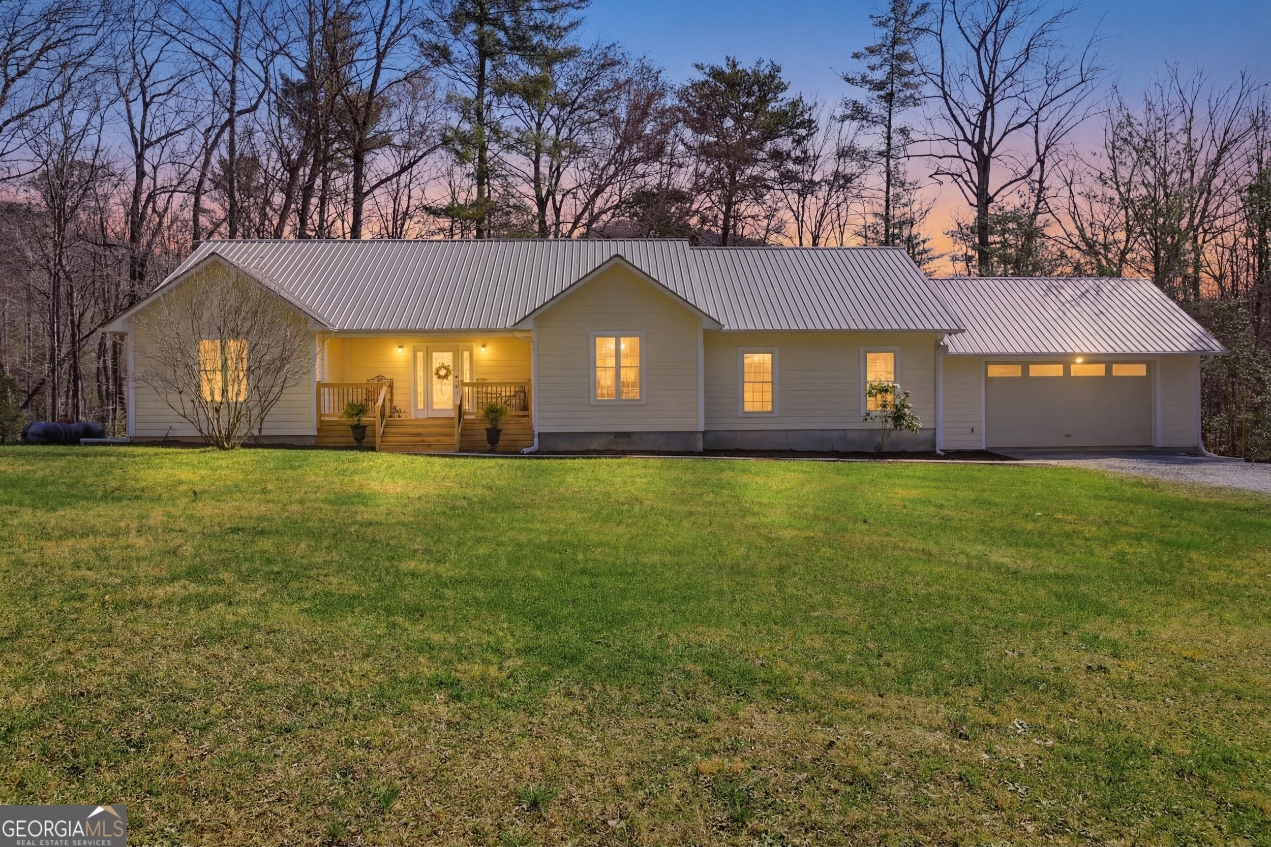 MOVE-IN READY HOME - MINUTES FROM DOWNTOWN CLAYTON Beautifully renovated one-level home on 1.23 acres located less than 5 minutes from historic downtown Clayton in the peaceful and highly desirable Pinnacle area. This property offers the perfect combination of privacy, usable land, and convenience. A family-friendly area with easy access to local schools. The bright interior features hardwood flooring in the main living areas, a vaulted family/living room, and a large stone propane fireplace that creates a warm focal point. The vaulted primary bedroom adds to the spacious feel, while the mudroom and 4th bedroom feature impressive 11-foot ceilings. The updated kitchen includes granite countertops, updated cabinetry, a new stove, and a new sink, opening to a large dining area ideal for entertaining and family gatherings. Both bathrooms have been fully renovated with modern finishes, and major system upgrades provide peace of mind, including a new metal roof, new water heater, and a new dual-system furnace and heat pump. Additional improvements include an encapsulated crawlspace with an industrial dehumidifier, helping improve energy efficiency and moisture control. Outdoor living is just as impressive with a large rear deck overlooking a year-round creek along the back of the property, creating a peaceful natural setting. The home also includes a large, attached garage and level front yard with plenty of usable space for family activities. A rare opportunity to own a fully updated, move-in ready home with creek frontage, one-level living, and a prime location close to everything Clayton has to offer.