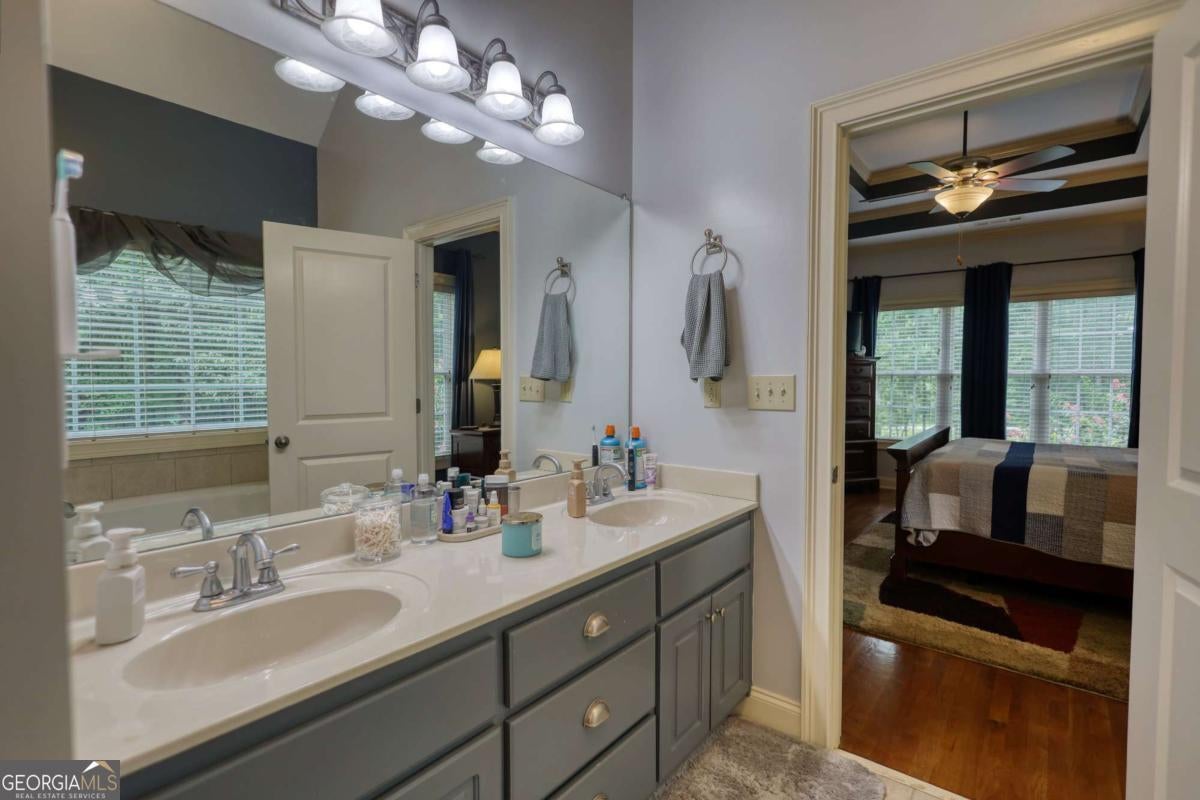 - Interior FeaturesDouble Vanity, High Ceilings, In-Law Floorplan, Master On Main Level, Soaking Tub, Tray Ceiling(s), Walk-In Closet(s)
