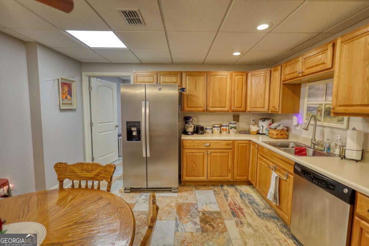 This stunning 5-bedroom, 4-bath home offers the perfect blend of comfort, style, and functionality - all on a beautifully landscaped 2-acre lot. Inside, the main floor features a spacious layout with solid surface countertops, an inviting kitchen, and a seamless flow for entertaining. The attached garage includes a 220 amp receptacle, ideal for charging your electric vehicle. Enjoy peace of mind with a newer roof and a newer main floor AC unit, keeping the home energy-efficient and comfortable. The mostly finished basement is a standout, complete with a full kitchen, its own laundry area, and plenty of space for guests, in-laws, or entertaining all while allowing you some unfinished space ideal for storage and lawn equipment. Step outside to discover a private oasis with an underground irrigation system, low-voltage wired landscape lighting, and a fenced area perfect for pets. The manicured grounds offer room to roam and relax, combining the serenity of country living with modern conveniences. This move-in-ready home truly has it all! Come see why it's the perfect place to call home! Motivated seller is offering up to $5000 in closing costs with a full price offer!