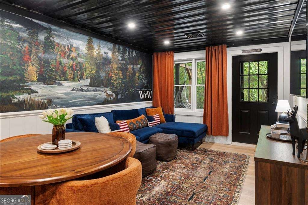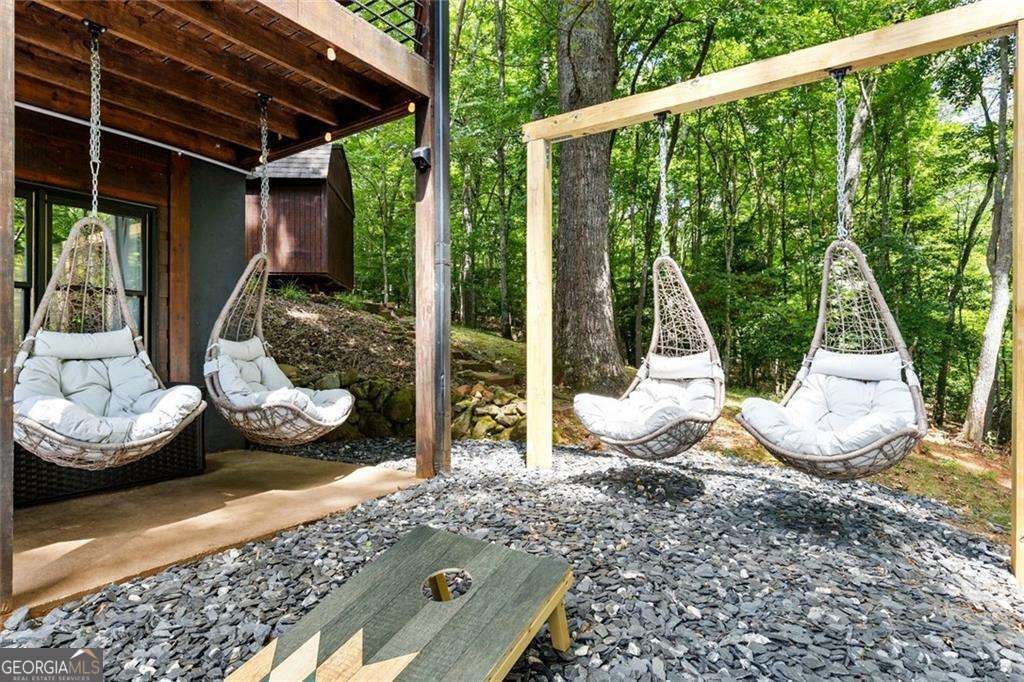 Tucked into the woods of Blue Ridge, Georgia, 120 Brookhaven Trail is a warm, welcoming cabin that feels like home the moment you arrive. This 4-bedroom, 3-bathroom retreat sits on nearly two acres of quiet land, with tall trees all around and a peaceful feeling you can sense right away. Inside, tall ceilings and hardwood floors make each room feel big and bright. A cozy stone fireplace in the living room invites you to relax on cool mountain nights, while the large Welcome to 120 Brookhaven Trail, a peaceful cabin tucked away in the quiet woods of Blue Ridge, Georgia. This warm and welcoming home has 4 bedrooms and 3 bathrooms, and it sits on almost two acres filled with tall trees and gentle breezes. From the moment you arrive, you feel calm, happy, and right at home. Inside, the tall ceilings and shiny hardwood floors make everything feel open and bright. The living room has a big stone fireplace, perfect for staying warm on chilly mountain nights. The kitchen is big too, with plenty of room to cook, eat, and laugh together. Downstairs, the finished basement gives you even more space to enjoy. There's a big media room for watching movies, a bar area for snacks and fun, and a quiet corner to relax and rest. Step outside and you'll find a private outdoor jacuzzi tub, hidden among the trees. It's the perfect place to soak and look up at the stars. And now, there's something new and special-a peaceful pathway that leads right to a quiet, serene creek. It's a lovely place to sit and listen to the water, think about happy things, or just enjoy the sounds of nature. This home has also been a successful short-term rental, so it's not just a cozy retreat-it's a smart investment too. It can be sold fully furnished, which means you can start enjoying it right away. If you love how it looks, the furniture can also be bought to keep that warm and cozy feeling. With all the space inside and out, and with nature surrounding you in every direction, this cabin is ready to be your happy place in every season-whether you're looking for quiet mornings, fun evenings, or peaceful nights by the creek.