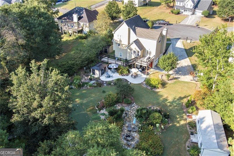 Imagine starting your morning overlooking peaceful water views and ending the day practicing your short game in your own backyard. Welcome to your private oasis in a quiet neighborhood featuring lake frontage, a fishing dock, and a backyard designed for both relaxation and recreation. Golf enthusiasts will love the professionally designed putting green, multiple chipping stations, and hitting net-perfect for beginners and avid golfers alike. The beautifully landscaped yard features numerous perennials and thoughtfully designed garden areas that provide color and charm year-round. Relax or entertain outdoors with a fire pit, patio, and gazebo, or unwind in the charming cabin-style shed-perfect for meditation or enjoying a quiet moment with a book. An additional storage shed/workshop is also located on the property and can be removed at the buyer's request. Inside, the main level features new luxury vinyl plank flooring and a remodeled kitchen with granite countertops and beautiful wood cabinetry, including a convenient tea/coffee bar. The kitchen opens to the dining area and includes a cozy breakfast nook overlooking the stunning backyard and tranquil pond views. Step outside to the oversized deck just off the dining room to fully enjoy the scenery. The spacious primary suite is located on the main level. New oak stair treads, along with a new balustrade and handrail, lead to the upper level where you'll find three additional bedrooms. Secondary bedrooms include built-in bookshelves and storage for added charm and functionality. The lower level offers two additional finished rooms, ideal for a recreation space, home office, or bedroom. One garage has been converted to an office/storage space but can easily be converted back by removing the wall. PLEASE NOTE: The hot tub and large outbuilding are not included in the sale of the home. Enjoy this unique retreat that offers privacy, recreation, and natural beauty-all while being conveniently located near schools, shopping, and everyday amenities.