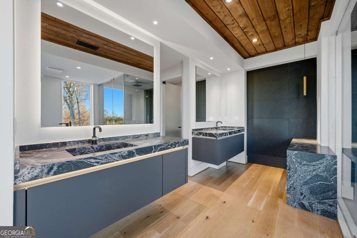This is not just a house, a lease...this is your life upgrade. I can't promise that while living here your startup will have a rockstar IPO, your fitness influencer brand will ink a deal to design the next Lululemon line, or your kid will get into all the ivy leagues; BUT, I can't say living at 1033 Reeder won't help you achieve amazing dreams either. And that's because, sharing space with a masterpiece like this Morningside icon will help you level up... literally. It sits atop a hill in the heart of this highly desirable neighborhood, amongst the trees and birds, and has clear views from the rooftop deck of the Midtown skyline. That's right, I said rooftop deck, which has an outdoor kitchen and half bath, but that's only one of 5 outdoor living spaces in the home. The rest of the more than 8,900 square feet of exquisite living space consists of 5 bedrooms, 5 full baths, 2 half baths and a 2-car garage in the main house; plus, a one bedroom, one-and-a half bath ADU with a two-and-a-half car garage. It exudes a Northern Califormia vibe in the finishes, the architecture and the way it drips elegance -- Wolf, Sub-Zero and Gaggenau appliances; heated floors and a steam shower in primary suite; stairs and shelving crafted from trees formerly occupying the land; conditioned garages; automated everything; and all the mood lighting you can handle. Your parties will be the most coveted invitation in Atlanta. The pool, which is near completion, will make a perfect back drop for your own Gatsby inspired evenings and the heated spa will nurse you back to health the next morning. For guests that are just visiting or those who stay much longer, you have options. The beautiful mountain-esque guest house has it's own laundry, expansive deck and could come furnished. The lower level of the main house is also designed with the intention of serving as an au-pair or in-law suite. Honestly, no detail has been missed - multiple fireplaces, morning bar in the primary, laundry off the primary bath, media room, covered patio with an automated screen enclosure...I could go on, but it's better in person. Don't miss out on this extraordinary opportunity to lease this extremely rare property in one of Atlanta's most loved neighborhoods. Seize this moment and be the envy of your neighbors and friends.