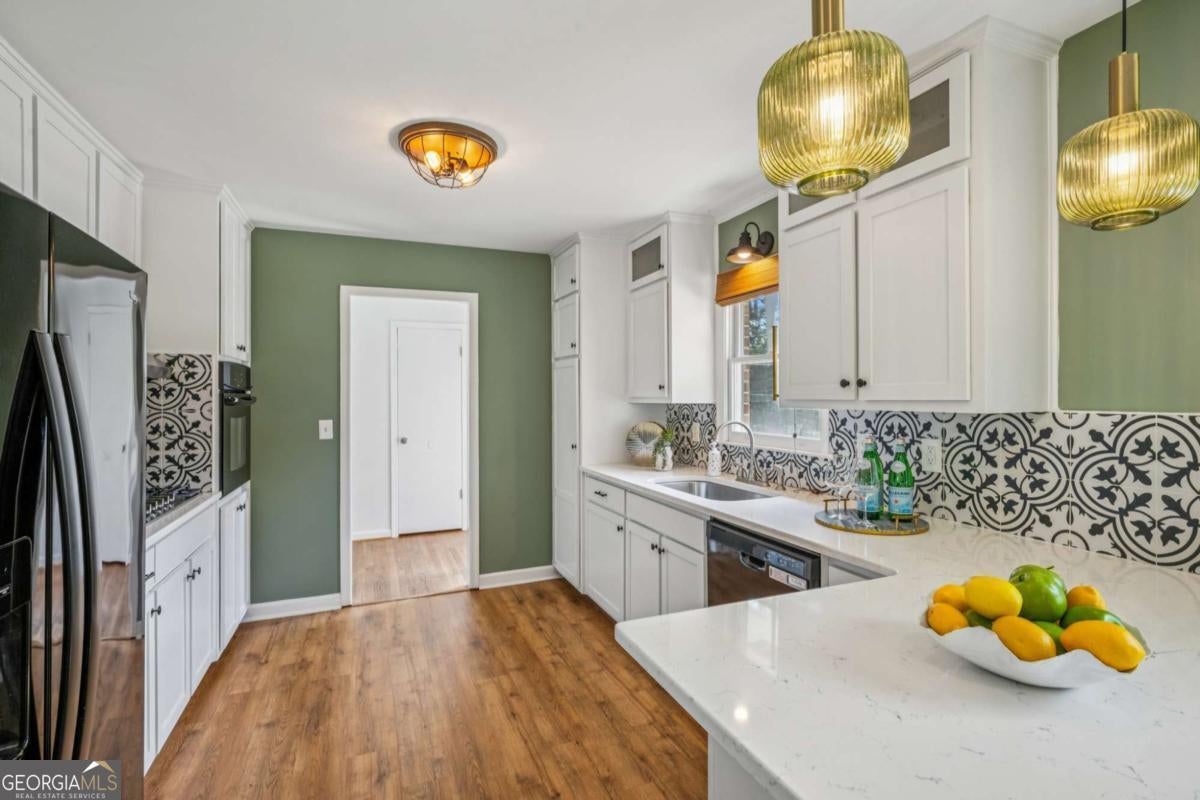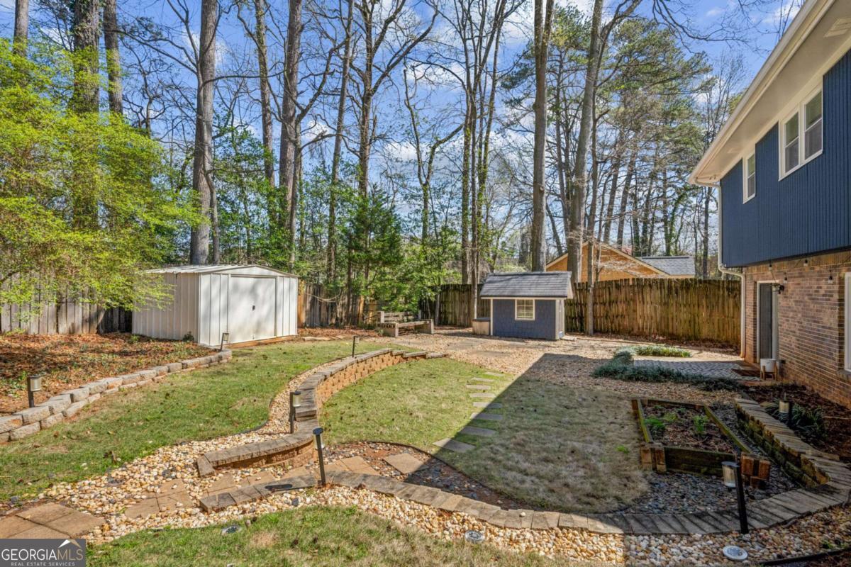 Perched above its private cul-de-sac, 3316 Trent Ct enjoys one of the best settings in Lindmoor Woods. A thoughtfully designed landscape warmly welcomes you home, where you'll drop your keys in the kitchen and quickly retreat to the oversized, fully fenced backyard. With so much space, it's perfect for playing catch with your four-legged friends or hosting BBQ gatherings with friends of the two-legged variety. Inside, the home offers plenty of space with privacy to match. The kitchen is a classic, featuring white cabinetry, a breakfast bar, black Whirlpool appliances, white quartz countertops, and space for a breakfast table. The dining and living rooms are conveniently connected yet distinct spaces, filled with incredible natural light and overlooking the backyard. As evening falls, add a little magic by turning on the exterior string lights for a peaceful, zen-like night at home. Upstairs you'll find three generous bedrooms and a full bathroom, while the lower level features a huge primary suite with a newly renovated bathroom and shower that a designer's eye will surely appreciate. Still looking for extra closet space? The walk-in primary closet is the size of a bedroom and doubles as a private laundry room, complete with a GE washer and dryer. Additional storage can be found throughout the home, including a convenient storage room off the carport and a tool shed in the backyard. The roof is only two years old, and the water line from the street has already been replaced. Lindmoor Woods is a classic North Decatur neighborhood with optional swim/tennis, easy access to Publix, Home Depot, Downtown Decatur, Emory, Tucker and Lulah Hills is on the way. You'll love saying yes to this home-don't miss it!
