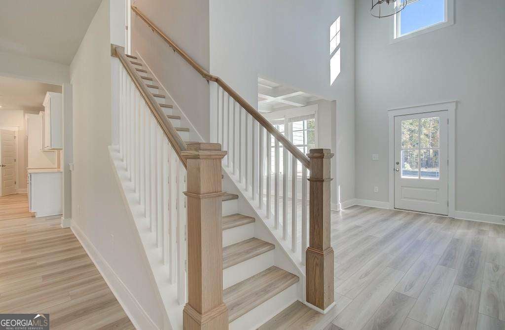 Welcome home to the SaddleRidge community in sought-after Senoia. This beautifully crafted DRB Homes residence features a charming brick and craftsman-style exterior and offers 4 bedrooms and 3.5 bathrooms within the spacious Henry II floor plan on Homesite 117. The open-concept main level includes a gourmet kitchen with a large island, quartz countertops, 42" white cabinets, and a generous walk-in pantry, all overlooking the breakfast area and family room. A formal dining room with coffered ceilings provides an elegant setting for gatherings. The first-floor primary suite serves as a private retreat with an expansive walk-in closet, dual vanities, a soaking tub, and an oversized walk-in shower. Upstairs, a large media room adds flexible living space for movies, games, or relaxation, and an oversized bonus room offers the potential for a fifth bedroom. Please note that photos and virtual tours may depict a decorated model or spec home for illustration purposes only. Please note: If the buyer is represented by a broker/agent, DRB REQUIRES the buyer's broker/agent to be present during the initial meeting with DRB's sales personnel to ensure proper representation.