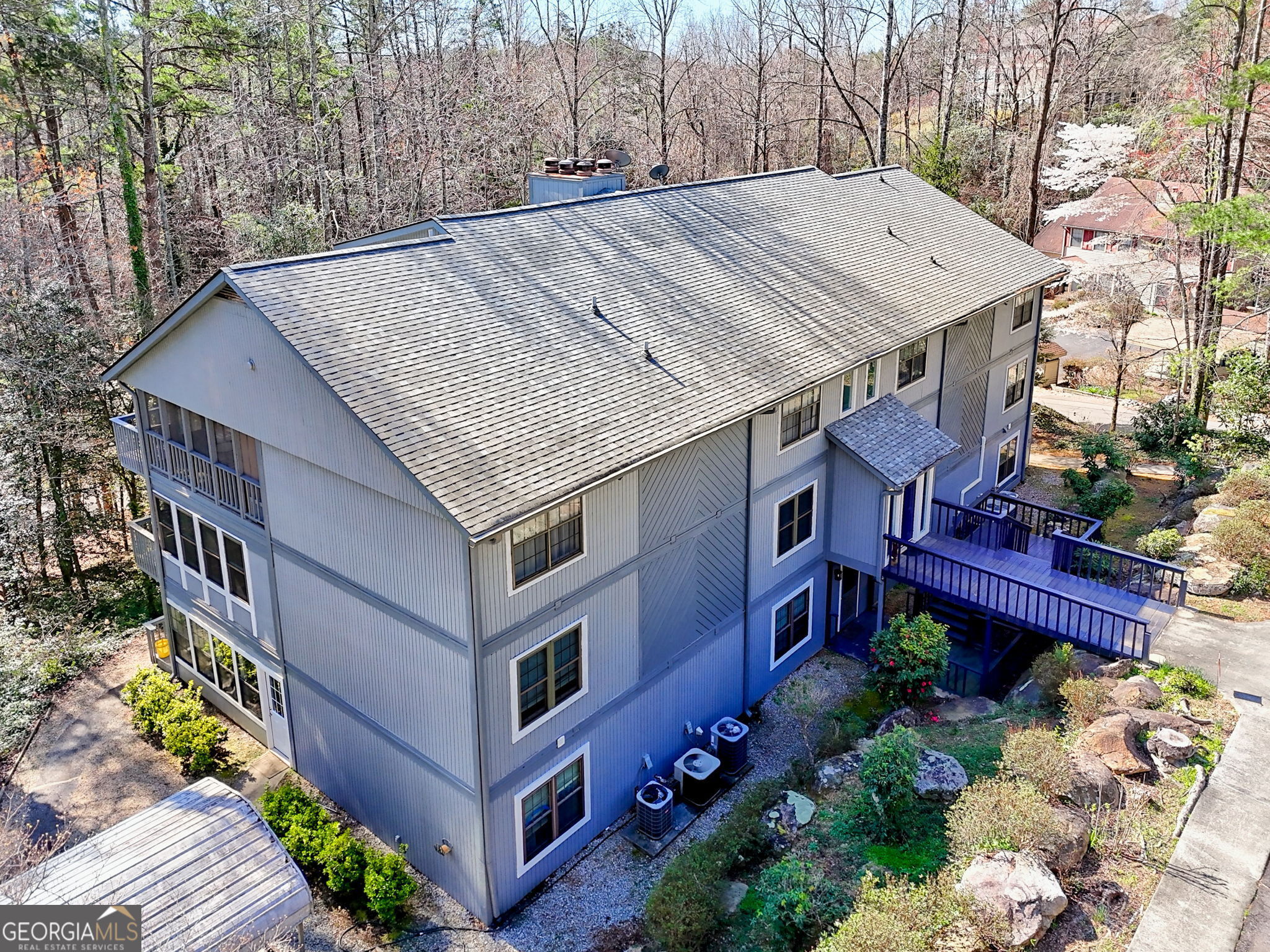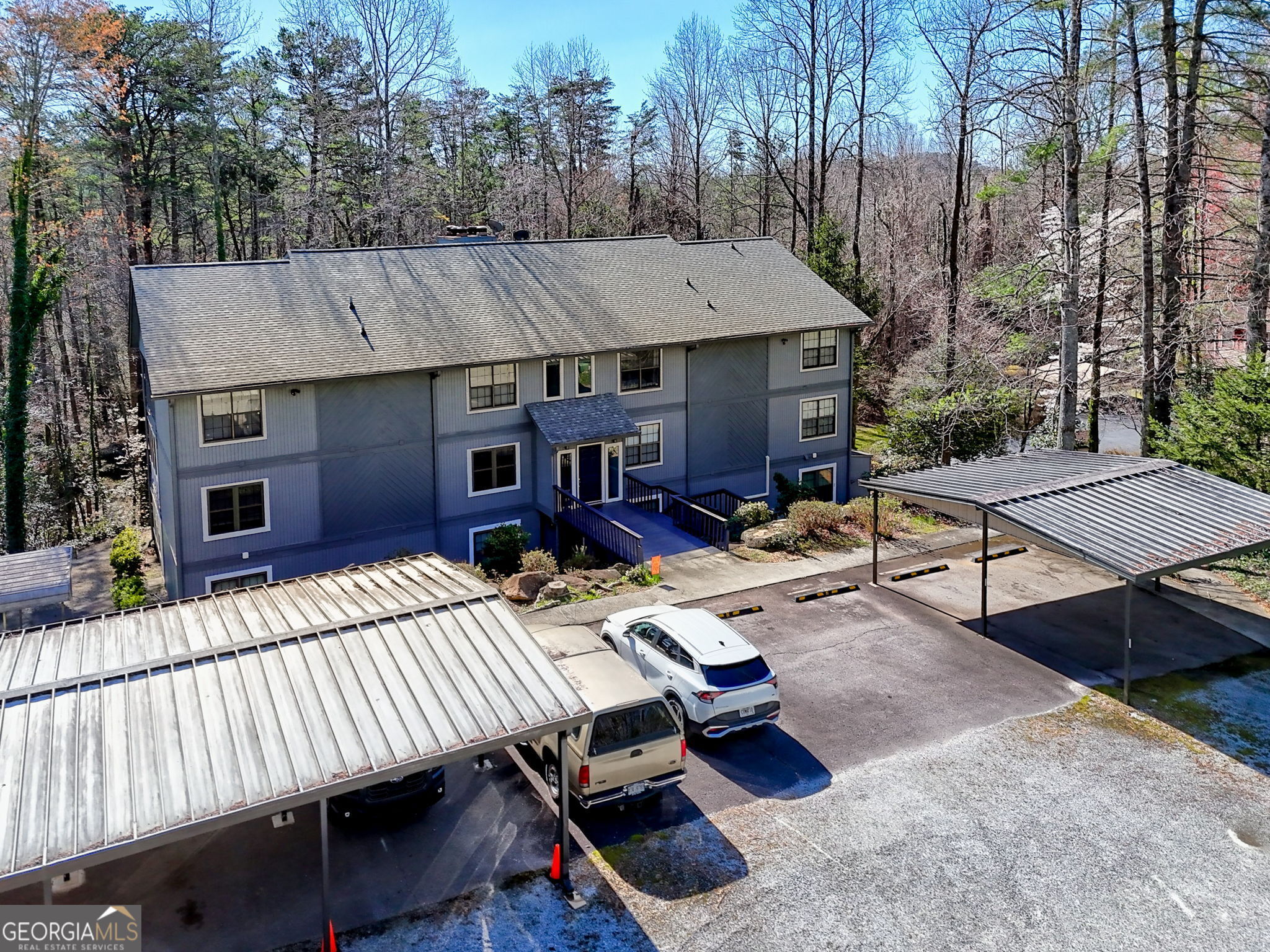 CHARMING MOUNTAIN CONDO NEAR DOWNTOWN CLAYTON Nestled in a peaceful natural setting, this inviting mountain condo features large windows that fill the home with natural light while showcasing the surrounding wooded landscape. Enjoy the perfect balance of mountain tranquility and convenient close-to-town living, with downtown Clayton's shopping, dining, and local attractions just one mile away. The exterior is well maintained: fresh paint & new roof. The interior is a fixer-upper and is priced to sell, offering a fantastic opportunity for buyers looking to renovate and take this property to the next level. The unique layout offers no steps to the front door, yet the elevated setting provides a wonderful "treehouse" feel, as if you're relaxing in your own observation tower overlooking the forest. The spacious 1,338 sq ft floor plan is low-maintenance and comfortable, making it ideal as a full-time residence, weekend mountain getaway, or investment property. THIS IS A 55+ CONDO.