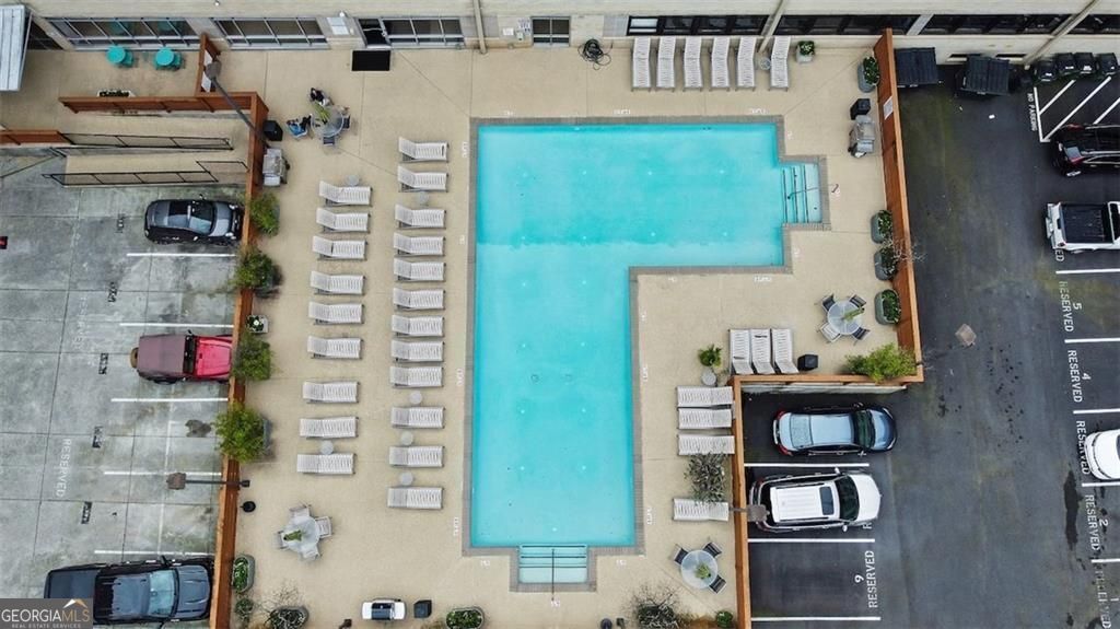 Lofty Goals? Must see 5th floor, tree-top, corner loft with stunning skyline & cityscape views both day & night. Smart renovation provides true bedroom privacy complete with soundproof insulation & room-darkening blinds. Larger than most 2BRs at 1265sf, there is plenty of wide open spaces for creativity. The footprint accommodates a 2nd BR as a couple others have done. Contemporary lighting and hardware upgrades, full-size, in-unit laundry, & an extra in-unit storage closet. Includes 2 convenient, assigned/deeded tandem garage parking spaces. 24-hour Concierge, salt-water pool with grilling area, pet park, fitness center, & renovated lobby with comfortable common area for entertaining. In the center of Midtown, a few blocks from Piedmont Park, the Fox Theatre, High Museum, Atlanta Beltline, & many shopping/dining options. Peachtree Lofts Condominiums is a solid mid-century conversion loved by residents and a favorite of real estate agents! Fun Fact: has a whole building generator so power is on if there is an outage!
