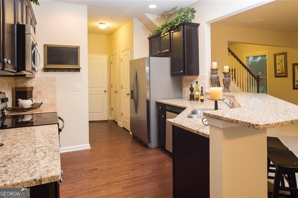 Beautiful 3BR/2.5BA Townhome in Gated Community - Johns Creek/Alpharetta Welcome to this stunning townhome located in a desirable gated community in the heart of Johns Creek/Alpharetta. This spacious 3-bedroom, 2.5-bathroom home features hardwood floors throughout the main level, creating a warm and elegant ambiance. Enjoy cooking and entertaining in the gourmet kitchen, complete with granite countertops, a breakfast bar, and stainless steel appliances. The private patio off the kitchen is perfect for morning coffee or evening relaxation. The family room is centered around a cozy fireplace, making it ideal for gatherings or quiet nights in. Upstairs, the grand owner's suite offers a luxurious bath and a massive walk-in closet your own personal retreat. Don't miss out on this beautiful, move-in-ready home with upscale finishes and a fantastic location!