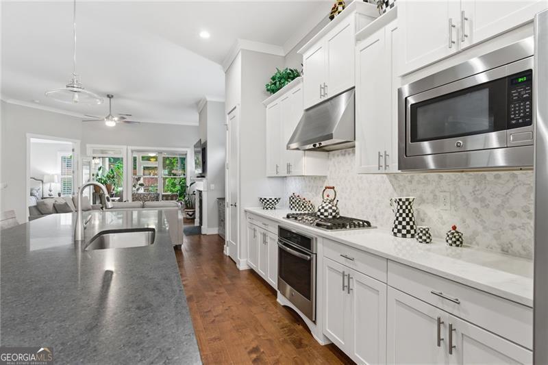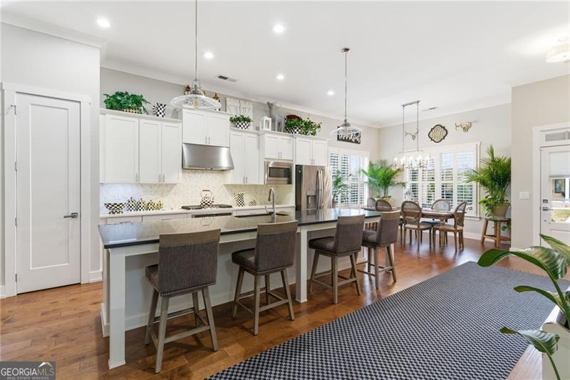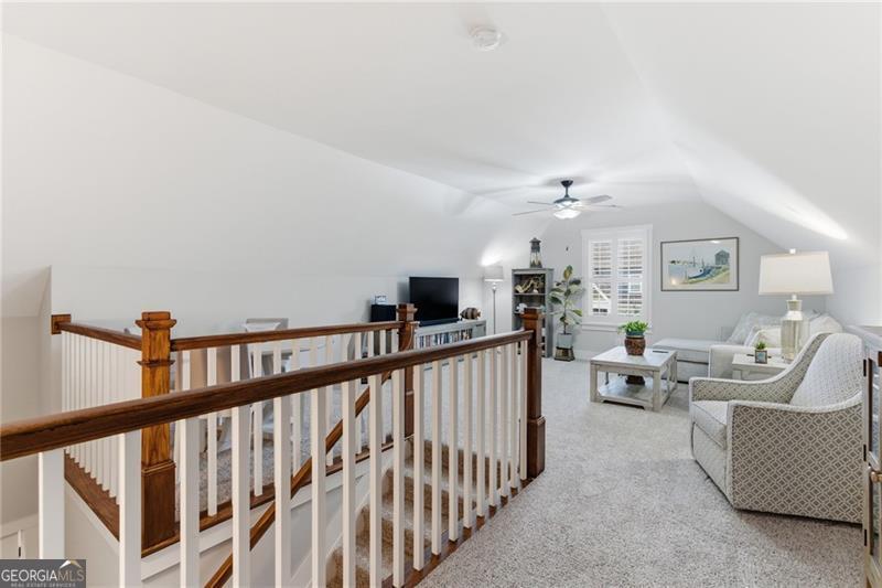 Welcome to this beautifully maintained former model home in the desirable Edgewater community, located within top-rated school districts. This thoughtfully designed stepless ranch offers comfortable main-level living along with a spacious upstairs loft suite that creates the perfect setup for guests or multigenerational living. From the moment you enter, you'll notice the impressive 11-foot ceilings and the many upgrades throughout the home. Over $50,000 in recent improvements include updated designer light fixtures, fresh trim and exterior paint, a top-of-the-line tankless water heater installed in 2025, and a fully enclosed sunroom with brand new windows that provides a bright, relaxing space to enjoy year-round. The kitchen is truly a standout feature and a dream for anyone who enjoys cooking or entertaining. A large quartz island provides seating for four and serves as the centerpiece of the space, while additional counter space around the oven and refrigerator offers excellent functionality. The kitchen also flows naturally into a dining area and the inviting living room, where a fireplace and generous layout create a warm and comfortable place to relax or entertain. The oversized primary suite offers excellent space and functionality with two separate walk-in closets and a beautifully updated bathroom featuring new tile. A nearly brand-new Kohler walk-in bathtub has already been installed, providing both luxury and convenience-especially ideal for buyers looking for easy accessibility. Upstairs, the home offers a private loft-style retreat that feels like its own separate living space. This area includes a comfortable living loft, a large bedroom with two closets, and a full bathroom, making it perfect for extended family, guests, or a private home office setup. Additionally, it has custom plantation shutters/remote blinds. The Edgewater community offers true resort-style amenities including a swimming pool, tennis courts, fitness center, clubhouse, and a scenic lake, creating a vibrant and active neighborhood environment. HOA dues include comprehensive lawn care and maintenance-covering four lawn cuttings per month along with pine straw and seasonal flowers twice a year-allowing for easy, low-maintenance living. Thoughtfully upgraded and move-in ready, this home combines comfort, functionality, and style in one of Canton's most desirable communities. Conveniently located near shopping, dining, outdoor recreation, and excellent schools, it provides easy access to everything the area has to offer while still maintaining a peaceful neighborhood setting.