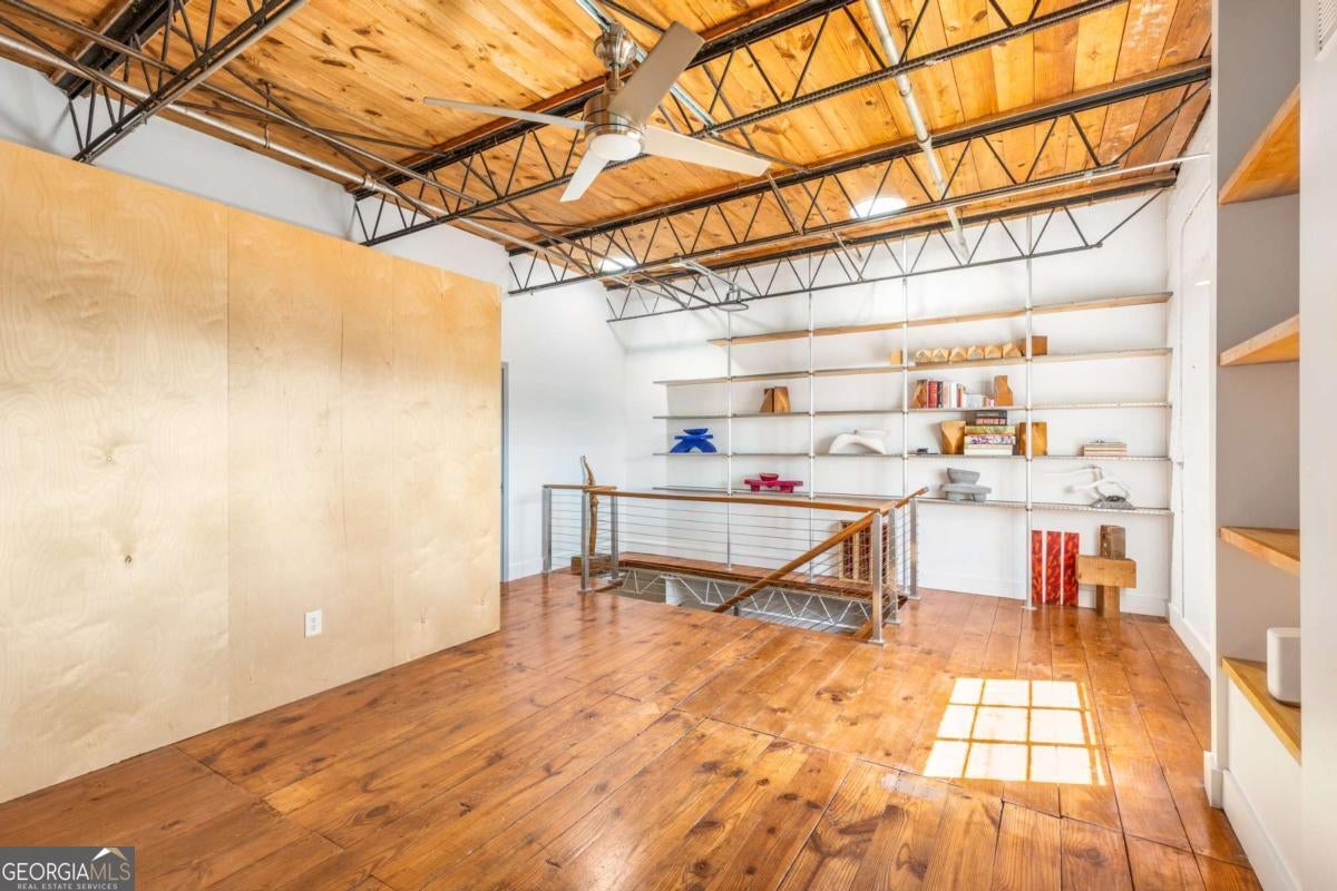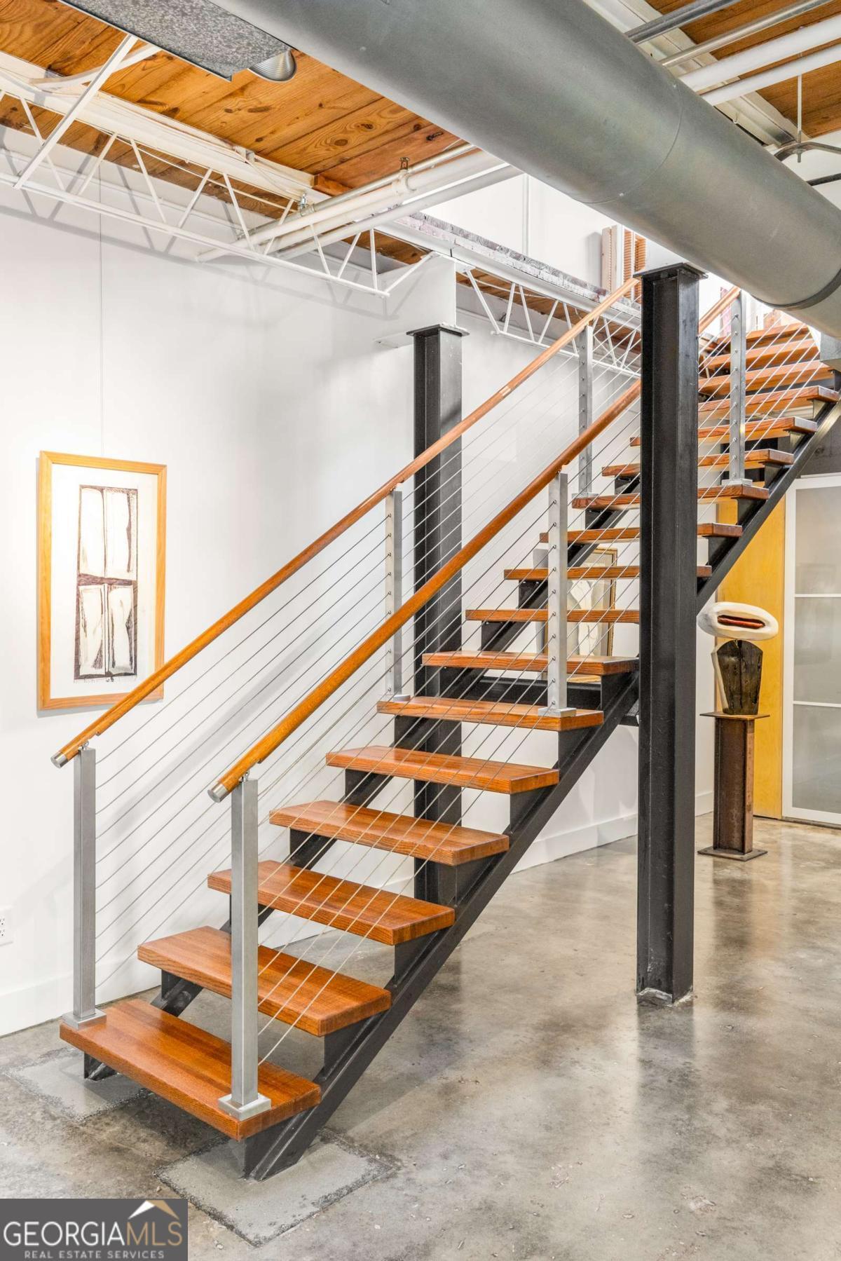 Two blocks from the Eastside Beltline. Three theaters within walking distance. Some of Atlanta's best restaurants right around the corner. And then you come home to this. Unit D at Inman Motor Works is a two-bedroom, two-bath loft in what was once the retail storefront of a working motor factory. That history isn't just a selling point; you see it in the bones. The massive steel windows are an architectural statement, framing the trees outside like a painting and giving the space a character you won't find in new construction. The layout gives you two full levels to work with. Polished concrete on the main floor, warm pine upstairs. A floating staircase connects them, and it's the kind of detail you notice every time you use it. The kitchen and both baths have been updated without losing the industrial character that makes the space what it is. Step outside and the grounds feel nothing like the city you just came from. Lushly planted paths, mature trees, a central fountain. It's quiet in a way that surprises people. Two assigned parking spaces are included, and so is a coveted Inman Park Pool Membership, which is genuinely hard to come by and exactly what you want when Atlanta summers arrive. The neighborhood handles the rest. Coffee, the Beltline, dinner, live music, theater, all of it within a short walk. You won't need your car much, but you have two spaces when you do. Character, location, and a lifestyle that's hard to replicate anywhere else in the city.