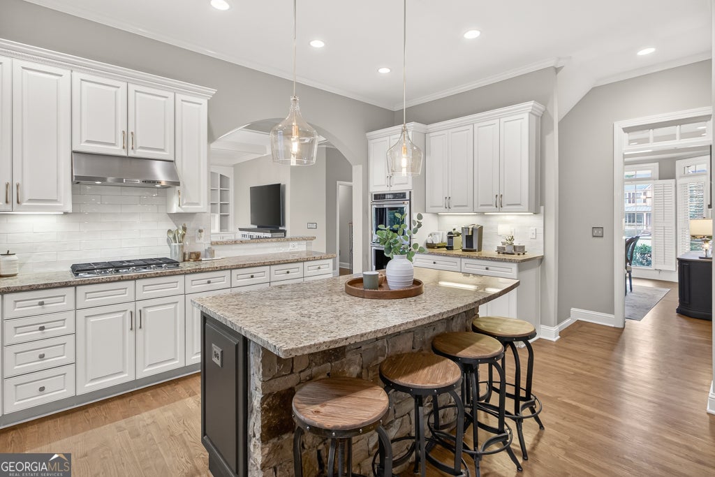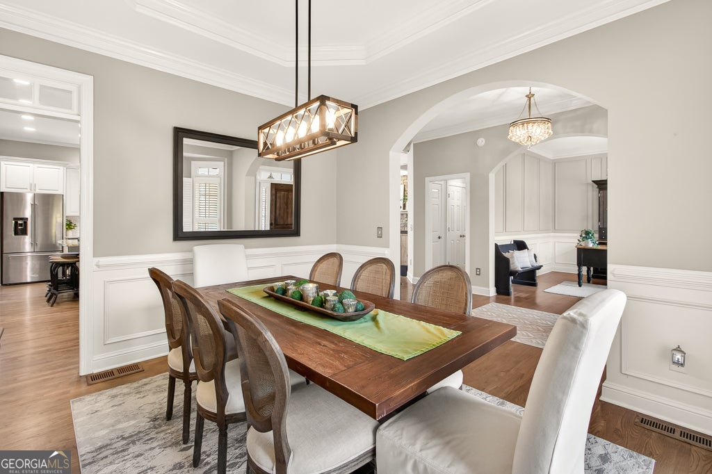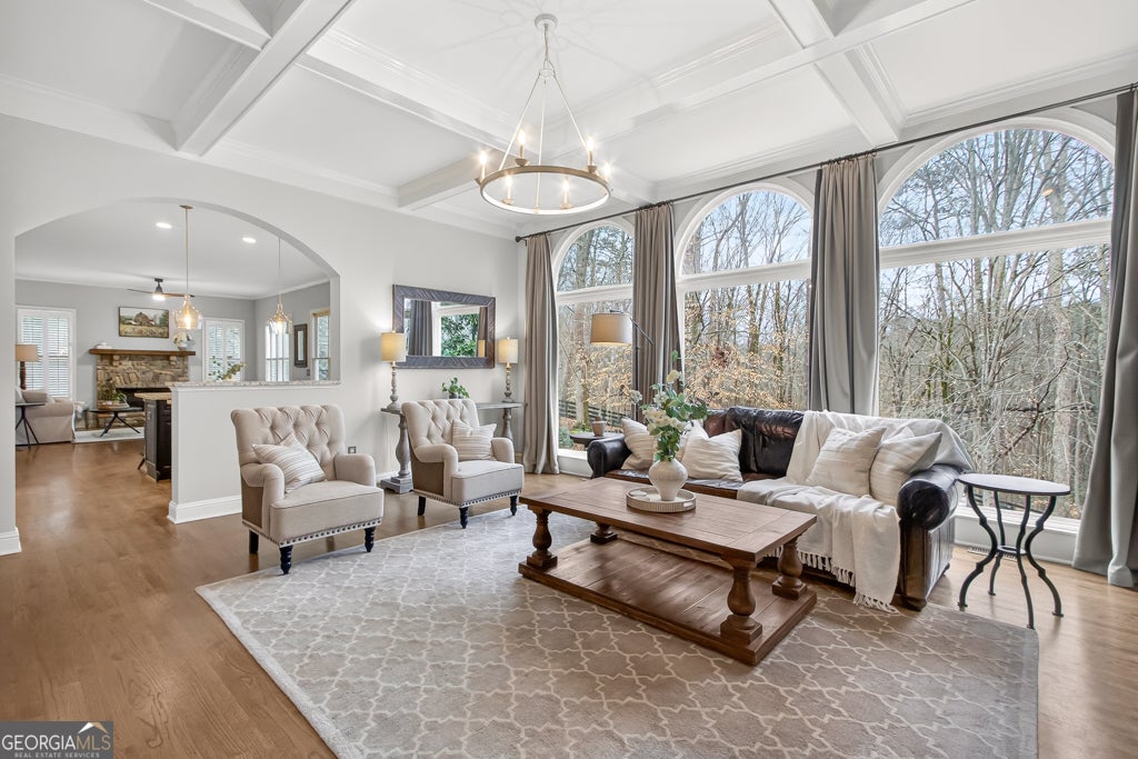 Welcome to Taylor Glen, one of Milton's premier neighborhoods served by its top-rated schools. This refined brick residence blends timeless architecture with elevated modern updates throughout. The main level offers 10-foot ceilings, newly refinished hardwood floors, custom millwork, designer lighting, and a seamless flow for everyday living and entertaining. The beautifully updated chef's kitchen features a large island, granite surfaces, white textured subway tile, new KitchenAid appliances, and an impressive walk-in pantry with custom shelving. A butler's pantry, mudroom with drop zone, and additional storage enhance both function and style. The spacious family room showcases a coffered ceiling, stacked-stone fireplace, built-ins, and a wall of windows framing serene views of the wooded backyard. A warm keeping room with stone fireplace and reclaimed-wood mantle extends the living space. Upstairs, the expansive owner's suite includes a sitting room with fireplace, extensive built-ins, and a spectacular custom His-and-Hers closet system. The spa-inspired bath features a rainfall shower, quartz countertops, double vanities, and generous storage. All secondary bedrooms offer en-suite baths, with two oversized suites featuring double closets and updated finishes. The light-filled terrace level provides exceptional additional living space with high ceilings, hardwood floors, a media room, wine cellar, exercise area, game room, guest suite with updated bath, and a large workshop and storage area with French doors. Outdoor living is equally impressive with a screened porch, deck, and brick patio overlooking nearly 1.5 acres of private, wooded beauty. The property offers a large level fenced yard-perfect for a future pool-as well as natural wooded terrain with direct access to Little River. Ideally situated on a quiet cul-de-sac, this home delivers luxury, privacy, and an unmatched Milton lifestyle.