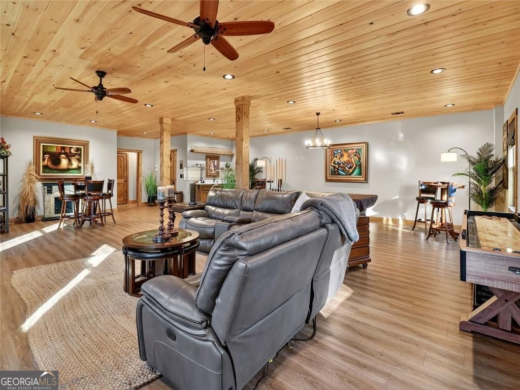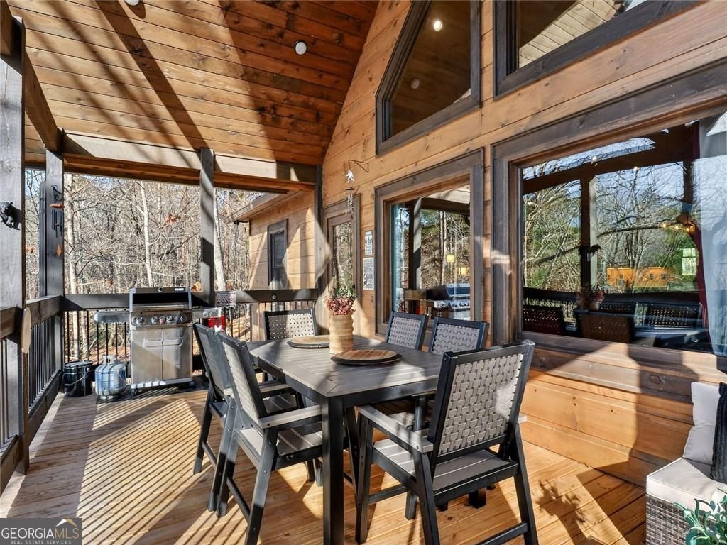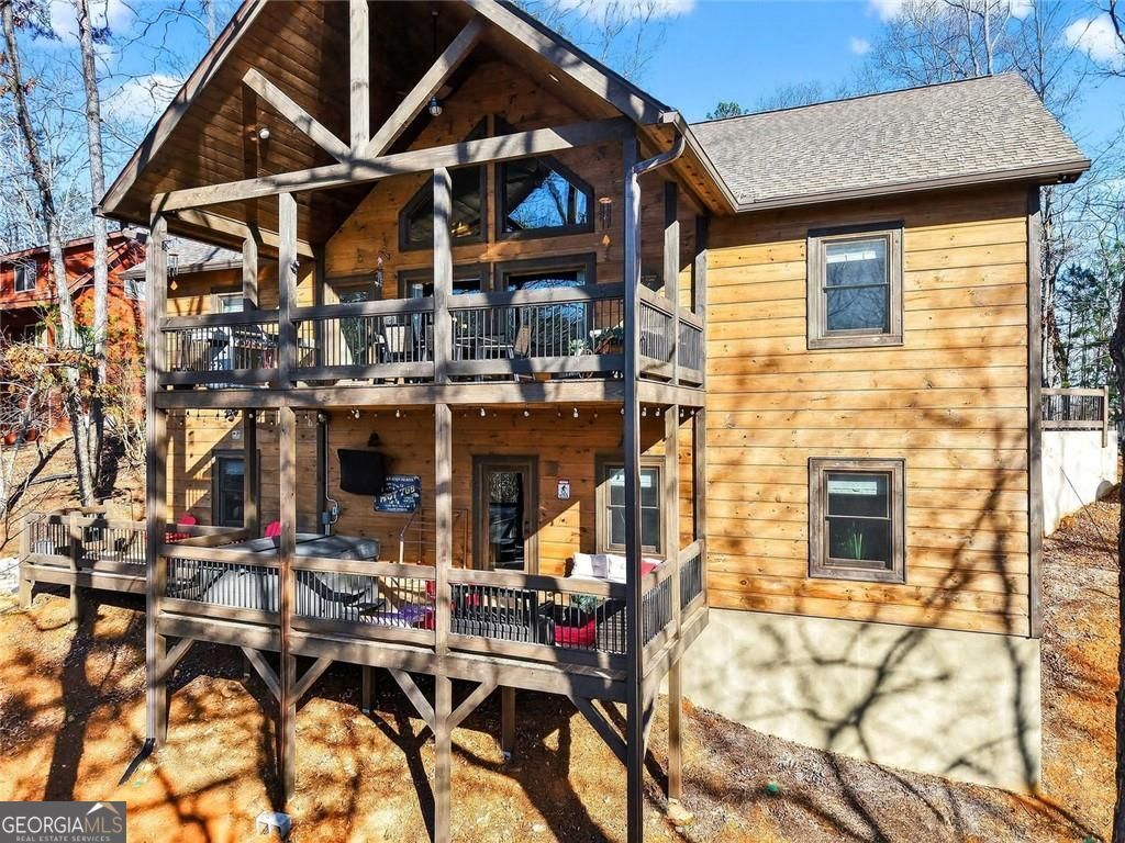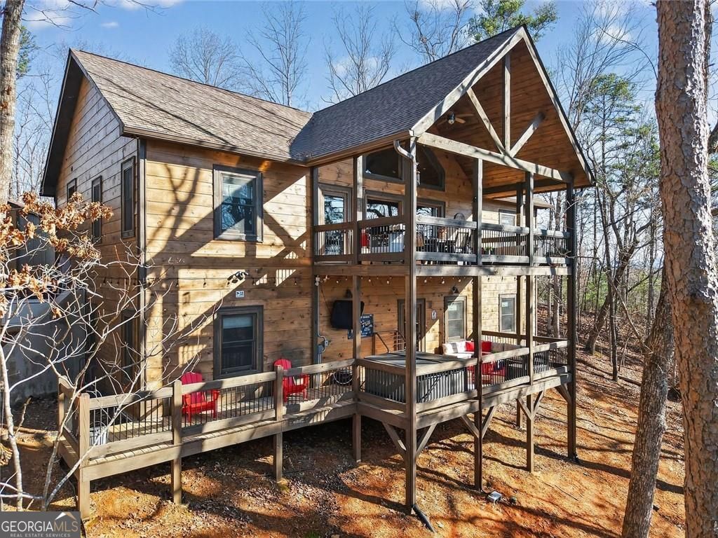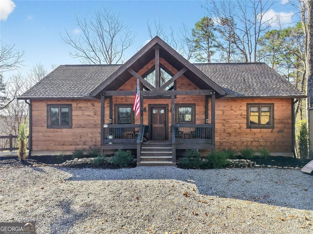 This lovely 3/3 rustic ranch style retreat is a stunning home and CRR offers amenities like no other community in North Georgia! There's 2 bedrooms and 2 bathrooms on the main floor, as well as a large laundry room conveniently located so you can have one level living! Enjoy a fully finished basement that adds a 3rd bedroom and another bath. This space also boasts a large rec area/den that is perfect for entertaining. Spacious open kitchen & living room, with a floor to ceiling rock fireplace, wall of fixed glass, large, covered party porch and interior upgrades galore, including wood floors, granite countertops, custom cabinets, stainless steel appliances; the list goes on... Owner additions include a detached garage, storage building and a fire pit. This 2024-built home, by Watkins Home Builders, blends modern comfort with timeless cabin charm, offering the perfect balance of luxury and relaxation. Expansive covered party porch, perfect for gatherings, grilling, or simply enjoying the mountain air. Peaceful, private setting, surrounded by natural beauty. This home is truly a must see!! Perfect for full time living, your home away from home, or investment property! Extremely successful rental with high ROI. Turnkey.