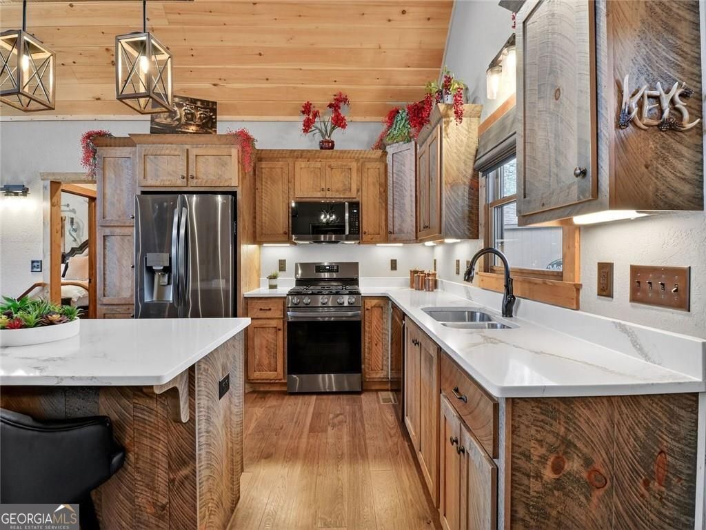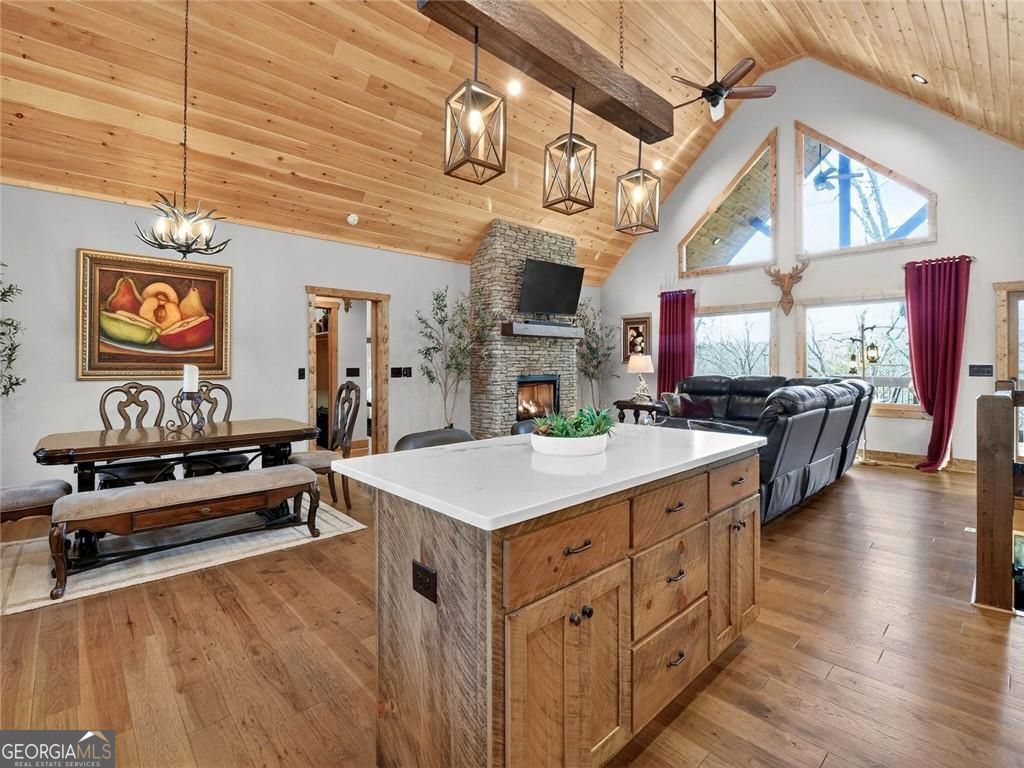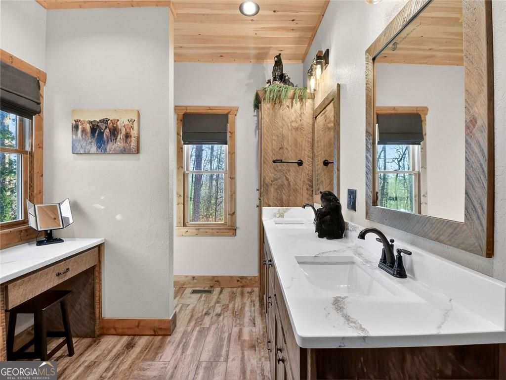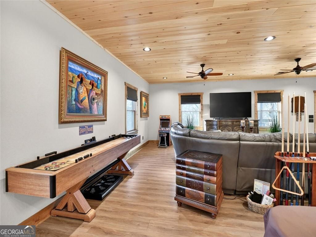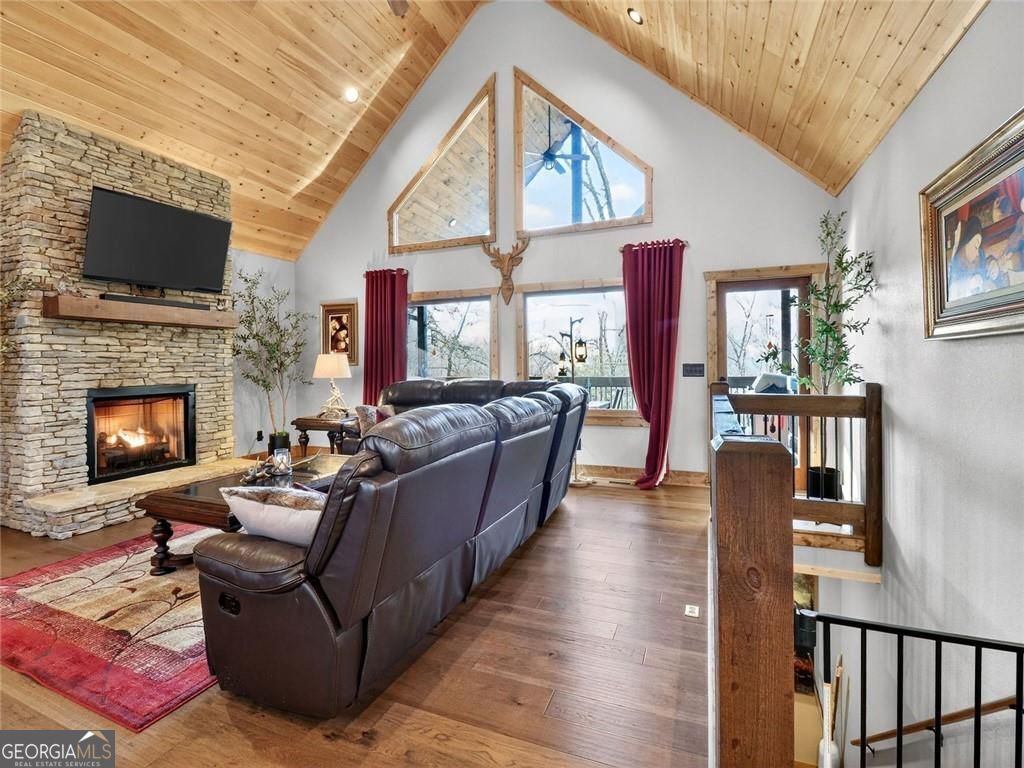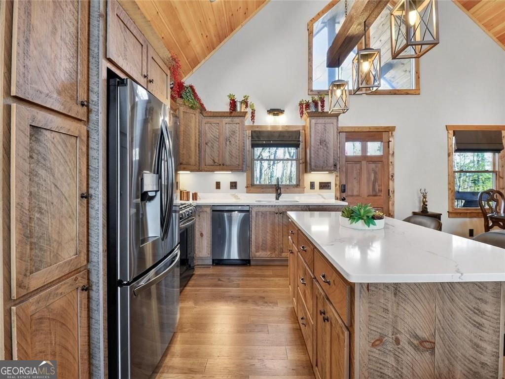 This lovely 3/3 rustic ranch style retreat is a stunning home and CRR offers amenities like no other community in North Georgia! There's 2 bedrooms and 2 bathrooms on the main floor, as well as a large laundry room conveniently located so you can have one level living! Enjoy a fully finished basement that adds a 3rd bedroom and another bath. This space also boasts a large rec area/den that is perfect for entertaining. Spacious open kitchen & living room, with a floor to ceiling rock fireplace, wall of fixed glass, large, covered party porch and interior upgrades galore, including wood floors, granite countertops, custom cabinets, stainless steel appliances; the list goes on... Owner additions include a detached garage, storage building and a fire pit. This 2024-built home, by Watkins Home Builders, blends modern comfort with timeless cabin charm, offering the perfect balance of luxury and relaxation. Expansive covered party porch, perfect for gatherings, grilling, or simply enjoying the mountain air. Peaceful, private setting, surrounded by natural beauty. This home is truly a must see!! Perfect for full time living, your home away from home, or investment property! Extremely successful rental with high ROI. Turnkey.