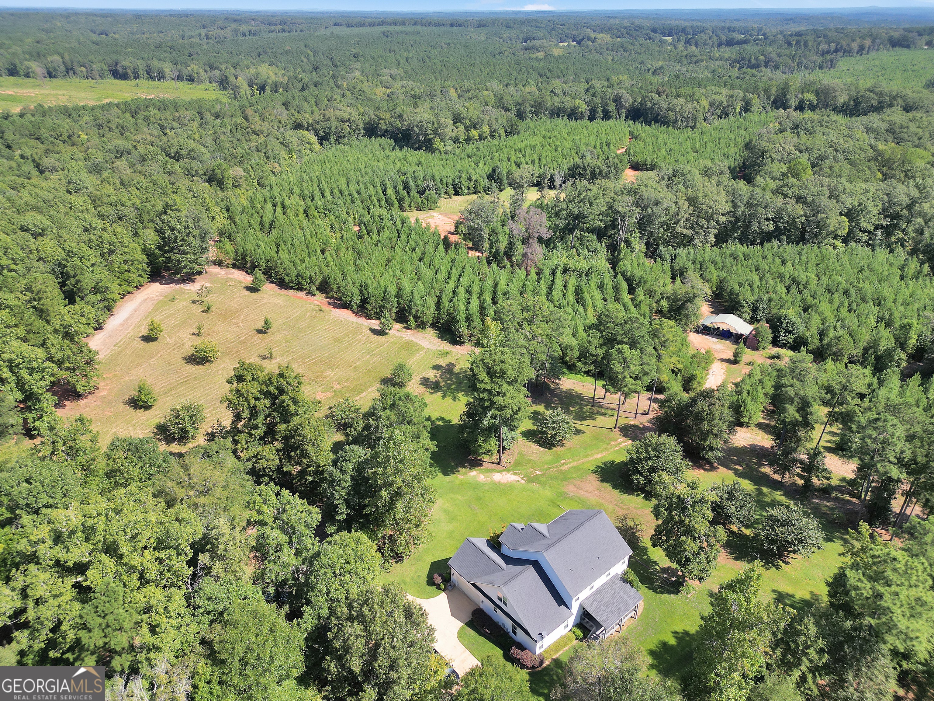 This beautiful 4-bedroom, 3.5-bath traditional home is nestled on 61.14 private acres, offering the perfect blend of comfort and space. The open floor plan creates a seamless flow for everyday living and entertaining, while the eat-in kitchen features a breakfast bar and ample room for gatherings. Generously sized bedrooms provide comfort for everyone, and a versatile bonus room adds flexibility for a home office, media room, or 5th bedroom. Step outside to enjoy the covered back porch overlooking the peaceful property, complete with a fire pit-ideal for relaxing evenings and outdoor entertaining. This exceptional 61.14 acre private tract offers a rare blend of beauty, recreation, and income potential. Approximately 25 acres of mature hardwoods paired with 25 acres of select Piedmont 3 loblolly pines, which may be thinned in the near future to generate revenue. An excellent internal trail system provides easy access throughout the property, ideal for hiking, hunting, or ATV use. A small creek meanders through the land, adding to the natural charm and wildlife appeal. Perfect for a private retreat, recreational use, or long-term investment opportunity. A rare opportunity to enjoy privacy, space, and functionality all in one exceptional home.