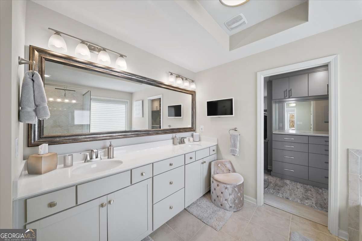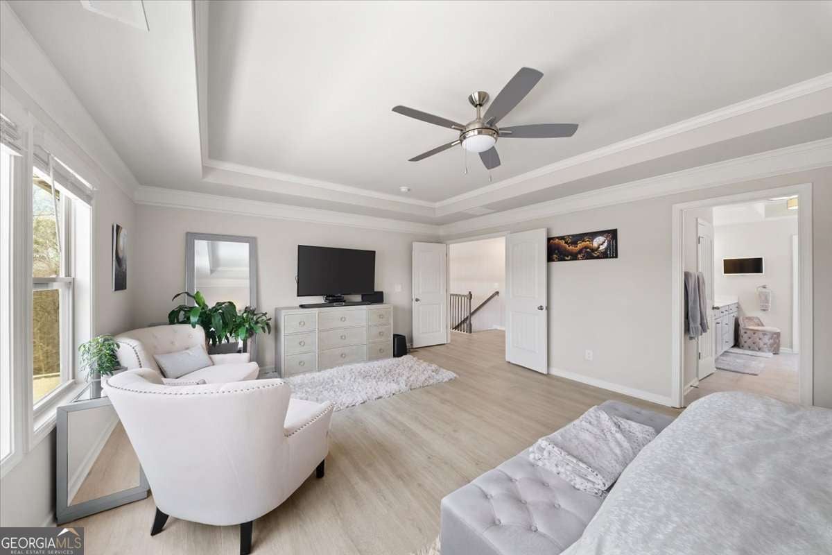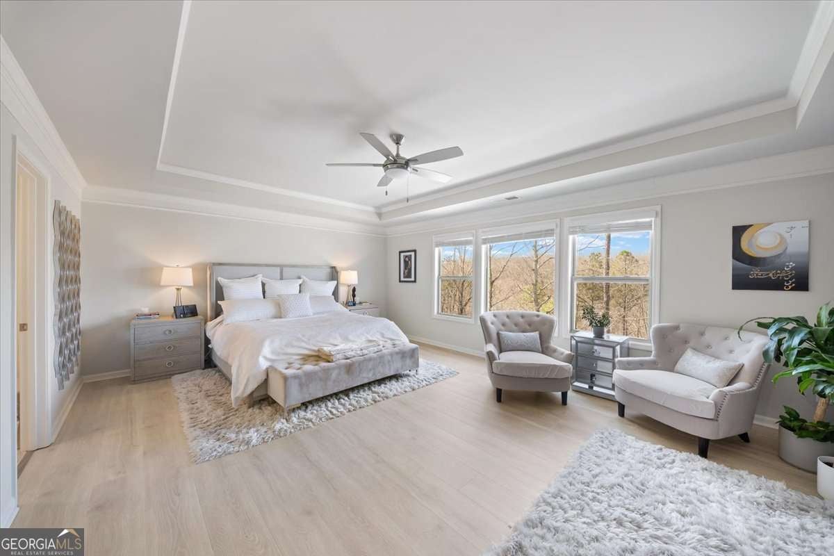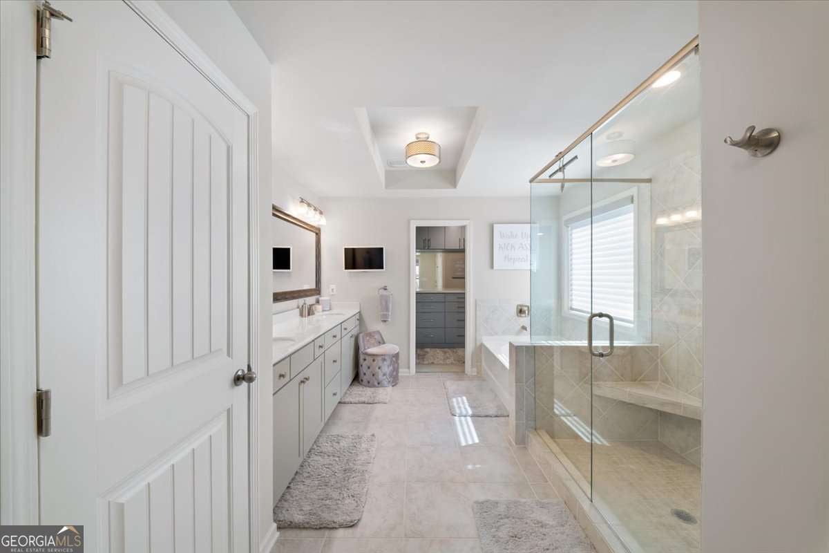 - Interior FeaturesBookcases, Double Vanity, Split Bedroom Plan, Tray Ceiling(s), Walk-In Closet(s)