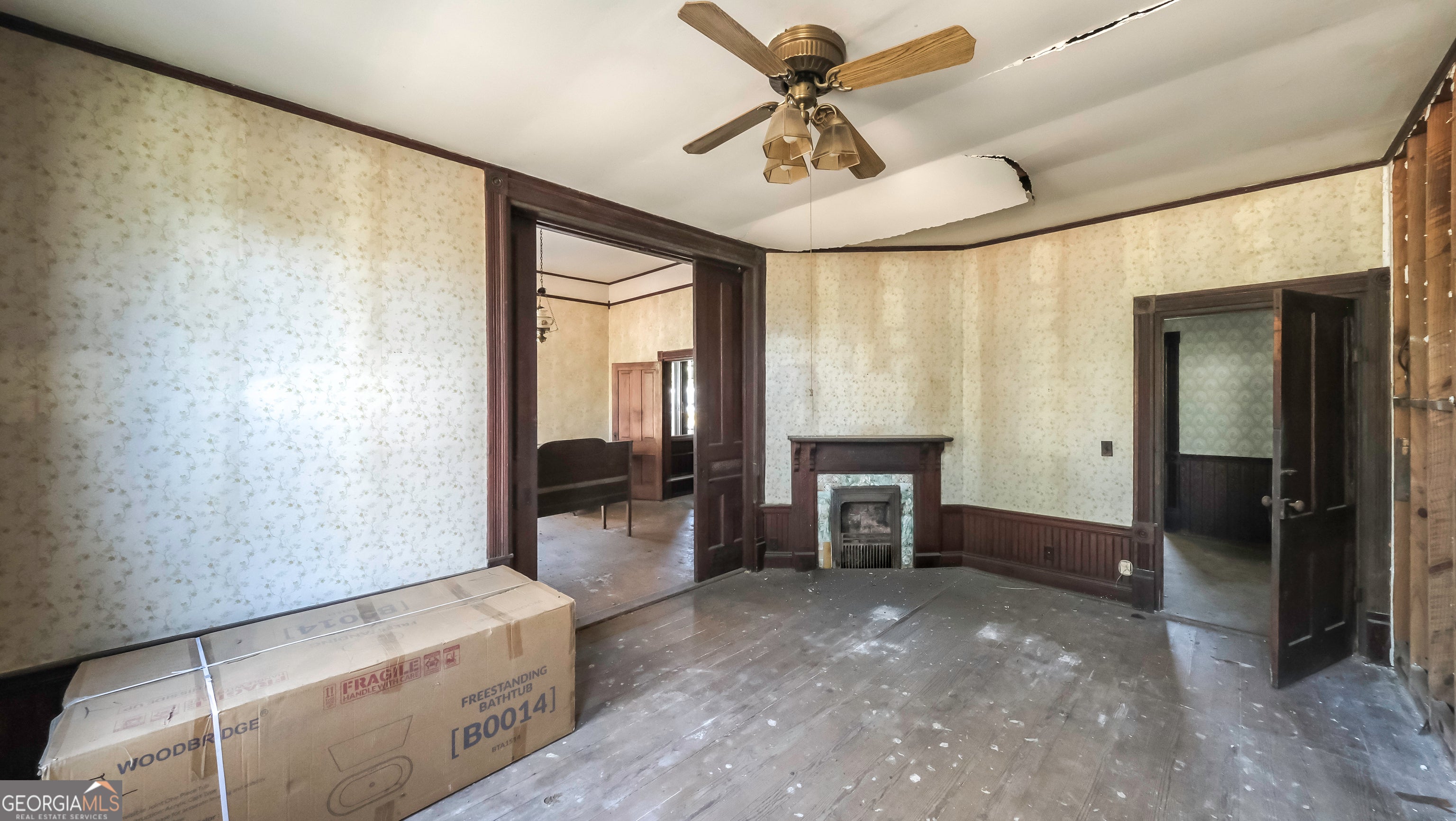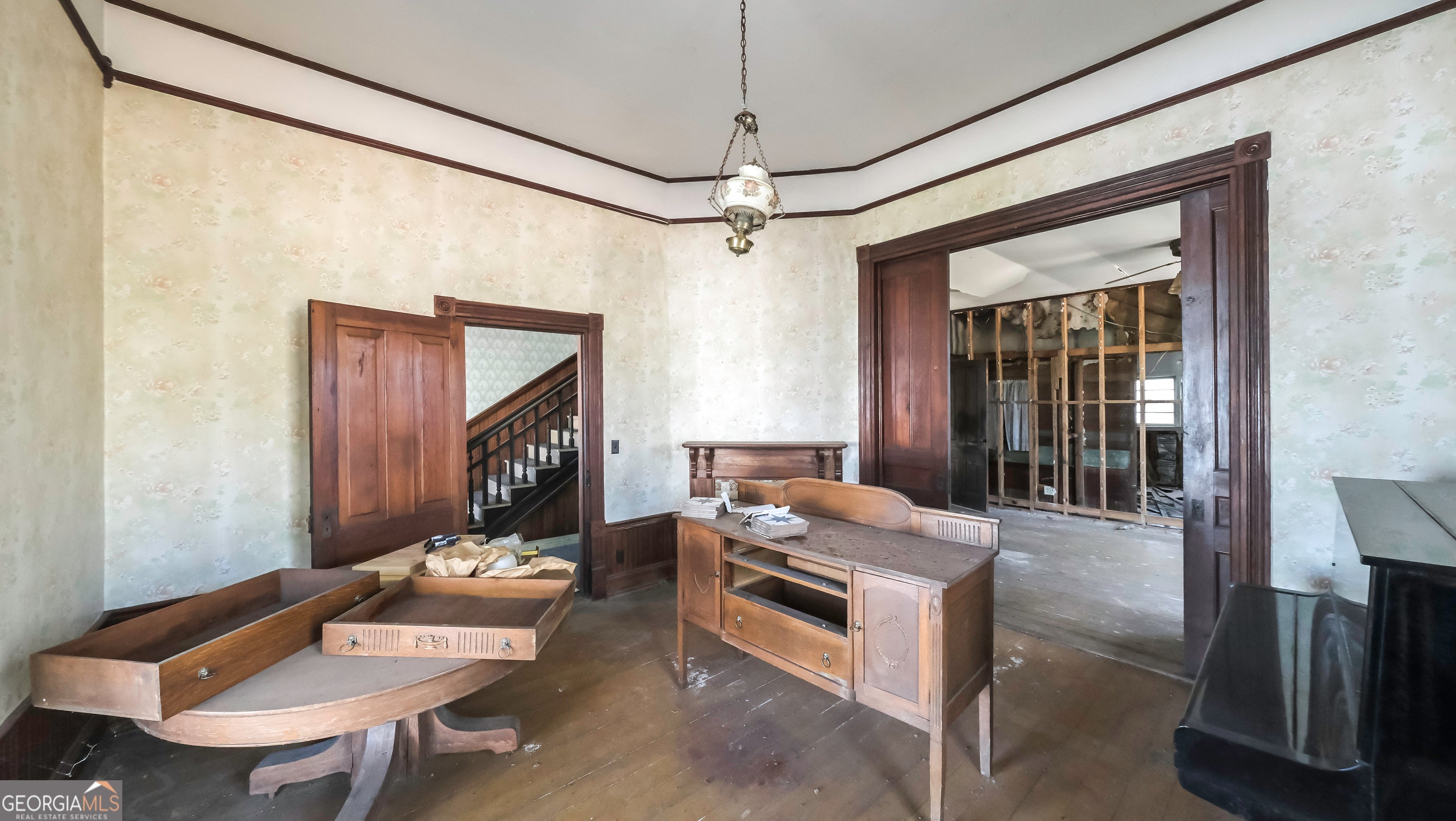 This lovely historical home was built by William C. Adamson, the man that Adamson Square was named after. The Folk Victorian style architecture includes classic design elements such as a hipped roof with a central cross gable; decorative bargeboard trim; a two-story front porch; ornate spindlework columns and spandrels; and a porch that stretches across the front facade. This home requires a full renovation. Use caution when showing.