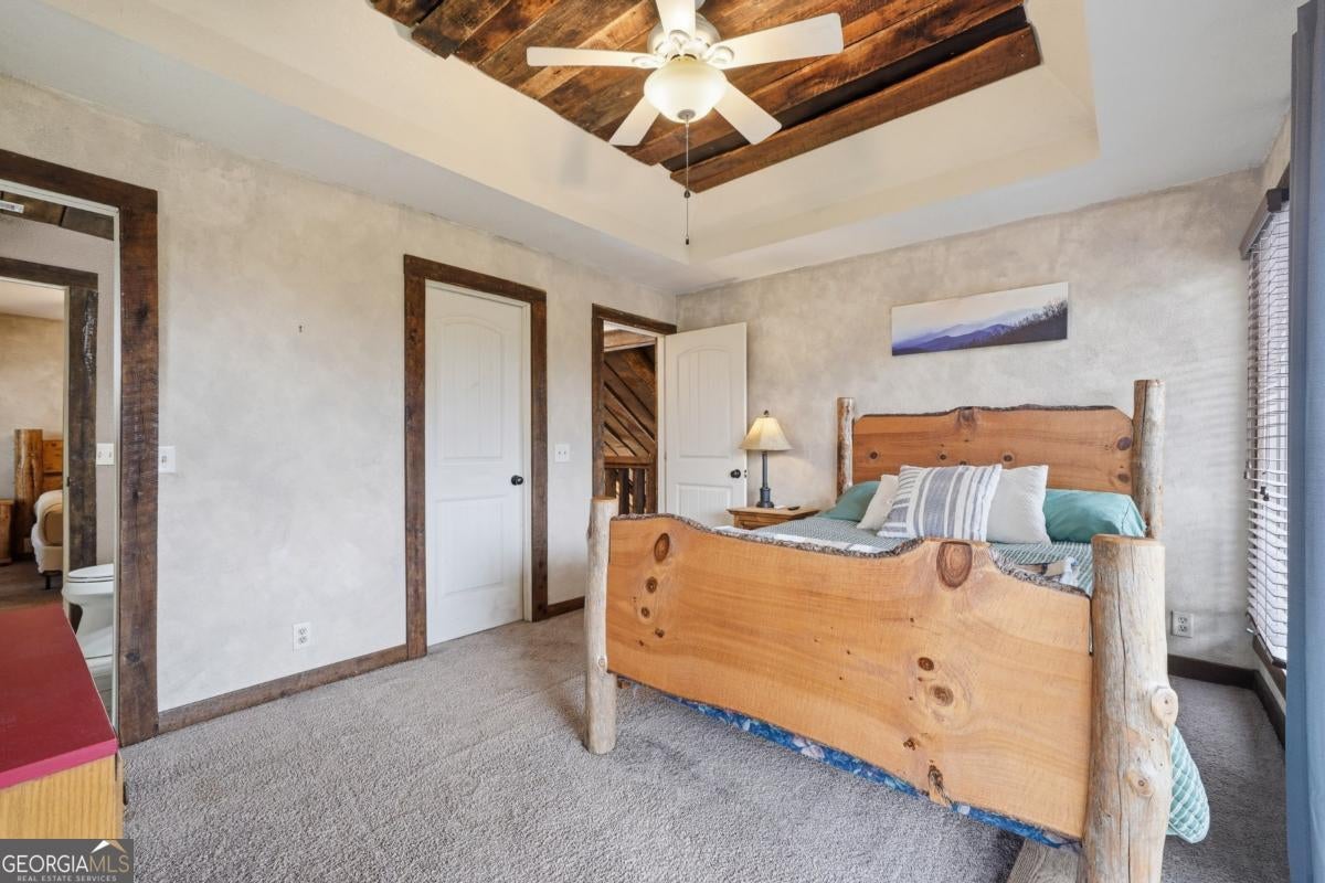Escape to the mountains and experience the perfect blend of rustic charm and comfort in this beautiful FURNISHED cabin with LONG RANGE MOUNTAIN VIEWS that truly take your breath away. Thoughtfully designed and full of character, this 3-bedroom, 2-bathroom cabin with a large bonus room offers plenty of space for family, guests, or additional sleeping areas. From the moment you arrive, you'll appreciate the convenience of all paved roads and a location that feels private while still being less than 2 miles from grocery stores and local restaurants. The home welcomes you with vaulted ceilings, large windows, and an abundance of natural light that highlight the warm wood tones and rustic mountain feel throughout. The main level features the primary bedroom and full bathroom, providing easy one-level living. Upstairs you'll find two bedrooms connected by a Jack-and-Jill bathroom, with one bedroom offering its own private deck to enjoy the peaceful mountain scenery.vOutdoor living is where this property truly shines. Expansive wraparound porches and multiple deck spaces create the perfect setting for entertaining or simply relaxing while soaking in the stunning long-range views. Gather friends and family under the private pergola with a fire, an ideal spot for cool mountain evenings and unforgettable memories. The terrace level offers endless possibilities, whether you envision extra sleeping space, a game room, or a second living area, all with access to another large deck and a beautiful yard perfect for enjoying the outdoors. Whether you're looking for a full-time mountain home, vacation getaway, or investment property, this cabin delivers the space, charm, and incredible views that make mountain living so special.