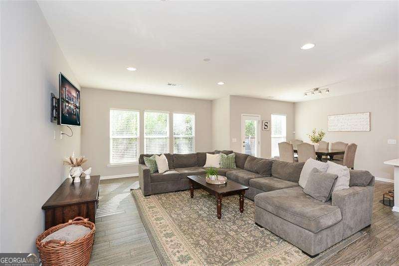 Move-In-Ready 5BR/4BA walkable to Sequoyah HS District + Large Loft + Open floorplan + Bedroom & Full Bath on Main level. Welcome to this stunning 5 bedroom - 4 bath home in the heart of the Hickory Flat area of Sequoyah HS District. Featuring a main-level bedroom and full bath, plus a spacious upstairs loft area perfect for work or play. This lovingly maintained home offers both comfort and flexibility for large households, guests, or multigenerational living. The open-concept main living area keeps everyone connected, making it ideal for entertaining and everyday living. Buyers will love the functionality of the mudroom/dropzone and workspace right off the garage. Step outside to the flat, private backyard. The spacious primary suite is a true retreat. When building, the sellers added a private sitting area off the bedroom. Upstairs, buyers will find three additional bedrooms and a generous loft. This versatile loft space can easily serve as a home office, playroom, fitness area, or additional family room. Tons of closet space throughout the home! EV charger outlet installed in garage. All of the flex spaces in this home make it perfect for work-from-home buyers. Conveniently located within walking distance to Sequoyah High School and just minutes from restaurants, shopping, and the library, this home offers an unbeatable combination of location, space, and charm. Truly move-in ready and a perfect 10-don't miss it!