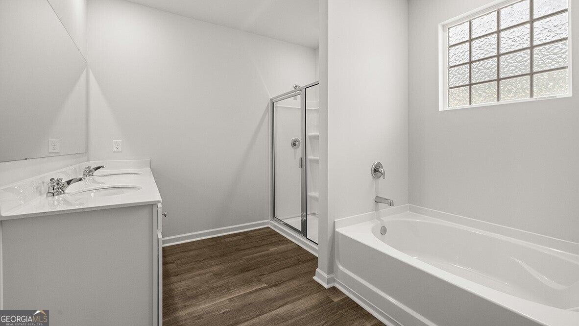 Enjoy the Aria, an open living in this ranch style home on lot 281 at 11 Majestic Oak Circle in Dallas, GA at the Lost Creek community located in popular North Paulding school district. The Aria floor plan features 3 bedrooms and 2 bathrooms in 1618 square feet along with a 2-car garage with shake and stack-stone water table. The front hallway leads you into the open-concept kitchen and living room. The kitchen boasts white cabinets, white granite, white tiled backsplash and stainless-steel appliances. Step from the kitchen into the cozy living room--perfect for gathering with family and friends. The primary suite with en suite bathroom features a separate walk-in shower, soaking tub, water closet and dual vanity. On the other side of the home, the additional 3 bedrooms and easy access to the 2nd bathroom. Members of the Lost Creek community will enjoy the amenities located at the Edenwood community right next door. Including a triple pool water park, junior Olympic pool, zero entry pool for children, tennis courts, a playground and a clubhouse. Come out today to Lost Creek to view your new home at 11 Majestic Oak Circle.