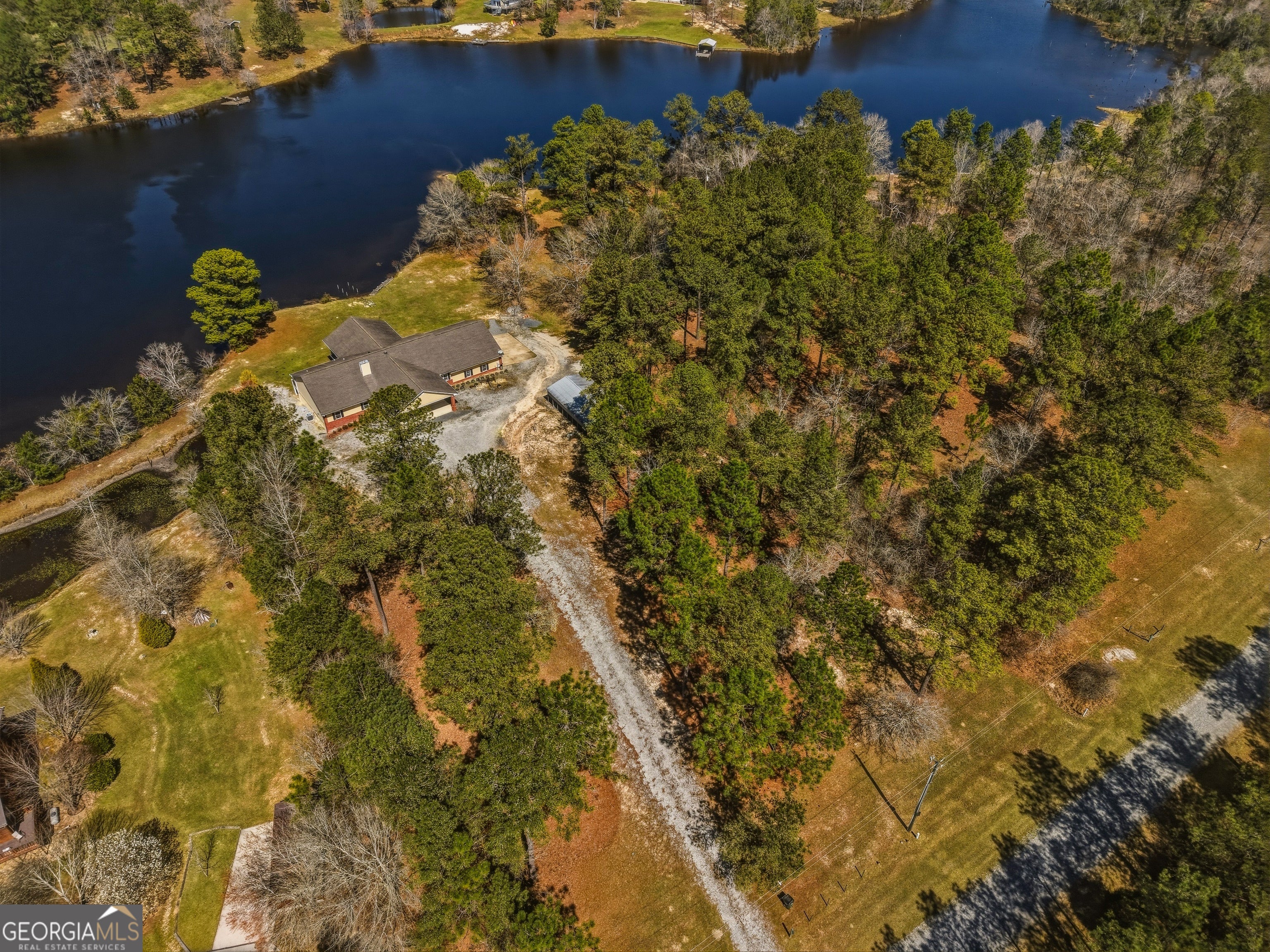 Beautiful Lakefront property in gated community of Lambert Lake in north Marion County, ONLY 25 min to Midland! Turning into the 3+ ac property you are welcomed by towering pines on each side of the drive & a lakeview which leads to a 700 sq ft drive through front portico for easy access to the large home, which features a great entertaining area with a chef's kitchen centering the space, including custom cabinets, granite tops & Kitchen Aid appliances, spaces for 2 refrigerators, a custom wine bar & cooler, a wood stove & tucked nearby is an oversized walk in pantry area. Floor to ceiling windows flood light into the space & provide jaw dropping water views from most all the room. French doors lead out onto a 864 sq ft covered porch, built for entertaining or just enjoying a quiet meal lakeside! The primary suite features a luxurious bath space w/ whirlpool tub, separate shower & the same amazing water views w/ access to the waterfront deck. The primary suite also features 2 walk in dressing closets. 2 additional guest rooms & a bath, along w/ a large craft/gun room make up the heated & cooled space. The 4 car oversized garage/workshop area is attached to the northside of home & a 864 sq ft basement/safe room allows for additional storage of equipment. A detached 12 ft carport is also on the property along with a well. The 200 ft of waterfront provides access for enjoying kayaks, swimming or fishing in the clear spring fed waters of Lambert Lake. HOA is only $200 per yr & includes beach area w/ covered pavilion, dock & grassy area for members enjoyment! Enjoy complete serenity in this gated community lakefront in rural Marion County, yet only 25 min to Midland area shopping to the NW & 25min to Ft Benning's Harmony Ch Gate to the SW. Buena Vista is approx 15 min to the SE, with a quaint downtown area including shopping, restaurants, art sites, gym, grocery, schools, banks, doctors & veterinary clinic! 5 mins to the 8100ac Hilliard Wildlife Mgt Area on GA Hwy 352/355, these areas provide ample opportunities for hunting, fishing, hiking and enjoying the vast spaces of the WMA lands in your backyard. Call today to schedule and appt to tour this amazing lakefront property where you can swim, fish, kayak, entertain or simply relax and enjoy the solitude of this magical place called Lambert Lake, where the waters are clear, the pines are tall and the sunsets are stunning!