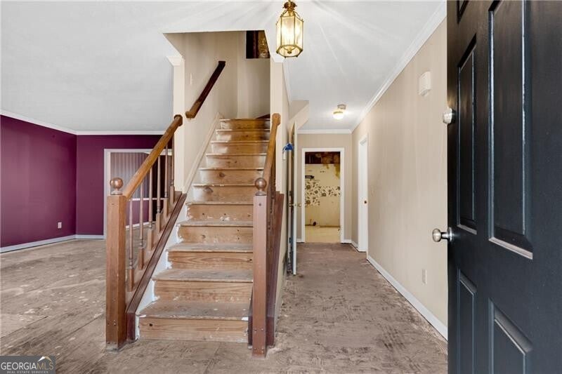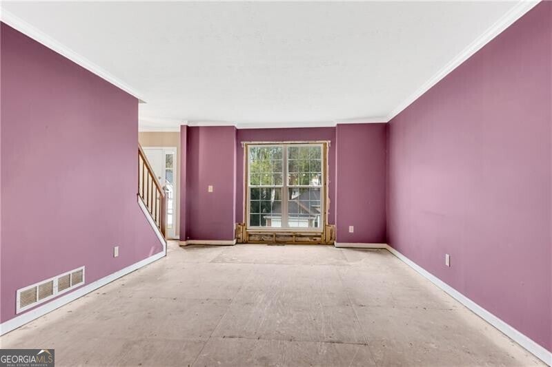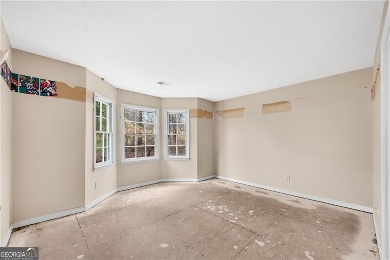 BRING YOUR INVESTORS & your imagination! This beautiful stucco & stone Centex Homes resale has been updated with modern exterior colors. Recently resodded yard and NEW rear paver patio! The inside has been cleared out and is a blank slate to paint with your personal taste. Front covered entry opens to the foyer leading to the open formal living and dining rooms ideal for entertaining. The future kitchen/breakfast is open to the family room w/stacked stone fireplace. The laundry leads to the garage with NEW garage door and NEW garage door opener. The primary suite w/tray ceiling has a walk-in closet, NEW cabinets in bath just need tops, reframed super shower and newly framed private water closet. Three spacious secondary bedrooms share a hall bath. Daylight unfinished terrace level where you will find a brand NEW hot water heater and NEW HVAC system. We have started all the hard work for you, save on demo costs! Swim/Tennis/Clubhouse community with easy access to I-85 and 316.