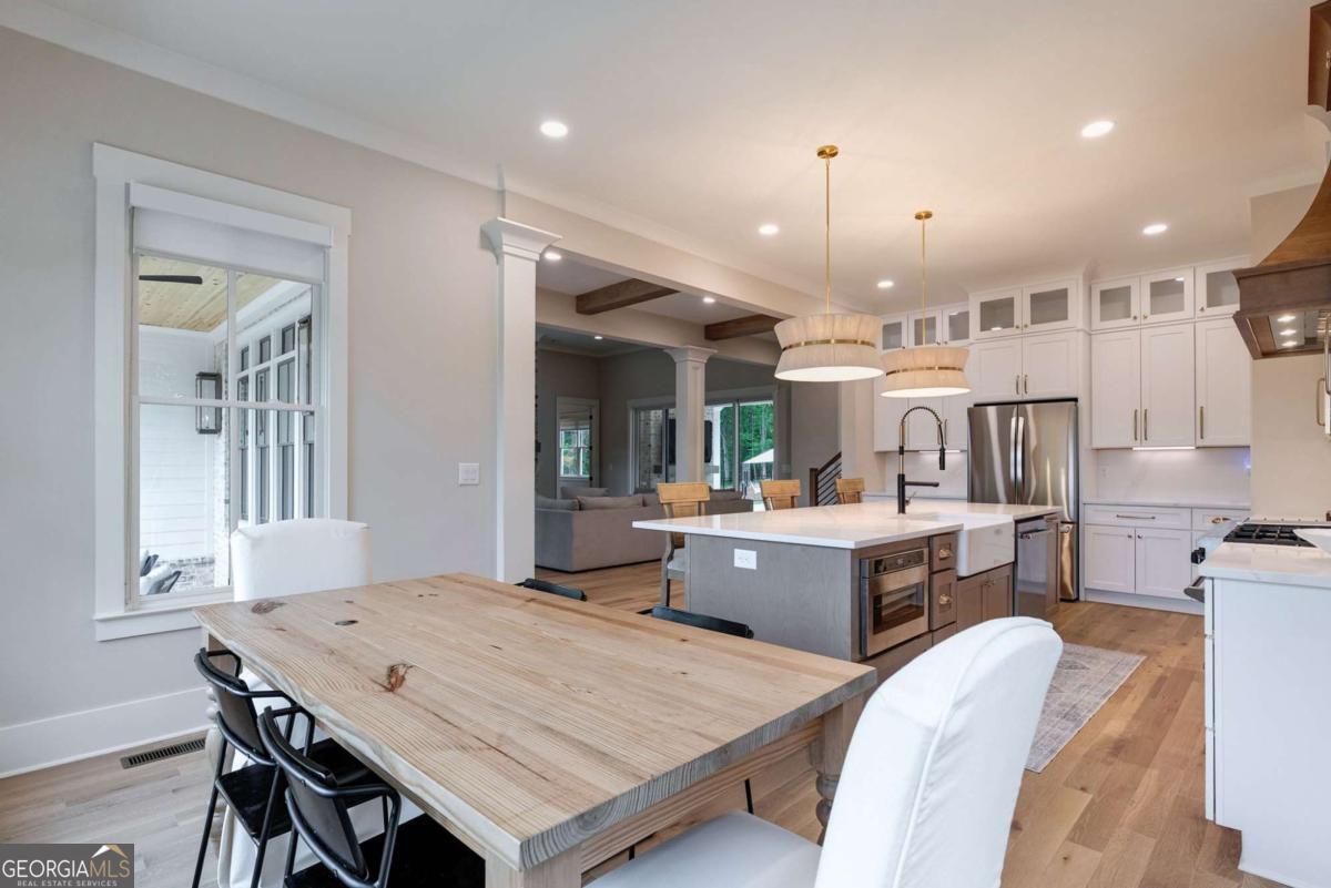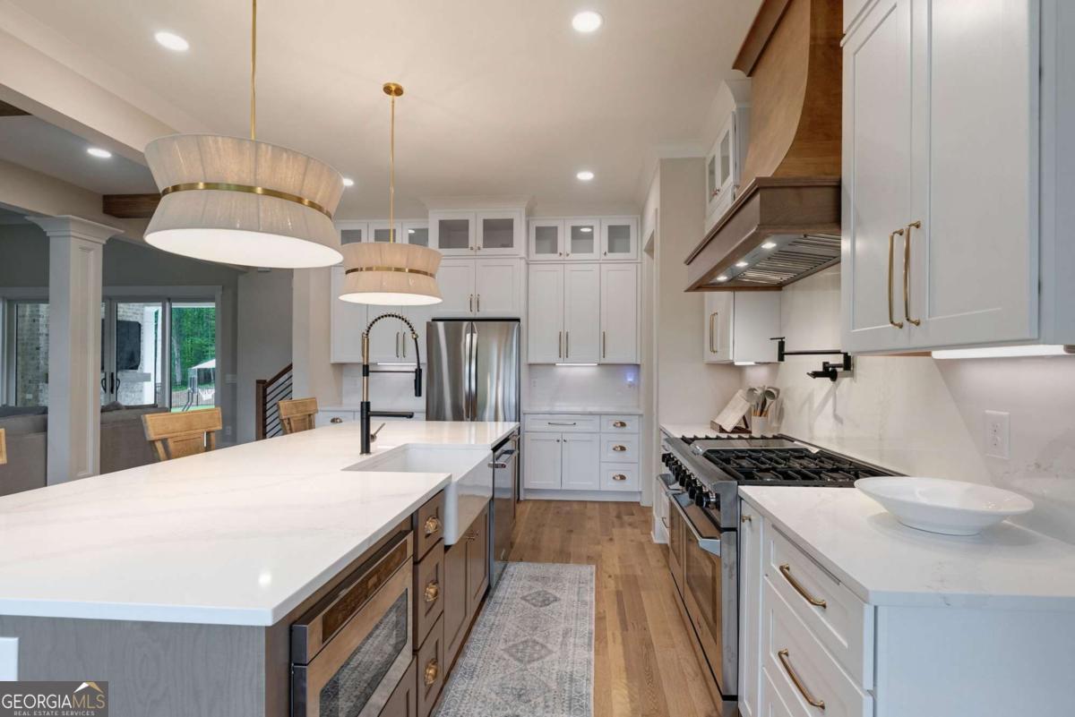 Welcome to your custom dream home! 167 Alcovy Springs Dr in Monroe Georgia is a beautiful new construction home built in 2025. With 5 bedrooms 4 1/2 baths, a loft, bonus room, three car garage, 1,800 Sqft unfinished basement and a perfectly placed pool and spa in the backyard with covered porch and outdoor living spaces. This home is a perfect blend of comfort, style, and functionality! This beautifully upgraded residence features a unique modern layout, including a rear glass door in the third garage bay so it can open on either end, enhancing the open-concept design. Enjoy the expansive layout, which includes enlarged secondary bedrooms, making it ideal for families or guests. Step outside to the large front porch overlooking beautiful, mature foliage, or unwind and relax in the back of the home in your private pool and luxurious spa, which boasts an amazing view of the sunset in the evening perfect for entertaining or peaceful relaxation. Inside, revel in the charm of premium hardwood flooring (Mirage) that flows throughout the main living spaces, including all bedrooms, and pairs beautifully with the modern quartz backsplash, aligning the gourmet kitchen. The butlers pantry offers additional storage, prep space, functionality with a built-in filtered water dispenser, and aesthetic appeal. Stay cozy and serene with spray foam insulation and added insulation between floors for enhanced soundproofing. Outdoor living thrives here with beautifully installed gas lanterns that cast an inviting glow, complemented by a secure fence that includes a convenient dog enclosure for your furry friends. The back porch is equipped with natural gas and a fireplace, adding to your outdoor entertaining options. Enjoy the convenience of smart technology throughout the home, including Starlink wiring for high-speed internet access. The professional TV bracket installation is ready for your entertainment needs. The master suite is an oasis with a vaulted ceiling, further enhancing the rooms spaciousness. Additionally, the bonus room and loft upstairs offer versatile options for recreation or work. Dont miss out on this exceptional home that combines modern amenities with timeless appeal. Schedule your private tour today and discover the perfect setting for your next chapter!
