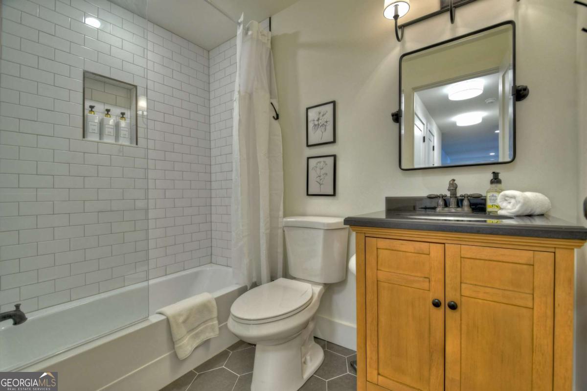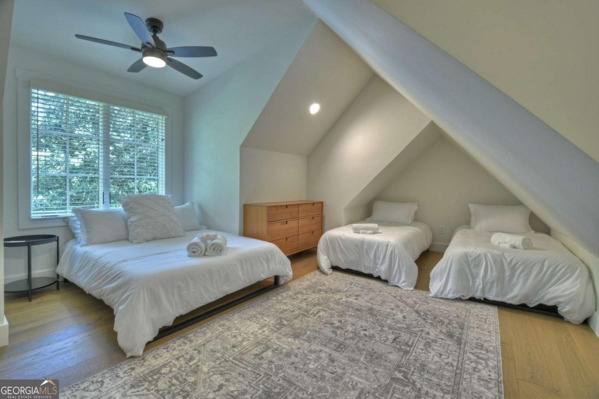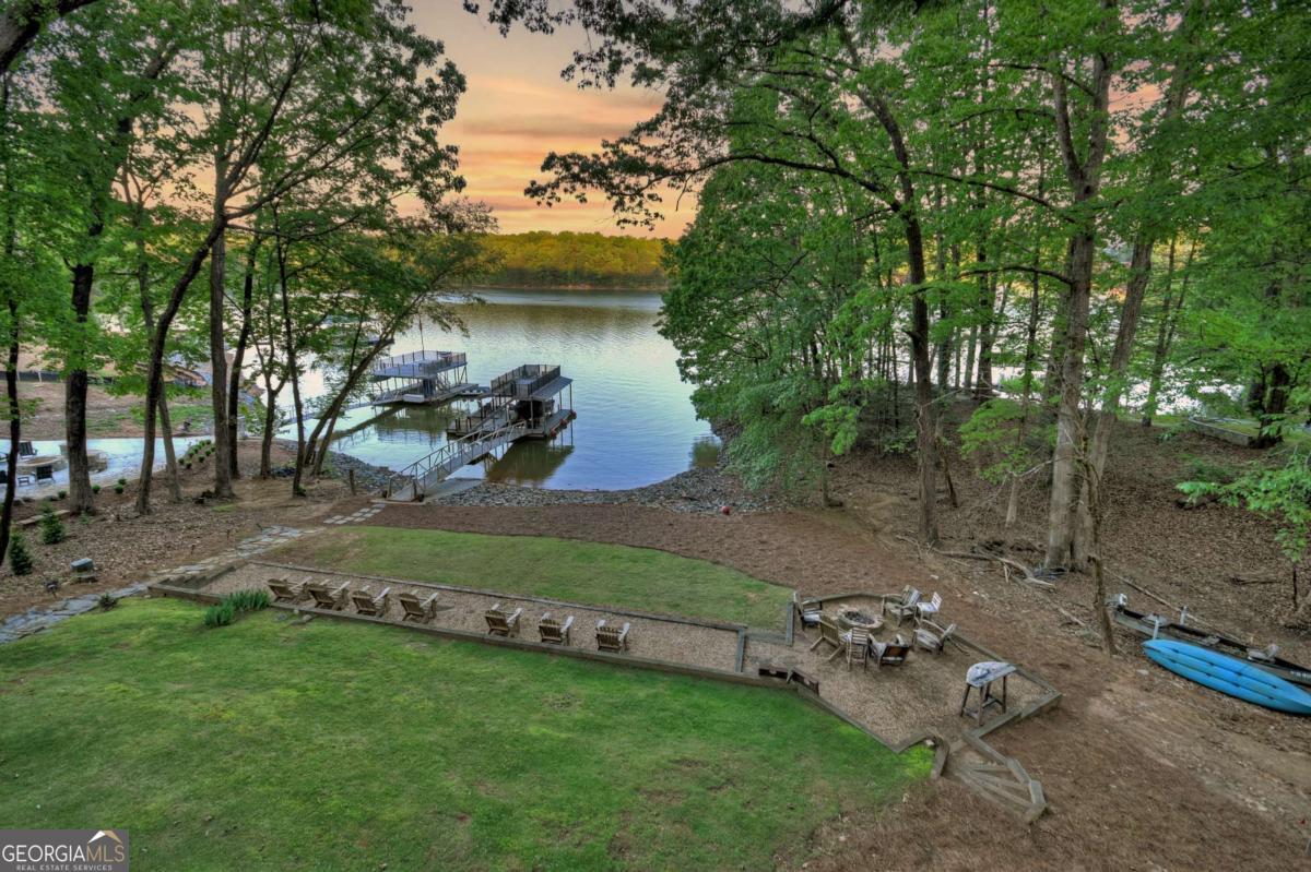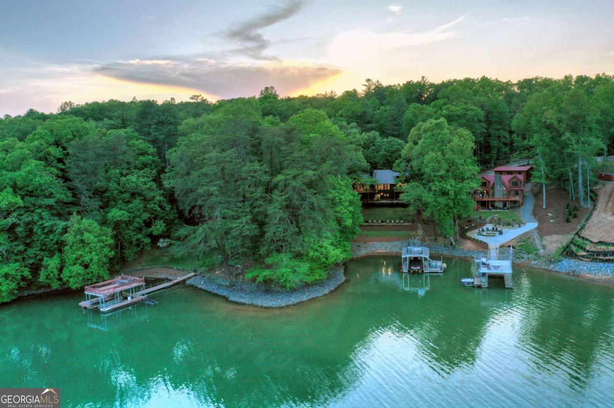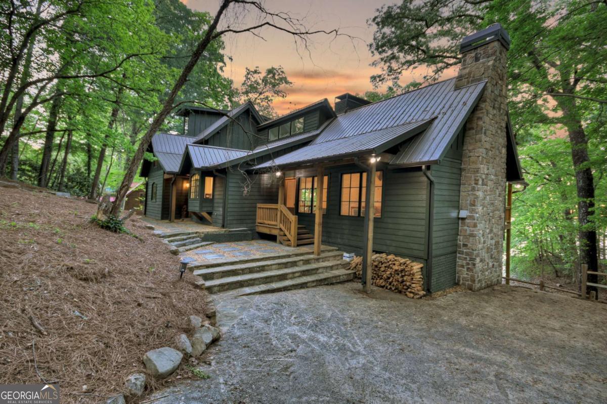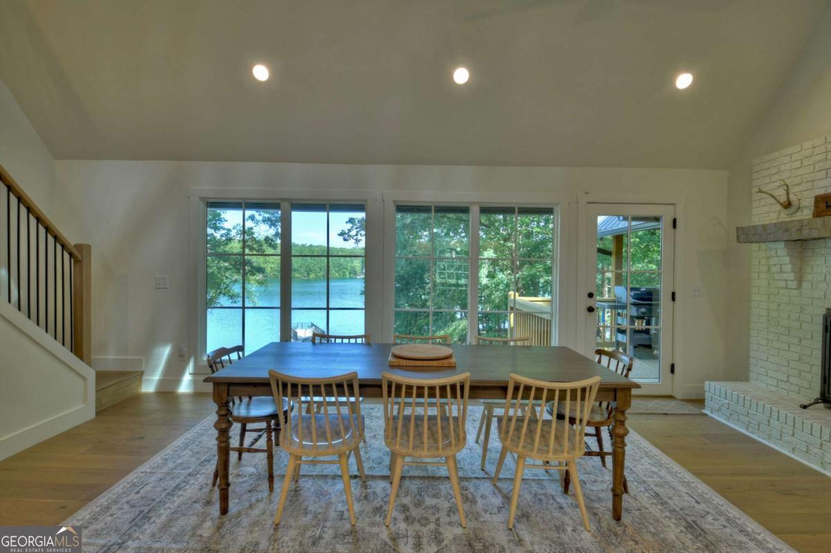 Lakefront living close to town on beautiful Lake Blue Ridge! This fully remodeled 4BR/3BA home is being sold fully furnished and turn-key. Currently in a successful rental program, it also makes the perfect second home lake retreat. Everything is brand new-roof, plumbing, electrical, HVAC, appliances, and finishes. The open-concept main level features a granite kitchen with stainless steel appliances, spacious dining area, and living room with vaulted ceilings, wood beams, and a real wood-burning fireplace. The main-level primary suite includes an en-suite bath and private lake views. Upstairs offers a guest bedroom, full bath, and cozy kid's nook. A spiral staircase leads to a large third-floor bedroom with three beds. The terrace level features a second living area, full bath, and another bedroom with direct access to the lake. Outdoor living includes a partially covered main-level deck and a spacious terrace-level patio, ideal for relaxing or entertaining. The gentle slope leads to a fire pit area and one-slip dock with two jet ski ports and an upper-level sun deck. Lake frontage was recently dredged, adding 9-10 feet of depth under the dock for extended seasonal use. Prime location just minutes to downtown Blue Ridge, beside Lakewood boat ramp, and close to Morganton Point. Great rental history, perfect second home potential, and a move-in ready lakefront lifestyle-this property checks every box !