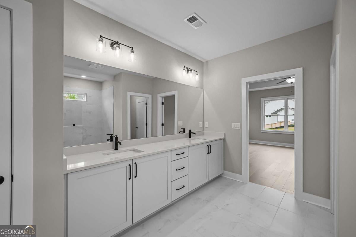 Move In Ready Home with exceptional incentives available at Ellis in West Cobb! Imagine stepping into your dream home, perfectly designed for modern living. This stunning residence is move-in ready, featuring an impressive two-story family room that creates an inviting atmosphere, perfect for gatherings or quiet family nights. The chef's kitchen is a culinary enthusiast's paradise, complete with a butler's pantry that provides ample storage and prep space, making entertaining a breeze. The indoor-outdoor living experience is enhanced by sliding doors that lead to a beautifully landscaped, fenced-in yard, ideal for outdoor activities or peaceful relaxation. On the main level, you'll find a guest bedroom and bath, providing privacy for visitors or flexibility for a home office. Head upstairs to discover a family retreat that includes a Jack and Jill bathroom, perfectly accommodating family and guests alike. The expansive owner's suite is a true sanctuary, featuring a luxurious super shower that promises a spa-like experience every day. Beyond the home, the community offers an array of amenities to enrich your lifestyle. Enjoy friendly matches at the pickleball and tennis courts, let the kids play at the playground, or cool off in the inviting pool. The clubhouse serves as a social hub; all while being conveniently located near shops and dining options. This home not only meets your needs but enhances your lifestyle, making it a perfect choice for anyone looking to settle into a vibrant community. Would you like to explore more about this property or perhaps schedule a visit?