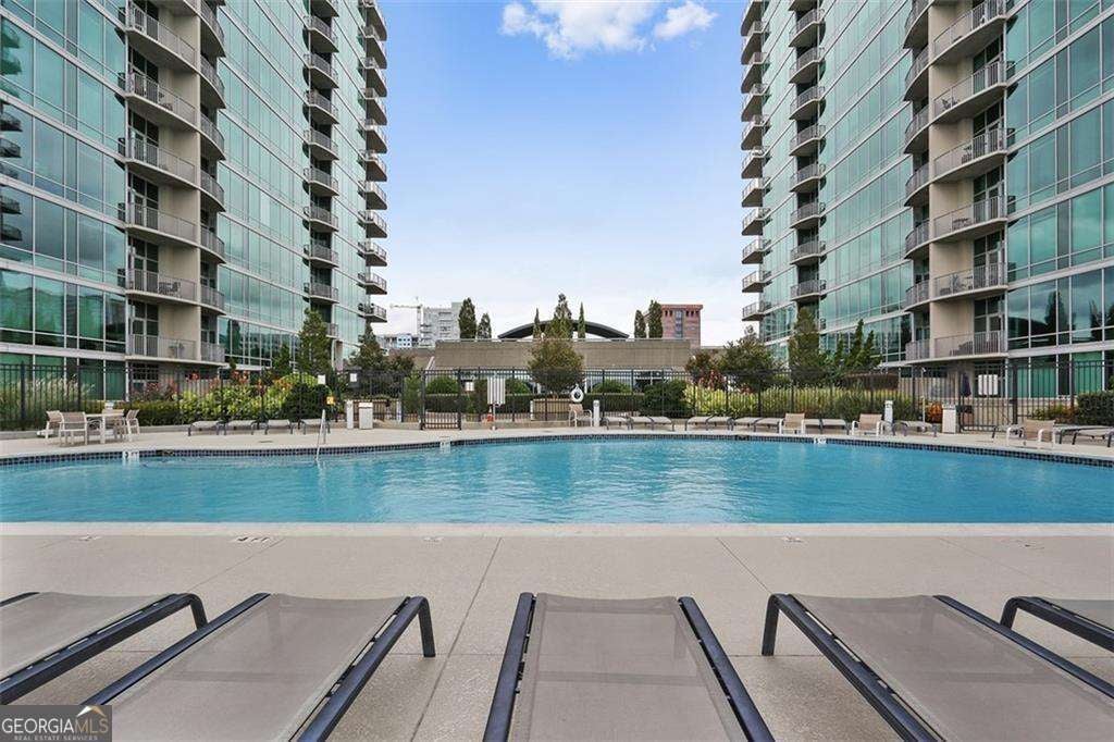 SELLER MOTIVATED. Experience the best of vibrant Midtown living in this sophisticated, modern 2-bedroom condo perched in one of Atlanta's most desirable high-rise communities, Metropolis. With 12 ft floor-to-ceiling windows and a private balcony, this unit gets plenty of natural light and offers stunning skyline views of Piedmont Park that bring the city to your doorstep. An open floorplan complement the custom tile throughout and stylish modern finishes that define urban elegance. The sleek kitchen features contemporary cabinetry, stainless steel appliances, and a breakfast bar. The primary bedroom offers a quiet retreat with a walk-in closet designed for both form and function. A generous hall bathroom features modern fixtures and thoughtful design. Utilize the second bedroom as an office or secondary, guest bedroom. The amenities are unmatched here! Between the convenience of in-unit laundry and included covered parking spot/s, this full-service building offers a curated suite of resort-style amenities to elevate daily living. Enjoy 24-hour concierge service, a saltwater pool with sun deck, a state-of-the-art fitness center, multiple grilling stations, fireside lounges, herb garden, a dog walk, EV charging stations, and a chic clubroom complete with a catering kitchen and coffee bar. Go downstairs to enjoy Midtown's world-class dining, boutique shopping, and cultural landmarks like the Fox Theatre, High Museum of Art, and Georgia Tech, Piedmont Park, the Beltline, Whole Foods, and MARTA- all easily accessible without the use of a car. FHA approved building! Fully-furnished option!