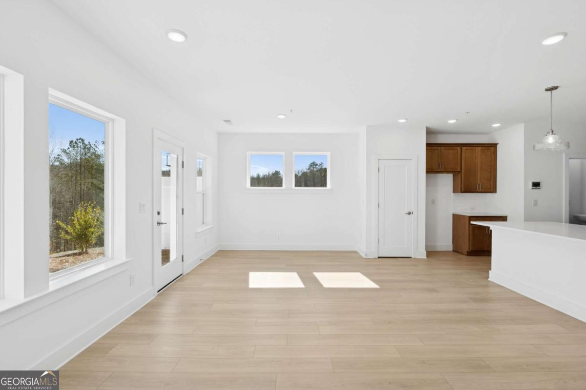 Agents, bring your buyers and investors. We are offering great incentives this month, including payment of all buyers' closing costs and one year of HOA dues. Additional incentives may also be available depending on the unit. For more details or to discuss available options, please contact me or send your buyers. Welcome home! Beautiful end-unit townhome in Grandview Terrace offering added privacy, extra natural light, and a peaceful setting. This 3-bedroom, 2.5-bath home features additional windows in the dining area, owner's retreat, and upstairs hallway, creating a bright and airy feel throughout. With no home directly on one side, you can enjoy more openness, more privacy, and fewer shared walls. The open-concept layout is perfect for both everyday living and entertaining, allowing you to cook, wash dishes, and still enjoy the beautiful outdoor views. Surrounded by lovely trees, this home feels private, quiet, soothing, and comfortable. The Harmony Collection adds a warm and stylish touch with cashew-colored soft-close cabinetry, matte black finishes, beautiful white kitchen back splash, and very nice LVP flooring that enhances the overall design. This home offers the perfect blend of comfort, beauty, and functionality in a floor plan buyer truly love. The oversized Owner's Retreat is located at the back of the home, offering unique, nature-filled views and enhanced privacy. Two additional rooms are ideal for a family, home office, or exercise space. A conveniently placed utility room on the second floor adds everyday functionality. With a 2-car garage, guest parking nearby, and included lawn care, this community offers low-maintenance living. Amenities include a swimming pool, open-air cabana, gated community, and community mail kiosk. Grandview Terrace is minutes from downtown Canton boutiques, coffee shops, dining, and grocery options. It is also close to Northside Hospital Cherokee and just a short drive to Lake Allatoona with park and boat launch access. With quick access to I-575 and major corridors, commuting is simple. Served by highly regarded Cherokee County schools and near the future Cherokee High School site, these townhomes combine modern finishes with energy-efficient David Weekley quality for lasting comfort and value. Contact the David Weekley Homes at Grandview Terrace Team to build your future with this beautiful new construction home for sale in Canton, GA.