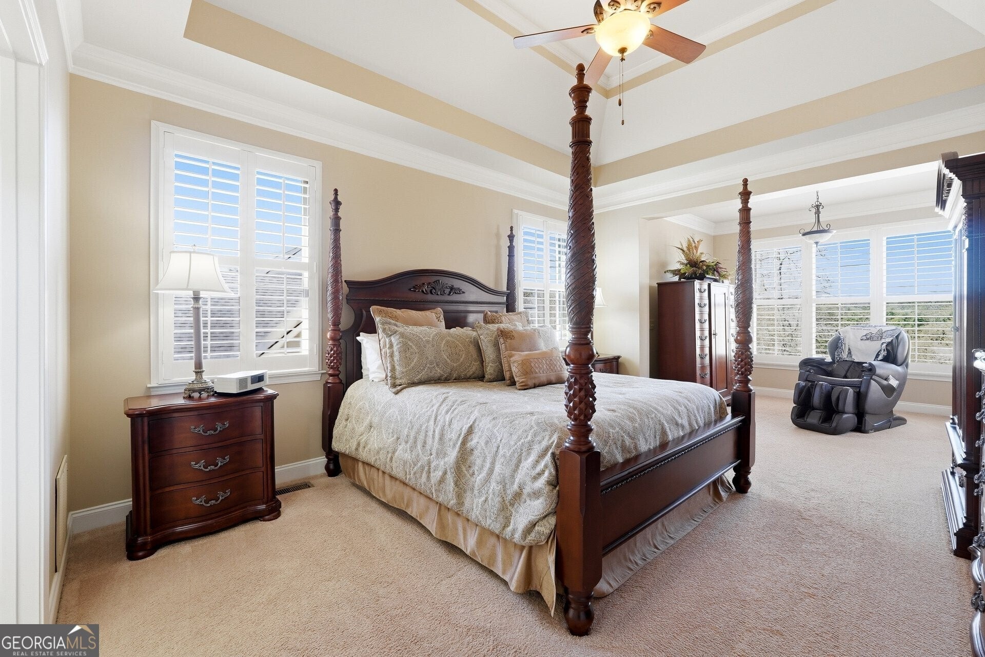 - Interior FeaturesBookcases, Double Vanity, Master On Main Level, Separate Shower, Soaking Tub, Tray Ceiling(s)