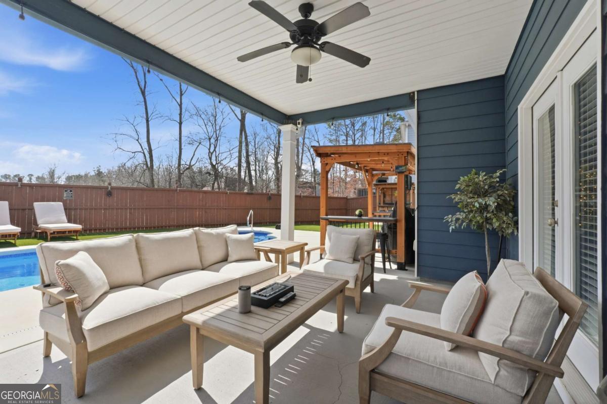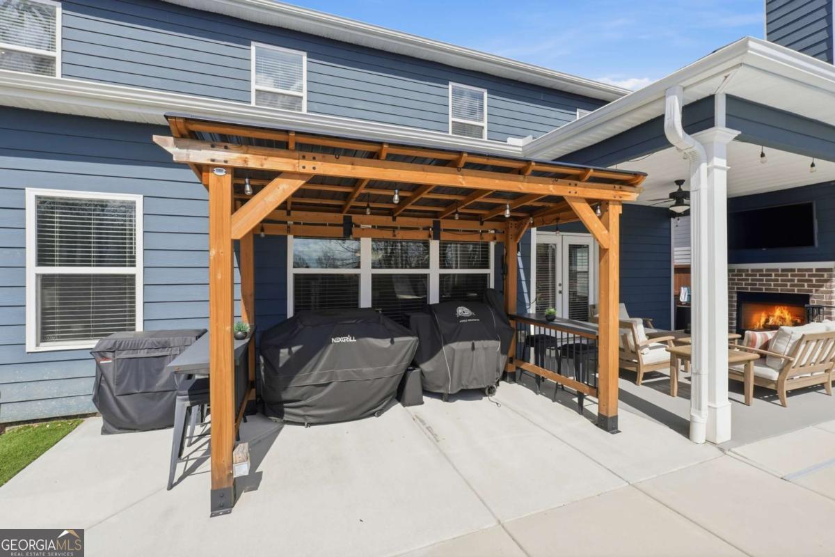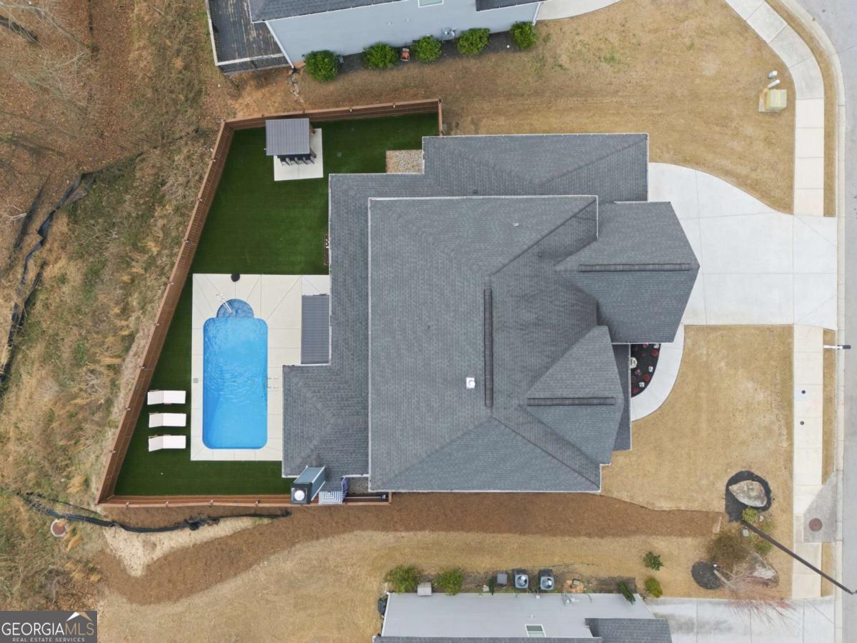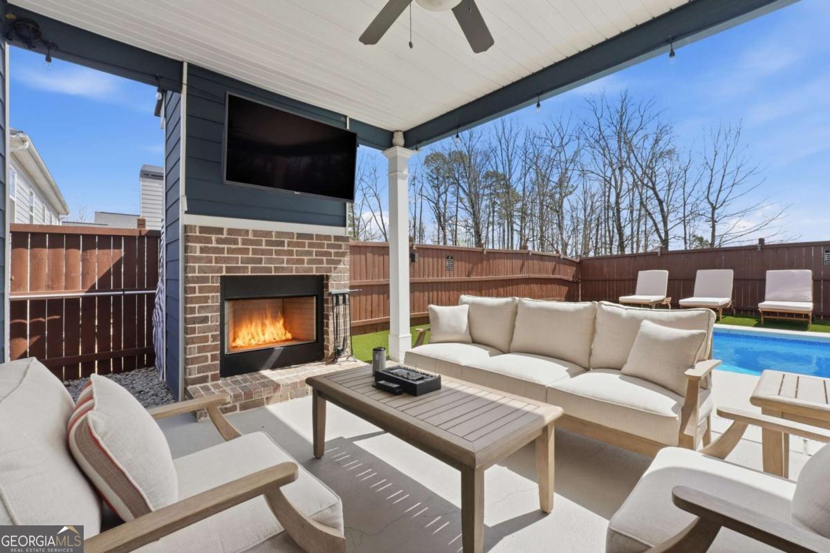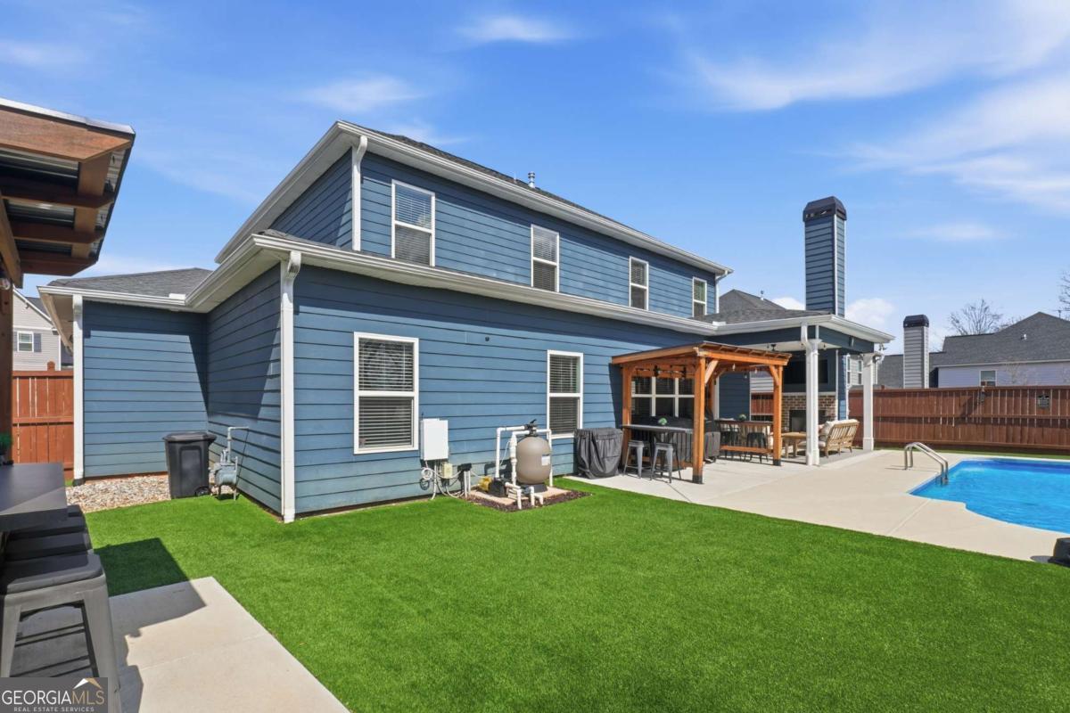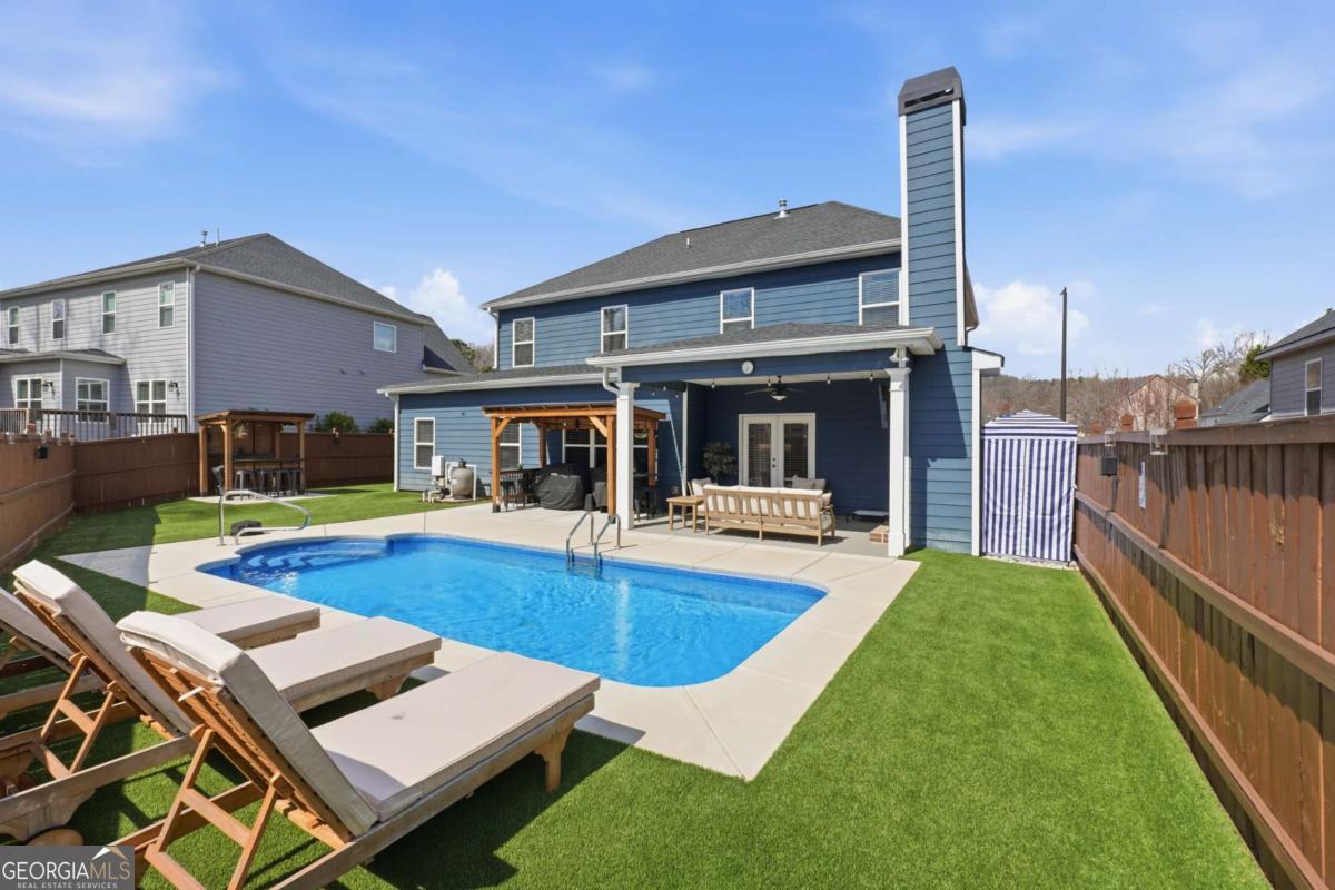 Luxury, flexibility, and backyard goals - all in one. Welcome to this stunning 5-bedroom, 3.5-bath home in Mableton featuring two primary suites (main level + upstairs) and two laundry rooms - a rare layout designed for comfort and convenience. Step inside to an open-concept design with upgraded LVP flooring, coffered ceilings, and a showstopping gourmet kitchen featuring an oversized island, quartz countertops, custom cabinetry, Samsung double ovens (convertible to three), and under-cabinet lighting. The living space is anchored by a cozy gas fireplace with custom shiplap detail - perfect for everyday living and entertaining. Upstairs, the primary suite has been fully customized with a spa-style frameless shower equipped with dual shower heads plus a rainfall shower head, and an expansive walk-in closet system created by combining multiple rooms, plus a bonus flex space currently used as a gym. But the real wow factor? Your private backyard oasis. Enjoy an in-ground pool surrounded by turf, extended concrete for lounging, a gazebo and bar area, surround sound, and a wood-burning outdoor fireplace upgraded to brick. No detail was overlooked in creating a space that seamlessly blends function with elevated design. The home is equipped with smart technology allowing remote access to the garage, doors, and security system, along with a Bluetooth-controlled sprinkler system, dual HVAC systems, two water heaters, and an oversized 3-car garage - designed to support modern living. Located just minutes from the new Chick-Fil-A, shopping, dining, and attractions like Six Flags Over Georgia - this home offers a lifestyle that's hard to find. This isn't just a home - it's an experience.