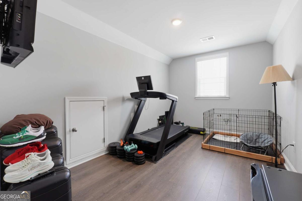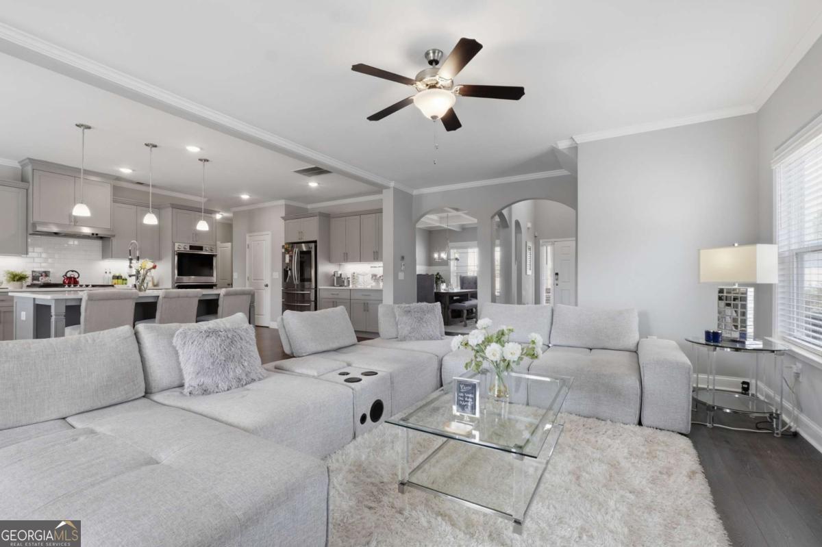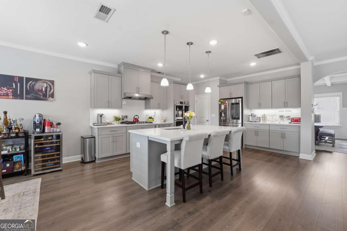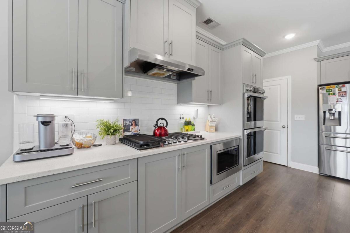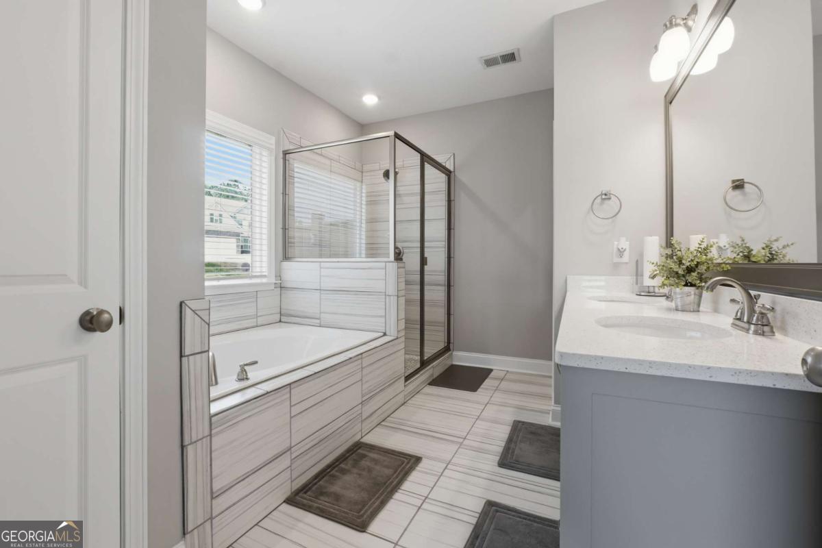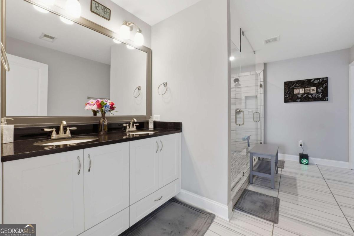 Luxury, flexibility, and backyard goals - all in one. Welcome to this stunning 5-bedroom, 3.5-bath home in Mableton featuring two primary suites (main level + upstairs) and two laundry rooms - a rare layout designed for comfort and convenience. Step inside to an open-concept design with upgraded LVP flooring, coffered ceilings, and a showstopping gourmet kitchen featuring an oversized island, quartz countertops, custom cabinetry, Samsung double ovens (convertible to three), and under-cabinet lighting. The living space is anchored by a cozy gas fireplace with custom shiplap detail - perfect for everyday living and entertaining. Upstairs, the primary suite has been fully customized with a spa-style frameless shower equipped with dual shower heads plus a rainfall shower head, and an expansive walk-in closet system created by combining multiple rooms, plus a bonus flex space currently used as a gym. But the real wow factor? Your private backyard oasis. Enjoy an in-ground pool surrounded by turf, extended concrete for lounging, a gazebo and bar area, surround sound, and a wood-burning outdoor fireplace upgraded to brick. No detail was overlooked in creating a space that seamlessly blends function with elevated design. The home is equipped with smart technology allowing remote access to the garage, doors, and security system, along with a Bluetooth-controlled sprinkler system, dual HVAC systems, two water heaters, and an oversized 3-car garage - designed to support modern living. Located just minutes from the new Chick-Fil-A, shopping, dining, and attractions like Six Flags Over Georgia - this home offers a lifestyle that's hard to find. This isn't just a home - it's an experience.