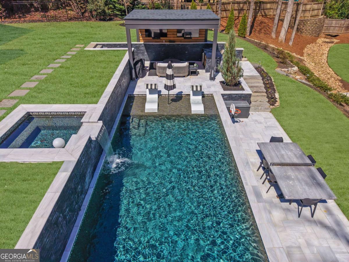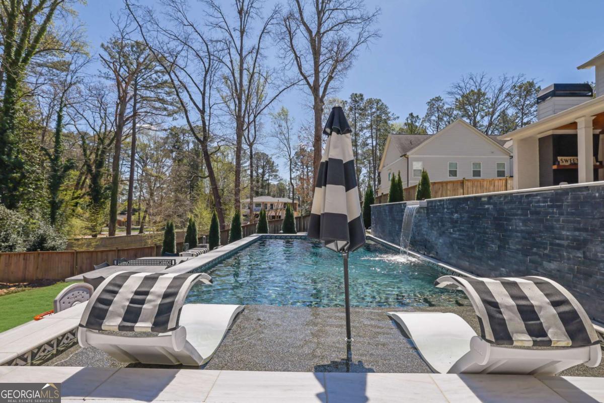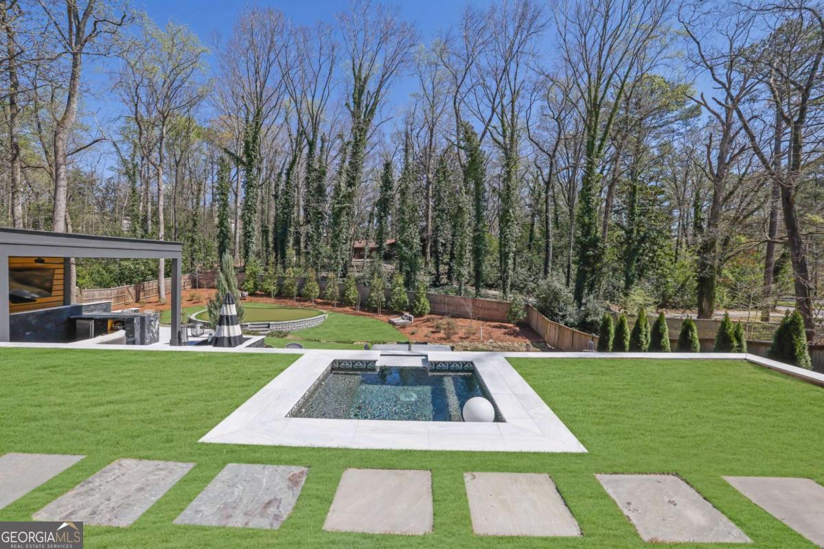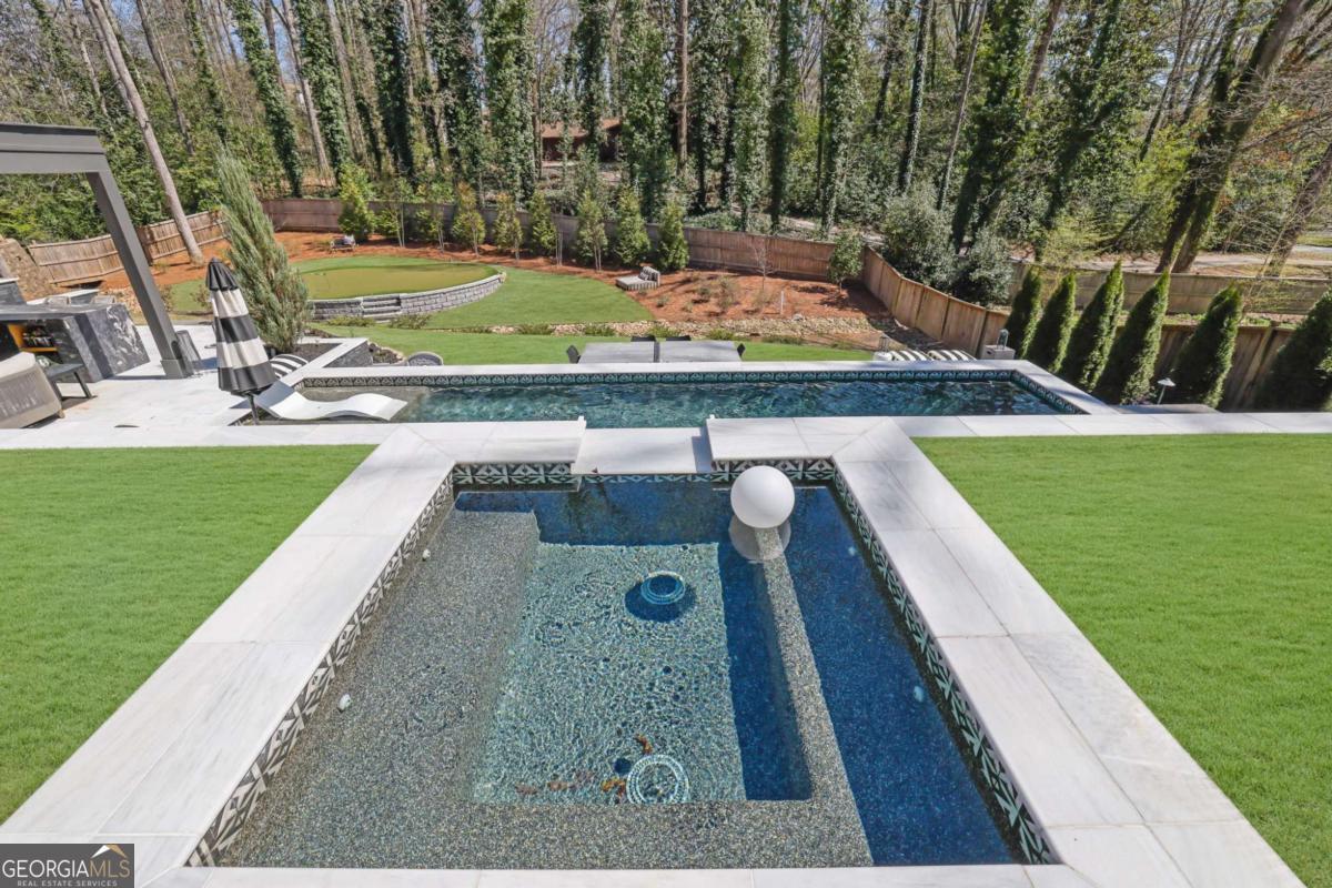 Nestled in the heart of Sandy Springs and zoned for the highly sought after Heards Ferry Elementary School, this exceptional residence offers the perfect blend of luxury, functionality, and outdoor living. Situated on over half an acre, this beautifully designed 6 bedroom, 4 bathroom home with a dedicated private office spans, 3927 square feet and features thoughtfully curated upgrades throughout. Step inside to discover gorgeous wood floors throughout the home, creating a warm and seamless flow across the living spaces. The open and inviting floor plan is designed for both everyday living and entertaining. At the heart of the home, the chef's kitchen features stainless steel appliances, quartz countertops, and a custom pantry with abundant storage, providing both beauty and functionality. A butler's pantry connects the kitchen to a separate formal dining room, creating an elegant transition for gatherings. The main level also includes a private office, ideal for working from home along with an additional bedroom on the main level that offers the perfect space for guests. Upstairs, you will find the spacious primary suite, featuring a spa inspired bathroom and his and hers custom closets designed with both style and practicality in mind. The second floor also offers four additional generously sized bedrooms, and two additional bathrooms, one being a jack and jill bathroom. Throughout the home, custom closets, a thoughtfully designed laundry room, and a variety of smart home features add convenience and modern functionality. The property also includes a 240 volt electric vehicle charging station, making it easy to support today's electric vehicle lifestyle. Designed for both relaxation and entertaining, the backyard is truly extraordinary. The fully fenced yard offers a private outdoor oasis complete with a resort style pool and hot tub, a cozy outdoor fireplace, a charming cabana, and a private putting green. The outdoor living space also features an entertaining island with a built in refrigerator for easy hosting. Conveniently located just minutes from City Springs, this home provides easy access to premier shopping, restaurants, entertainment, and major highway access, making commuting and enjoying everything Sandy Springs has to offer effortless. This is a rare opportunity to own a beautifully appointed home with exceptional outdoor amenities in one of Sandy Springs' most coveted locations