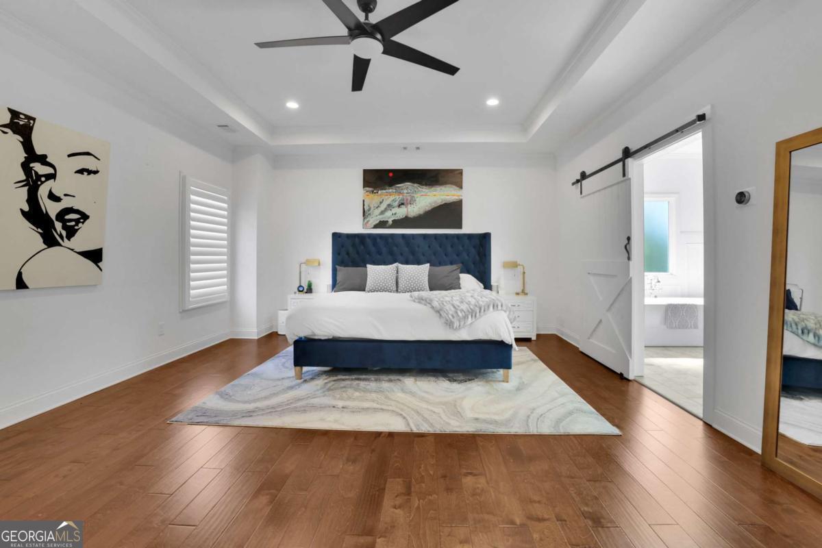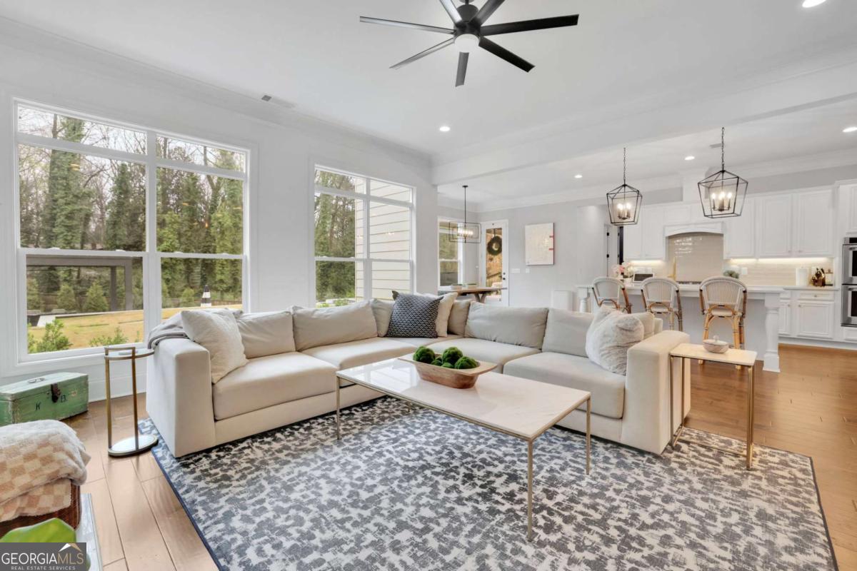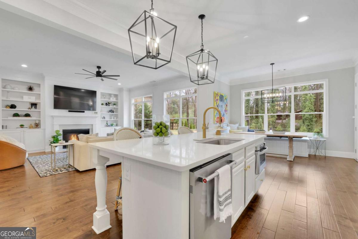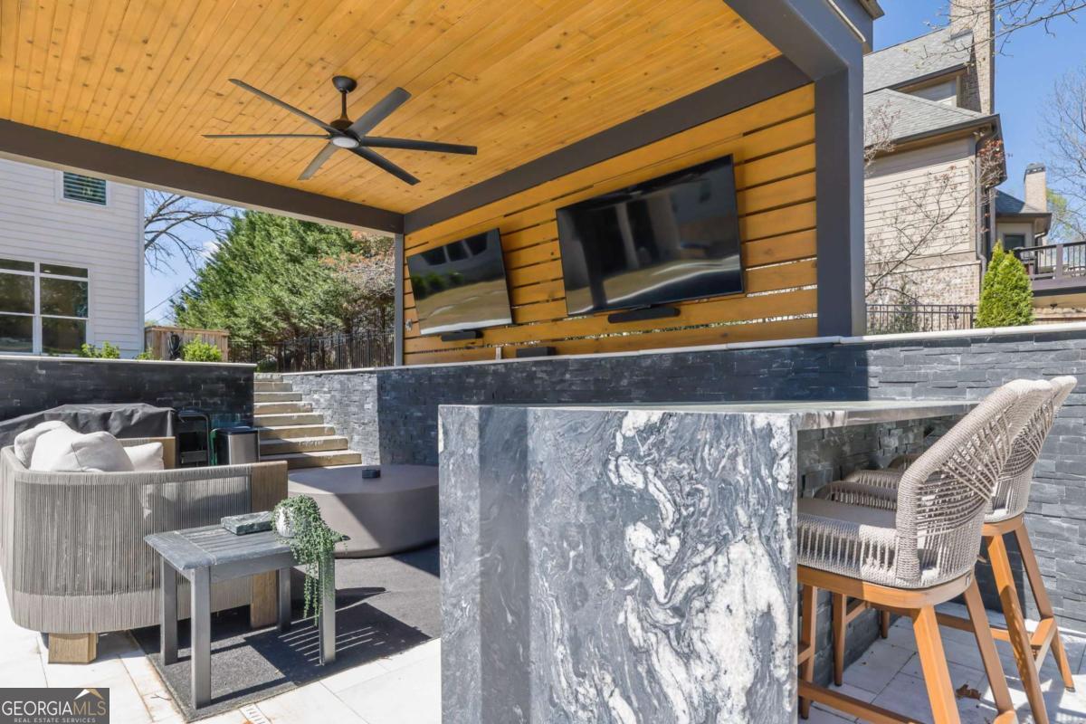 Nestled in the heart of Sandy Springs and zoned for the highly sought after Heards Ferry Elementary School, this exceptional residence offers the perfect blend of luxury, functionality, and outdoor living. Situated on over half an acre, this beautifully designed 6 bedroom, 4 bathroom home with a dedicated private office spans, 3927 square feet and features thoughtfully curated upgrades throughout. Step inside to discover gorgeous wood floors throughout the home, creating a warm and seamless flow across the living spaces. The open and inviting floor plan is designed for both everyday living and entertaining. At the heart of the home, the chef's kitchen features stainless steel appliances, quartz countertops, and a custom pantry with abundant storage, providing both beauty and functionality. A butler's pantry connects the kitchen to a separate formal dining room, creating an elegant transition for gatherings. The main level also includes a private office, ideal for working from home along with an additional bedroom on the main level that offers the perfect space for guests. Upstairs, you will find the spacious primary suite, featuring a spa inspired bathroom and his and hers custom closets designed with both style and practicality in mind. The second floor also offers four additional generously sized bedrooms, and two additional bathrooms, one being a jack and jill bathroom. Throughout the home, custom closets, a thoughtfully designed laundry room, and a variety of smart home features add convenience and modern functionality. The property also includes a 240 volt electric vehicle charging station, making it easy to support today's electric vehicle lifestyle. Designed for both relaxation and entertaining, the backyard is truly extraordinary. The fully fenced yard offers a private outdoor oasis complete with a resort style pool and hot tub, a cozy outdoor fireplace, a charming cabana, and a private putting green. The outdoor living space also features an entertaining island with a built in refrigerator for easy hosting. Conveniently located just minutes from City Springs, this home provides easy access to premier shopping, restaurants, entertainment, and major highway access, making commuting and enjoying everything Sandy Springs has to offer effortless. This is a rare opportunity to own a beautifully appointed home with exceptional outdoor amenities in one of Sandy Springs' most coveted locations