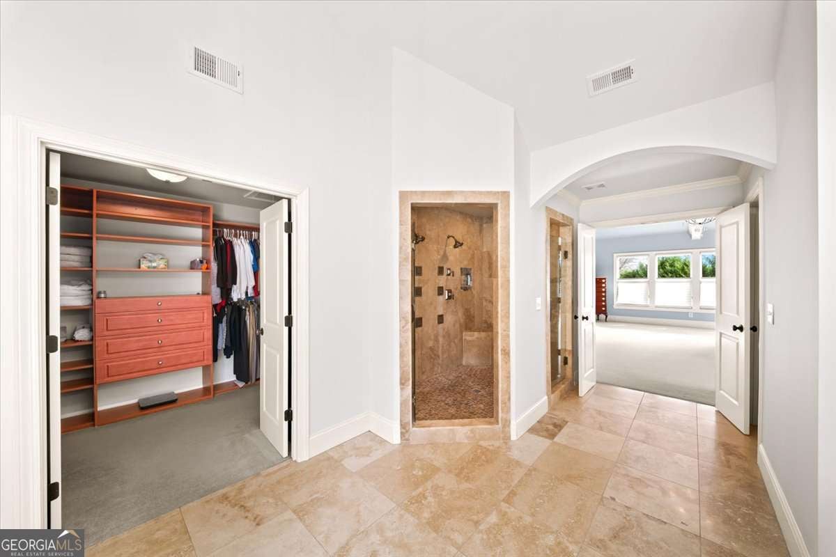 - Interior FeaturesBeamed Ceilings, Bookcases, Double Vanity, Pulldown Attic Stairs, Walk-In Closet(s)