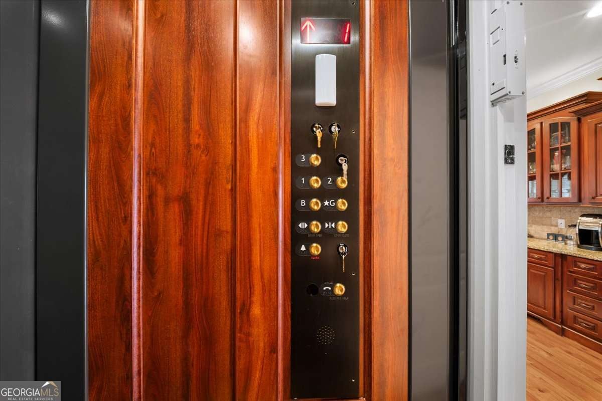 Exceptional opportunity in the coveted Vinings-Smyrna corridor, within an ultra-private community where homes rarely come to market. Live among Atlanta's elite in a residence defined by exquisite craftsmanship, architectural character, and thoughtful design that elevates everyday living. As you enter, you are welcomed by a grand dining room-easily seating 12+-framed by a warm fireplace and paired with an elegant piano/living room on the opposite side, creating a sophisticated and seamless entertaining experience. The gourmet open-concept kitchen is truly the heart of the home, showcasing an oversized island, custom luxury cabinetry, high-end appliances, and a beautifully appointed butler's pantry. The kitchen flows effortlessly into the expansive family room, where a striking fireplace and brand-new Paco doors open to a private Trex-decked balcony, bringing the outdoors in. A main-level bedroom has been transformed into a showpiece executive office, complete with a custom-crafted cherry wood archway with hidden storage, rich built-ins, and timeless coffered ceilings-an inspiring space for work or creativity. One of the rarest features of this home is the commercial-grade, five-stop elevator, providing effortless access from the garage to the kitchen, from the upper bedrooms to the terrace-level suites, and even to the attic. Convenience, luxury, and practicality meet at every level. Upstairs, the owner's suite is a true sanctuary, spanning nearly 800 square feet and offering breathtaking views of the Downtown Atlanta skyline. The fireside sitting area, enhanced by soaring beamed ceilings, leads into the serene sleeping quarters and a spa-inspired bathroom with an oversized walk-in shower, soaking tub, and dual vanities. The custom-designed closet is both stunning and highly functional. Step onto the private reinforced balcony, supported by 36-foot beams, and enjoy unparalleled sunsets and unobstructed panoramic views-your personal retreat in the sky. Three additional secondary bedrooms each feature en-suite bathrooms and generous walk-in closets, offering comfort, privacy, and style. The fully finished terrace level is an entertainer's dream or an ideal space for multigenerational living. It boasts a complete second kitchen, built-in refrigerator, coffered ceilings, a remodeled modern Jack-and-Jill bathroom, and a massive entertainment room perfect for billiards, gaming, or a home theater. Whether hosting guests or providing teens their own luxury space, this level adapts to any lifestyle. Nestled in a quiet cul-de-sac community, this four-sides-brick home with amazing curb appeal offers the convenience of walkability to restaurants and shopping. Enjoy quick access to I-285 and I-75, a short drive to The Battery and Truist Park, and easy proximity to Buckhead's premier shopping and dining. Hartsfield-Jackson International Airport and Atlanta's top attractions are all within comfortable reach. Opportunities like this rarely arise-nobody wants to leave this extraordinary community. Schedule your private tour today and start the new year in the luxury home you've been dreaming of.