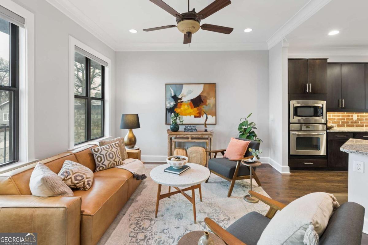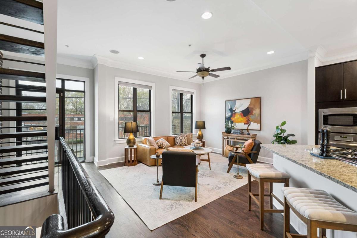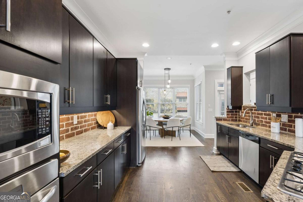 Welcome to this premier gated townhome in the heart of West Midtown, just moments from the BeltLine, offering the ultimate live/work/dine/play lifestyle. Perfectly positioned within walking distance to top restaurants, breweries, shops, and Bellwood Quarry, this exceptional residence combines modern design with unbeatable convenience. The standout feature is the expansive private rooftop terrace, complete with an outdoor kitchenette and wet bar, where you can take in breathtaking views of the Atlanta skyline and enjoy unforgettable sunsets. Inside, the home is equally impressive, featuring a striking open-concept layout with exposed brick accents, floor-to-ceiling windows, and an abundance of natural light throughout. Spanning three finished levels, this 2-bedroom, 2.5-bath home offers a gourmet kitchen with stainless steel appliances, granite countertops, and a dedicated dining area, all flowing seamlessly into the main living space. Hardwood floors, spacious bedrooms, and custom-built walk-in closets add both style and functionality. Outdoor living is elevated with three additional walk-out balconies, providing multiple private retreats. Recent updates include fresh interior paint, refinished main-level floors, new exterior trim, Nest thermostats, high-efficiency lighting, and window tinting for enhanced energy efficiency and privacy. Complete with a private garage and ample guest and street parking, this home truly delivers intown living at its finest. Don't miss this incredible opportunity to own a standout property in one of Atlanta's most vibrant communities.