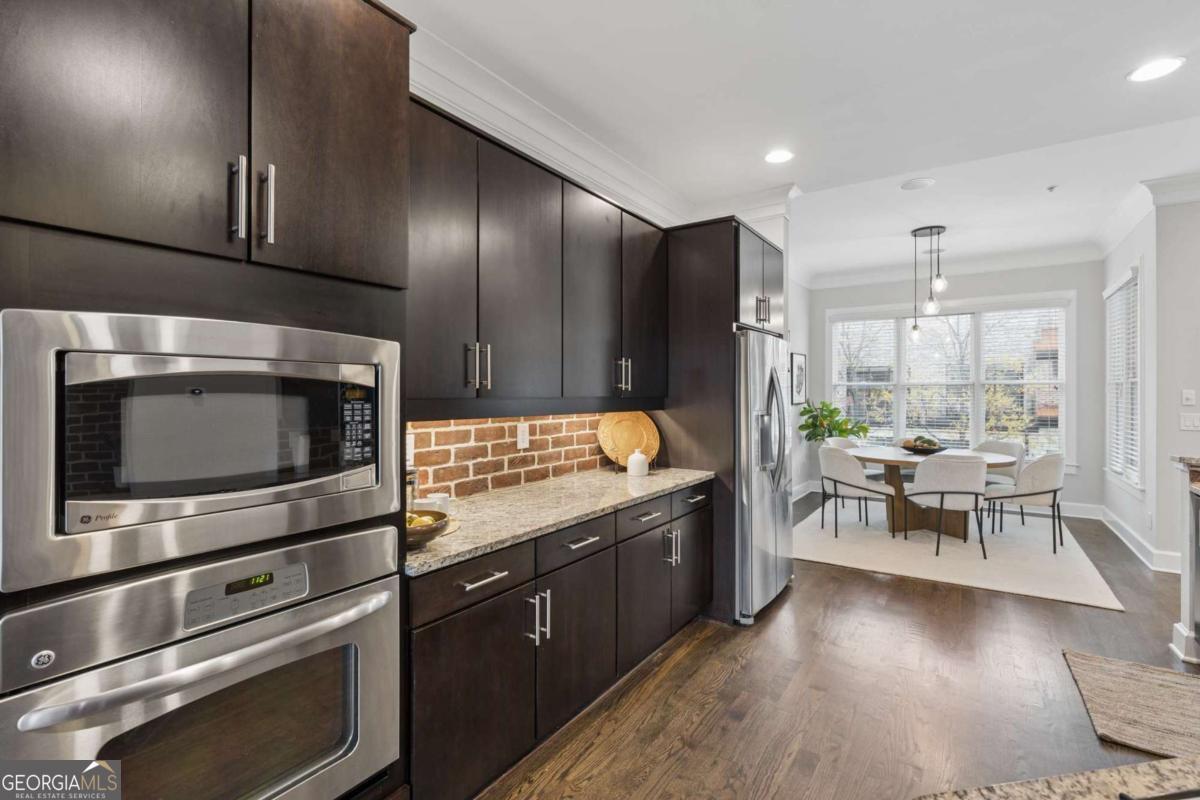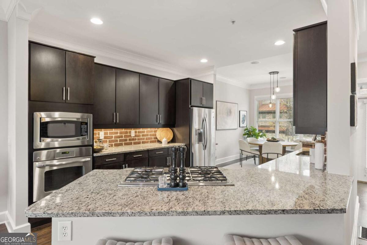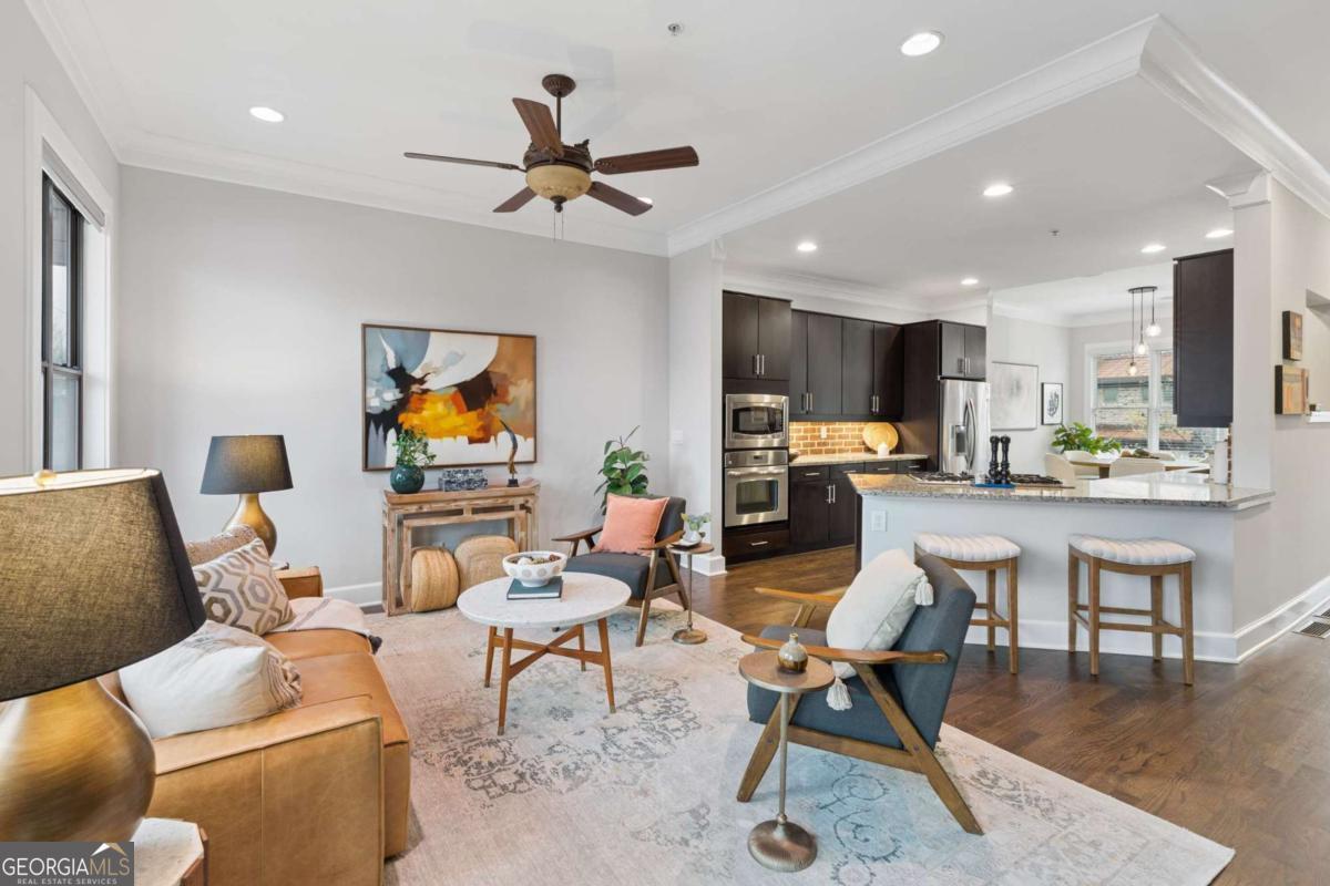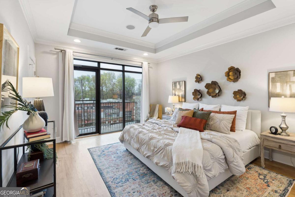 Welcome to this premier gated townhome in the heart of West Midtown, just moments from the BeltLine, offering the ultimate live/work/dine/play lifestyle. Perfectly positioned within walking distance to top restaurants, breweries, shops, and Bellwood Quarry, this exceptional residence combines modern design with unbeatable convenience. The standout feature is the expansive private rooftop terrace, complete with an outdoor kitchenette and wet bar, where you can take in breathtaking views of the Atlanta skyline and enjoy unforgettable sunsets. Inside, the home is equally impressive, featuring a striking open-concept layout with exposed brick accents, floor-to-ceiling windows, and an abundance of natural light throughout. Spanning three finished levels, this 2-bedroom, 2.5-bath home offers a gourmet kitchen with stainless steel appliances, granite countertops, and a dedicated dining area, all flowing seamlessly into the main living space. Hardwood floors, spacious bedrooms, and custom-built walk-in closets add both style and functionality. Outdoor living is elevated with three additional walk-out balconies, providing multiple private retreats. Recent updates include fresh interior paint, refinished main-level floors, new exterior trim, Nest thermostats, high-efficiency lighting, and window tinting for enhanced energy efficiency and privacy. Complete with a private garage and ample guest and street parking, this home truly delivers intown living at its finest. Don't miss this incredible opportunity to own a standout property in one of Atlanta's most vibrant communities.